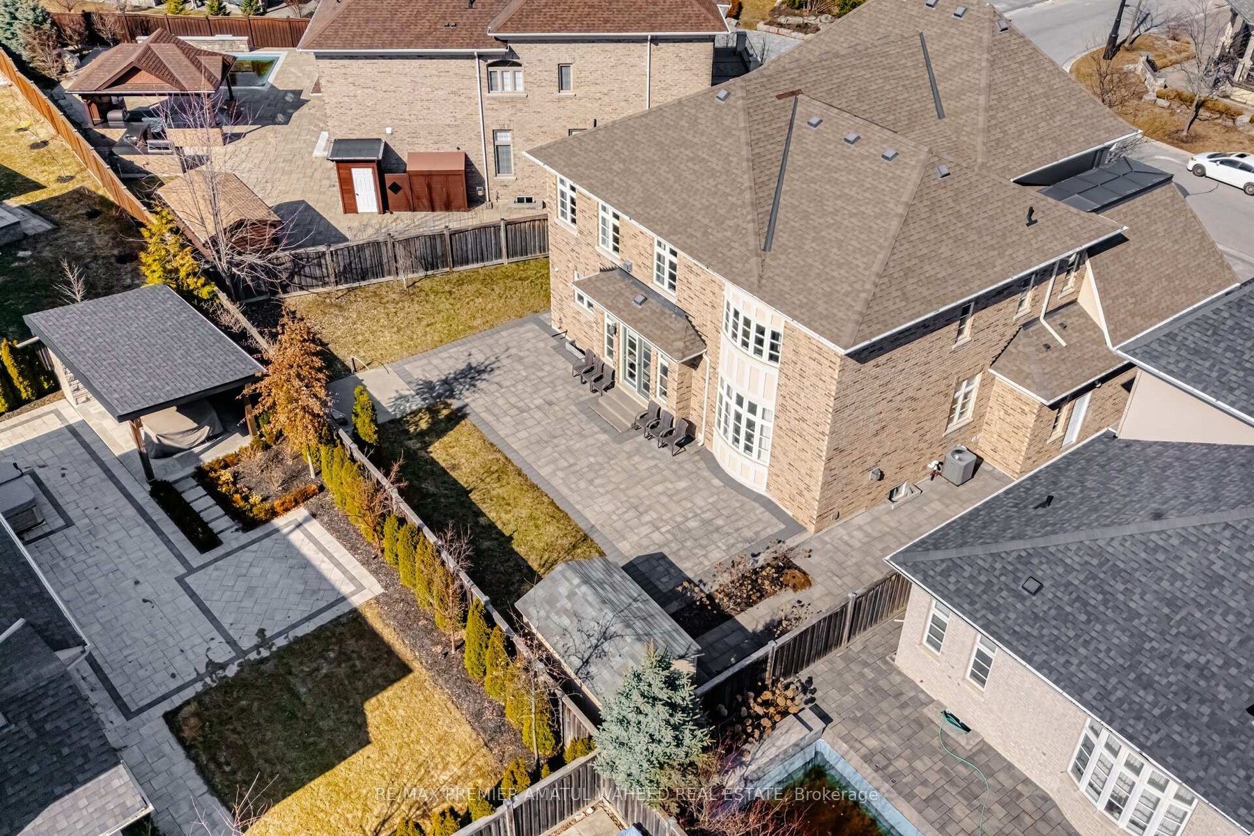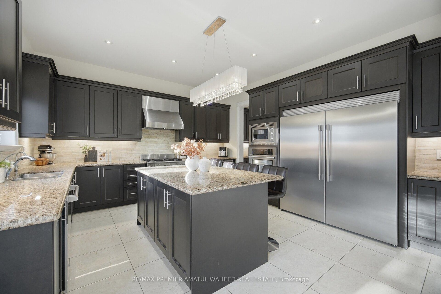 Luxury living meets timeless design 6,100+ sq. ft. custom residence (approx. 4,330 sq. ft. above grade), ideally located on a quiet crescent in the prestigious Cold Creek Estates, one of Vellore Village's most coveted luxury locations. Set on a premium pie-shaped lot, the home is surrounded by high-end interlocking, enhancing both curb appeal and outdoor living, while the extended driveway accommodates up to 8 vehicles. The main level impresses with soaring 10-foot ceilings, 8-foot doors, rich hardwood flooring, custom drapery, and sparkling crystal chandeliers. A formal office offers a sophisticated workspace, upgraded powder room, Chef-inspired kitchen, featuring high-end custom built-in Electrolux appliances, granite countertops, a butler's servery, a large centre island, and 24" x 24" porcelain flooring. The breakfast area opens seamlessly to the private backyard, while the dramatic 21-foot family room with a gas fireplace and custom built-in media cabinetry creates an impressive space for both relaxing and entertaining. The upper level offers 9-foot ceilings and four generously sized bedrooms, each paired with an Ensuite & Semi Ensuite. The primary suite serves as a luxurious retreat with a cozy gas fireplace and a spa-inspired ensuite featuring a large glass shower and elegant designer upgrades. The prof finished the basement with a separate side entrance, 9-foot ceilings, featuring two fully self-contained 1-bedroom apartments, modern white kitchens, quartz countertops, stainless steel appliances, upgraded washrooms, along with a separate additional bedroom complete with its own 4-piece ensuite. This well-designed lower level presents outstanding rental income potential of approximately $3,800 per month while also accommodating extended family living. Tesla car charger, Gas & water fittings for an outdoor kitchen. Additional upgrades include Hunter Douglas blinds and designer light fixtures. This exceptional home perfectly combines luxury & functionality