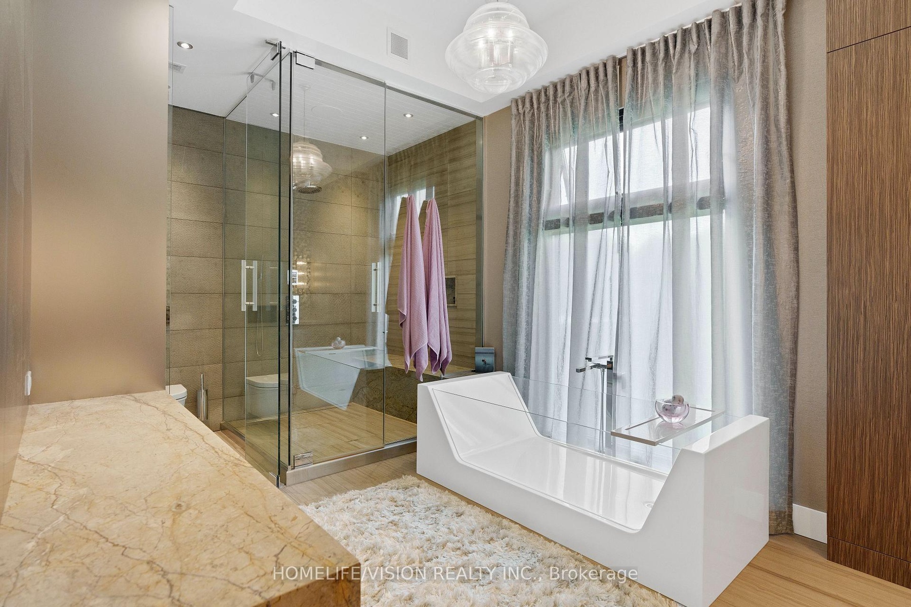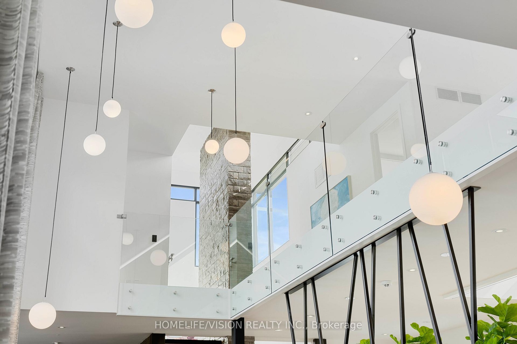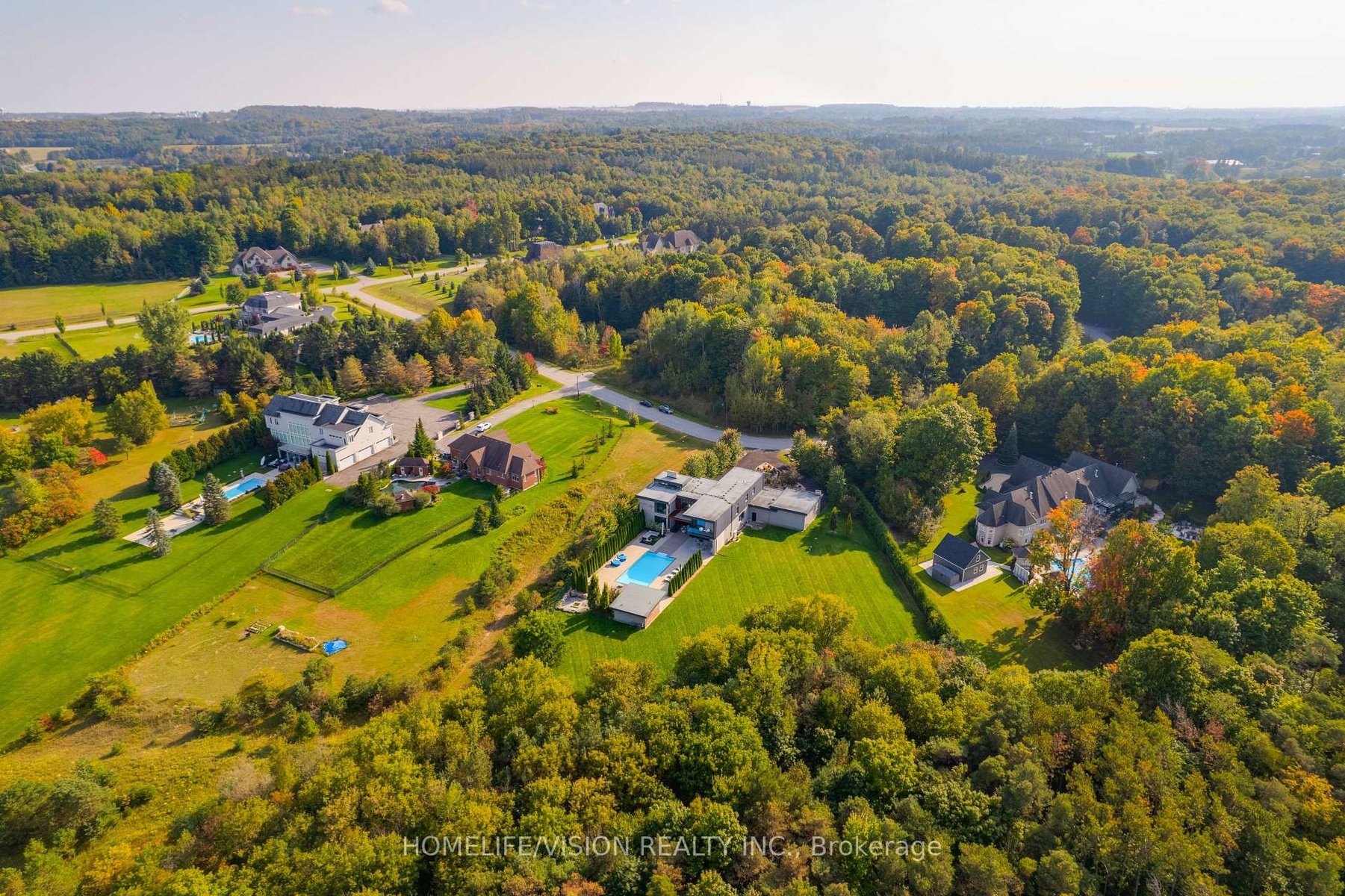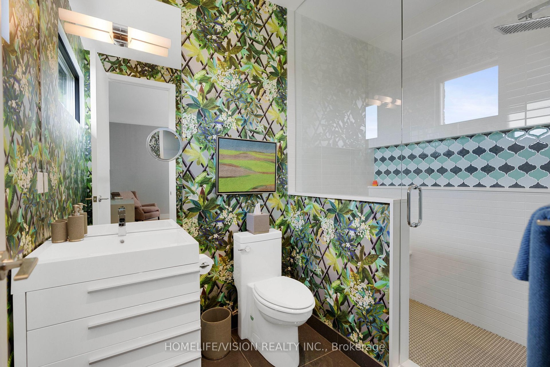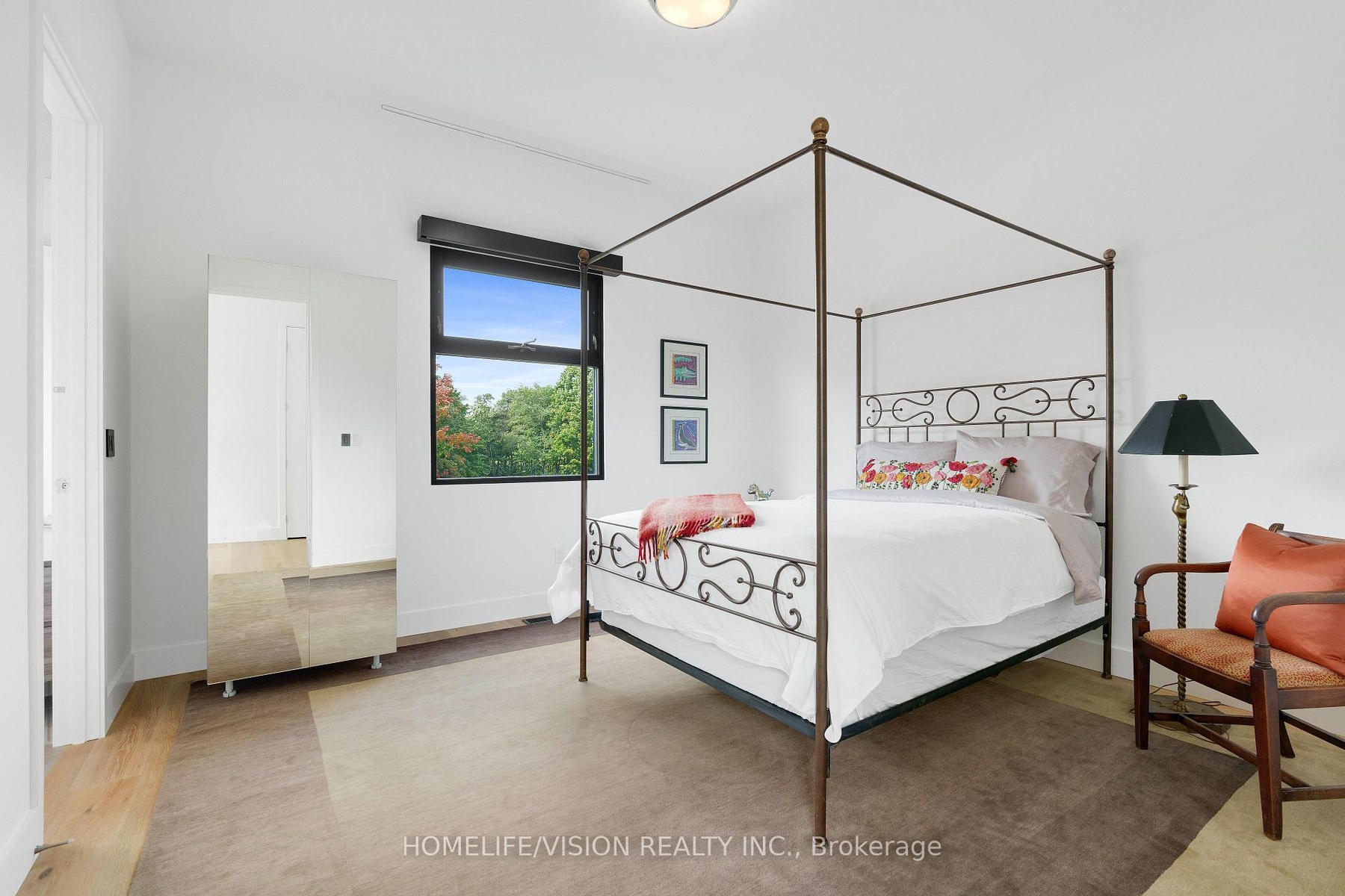 Experience luxury living at this breathtaking modern estate on 2 acres! Portions of interior masterfully designed by award winning interior designer Eric McClelland of Fleur-de-lis Interior Design Inc. The main floor boasts a contemporary kitchen with with custom cabinetry and eat in kitchen, sunken dining room with walkout to backyard, living room with floor to ceiling windows and walkout to patio, family room overlooking the garden with gas fireplace and a sun filled office with built in shelving. Master bedroom oasis with a balcony overlooking the backyard, custom built-in cabinetry and custom 6 piece ensuite with steam shower. All bedrooms have an ensuite and large windows. Meticulous maintained stone, stucco and cedar exterior with professionally landscaped gardens, outdoor saltwater pool, fire pit and cabana. Perfect for entertaining indoors and out. Spectacular basement with home theatre with full projection system, wine fridge, workout room, kitchenette and bar space. 5th bedroom in basement with custom cabinetry and ensuite as well. Elevator gives access to all floors. Dog wash station in mudroom with sink and built in cabinetry. Radiant floor heating through much of home. Automated shades in most rooms, custom lighting system with pot lights, Sonos sound system throughout! Exterior repainted and stained (2023), Outdoor decking (2023), Roof (2016), Windows (2016), A/C (2016), Furnace (2016), Sump pump (2017).