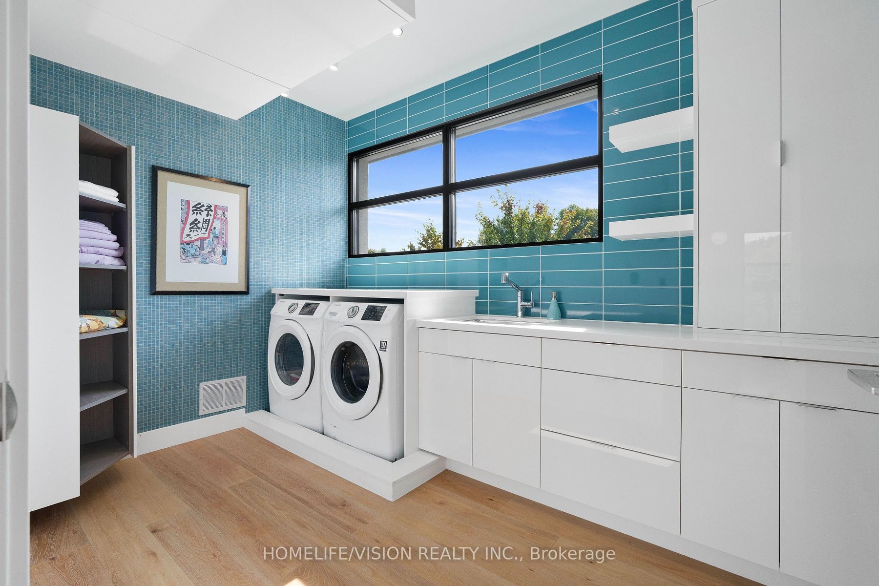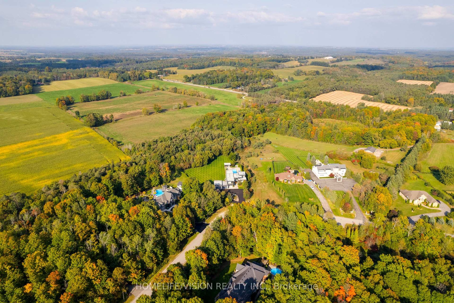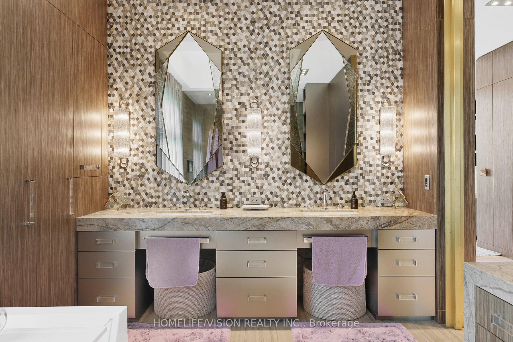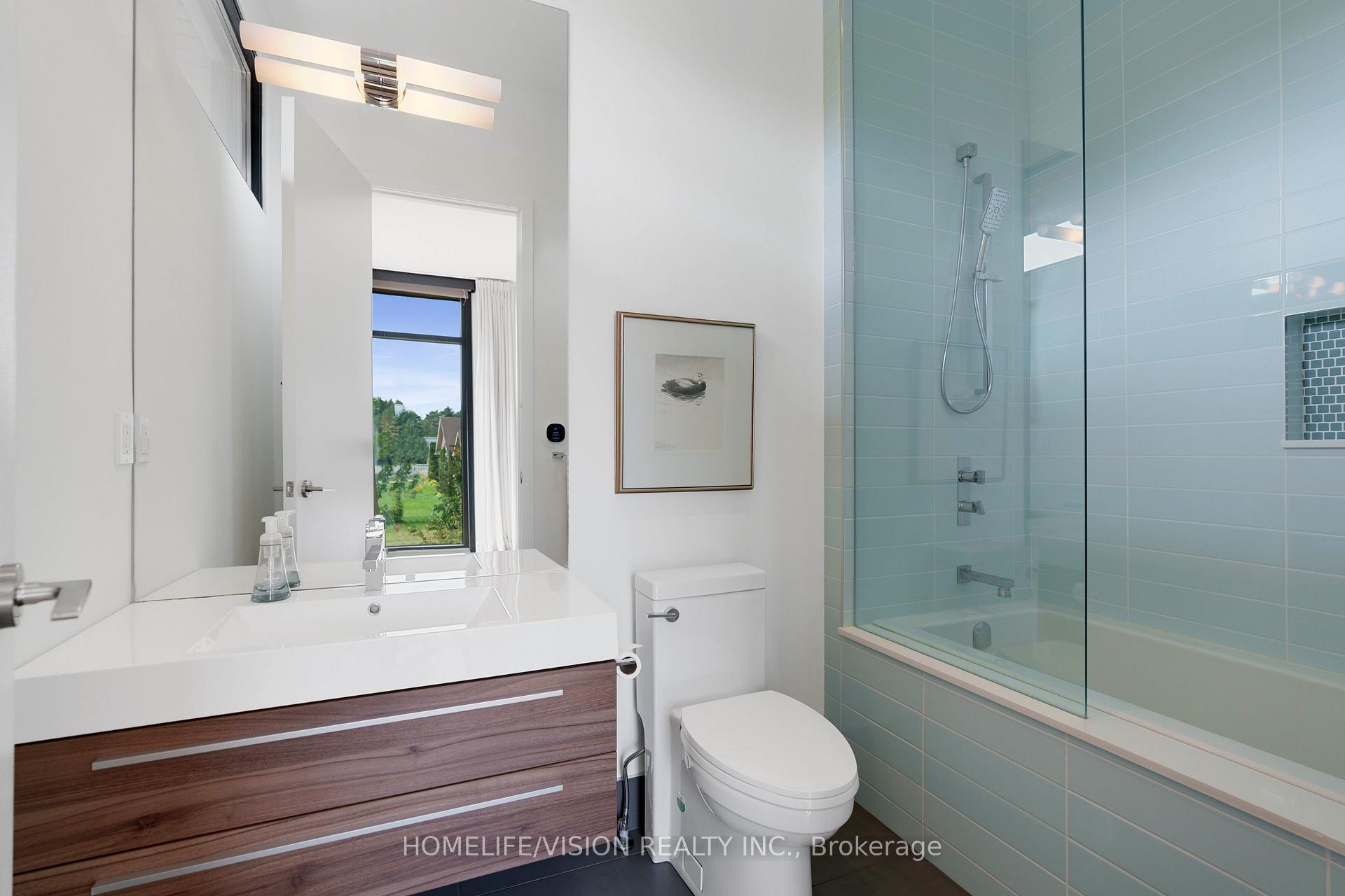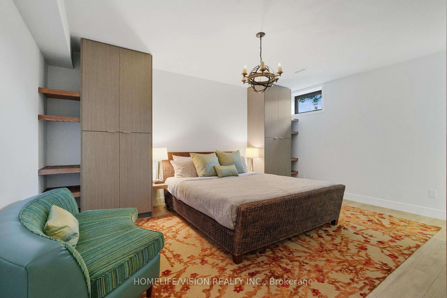 Experience luxury living at this breathtaking modern estate on 2 acres! Portions of interior masterfully designed by award winning interior designer Eric McClelland of Fleur-de-lis Interior Design Inc. The main floor boasts a contemporary kitchen with with custom cabinetry and eat in kitchen, sunken dining room with walkout to backyard, living room with floor to ceiling windows and walkout to patio, family room overlooking the garden with gas fireplace and a sun filled office with built in shelving. Master bedroom oasis with a balcony overlooking the backyard, custom built-in cabinetry and custom 6 piece ensuite with steam shower. All bedrooms have an ensuite and large windows. Meticulous maintained stone, stucco and cedar exterior with professionally landscaped gardens, outdoor saltwater pool, fire pit and cabana. Perfect for entertaining indoors and out. Spectacular basement with home theatre with full projection system, wine fridge, workout room, kitchenette and bar space. 5th bedroom in basement with custom cabinetry and ensuite as well. Elevator gives access to all floors. Dog wash station in mudroom with sink and built in cabinetry. Radiant floor heating through much of home. Automated shades in most rooms, custom lighting system with pot lights, Sonos sound system throughout! Exterior repainted and stained (2023), Outdoor decking (2023), Roof (2016), Windows (2016), A/C (2016), Furnace (2016), Sump pump (2017).