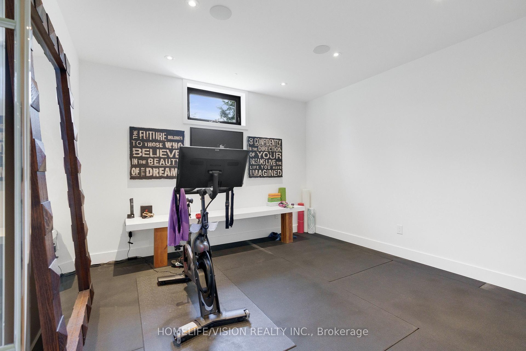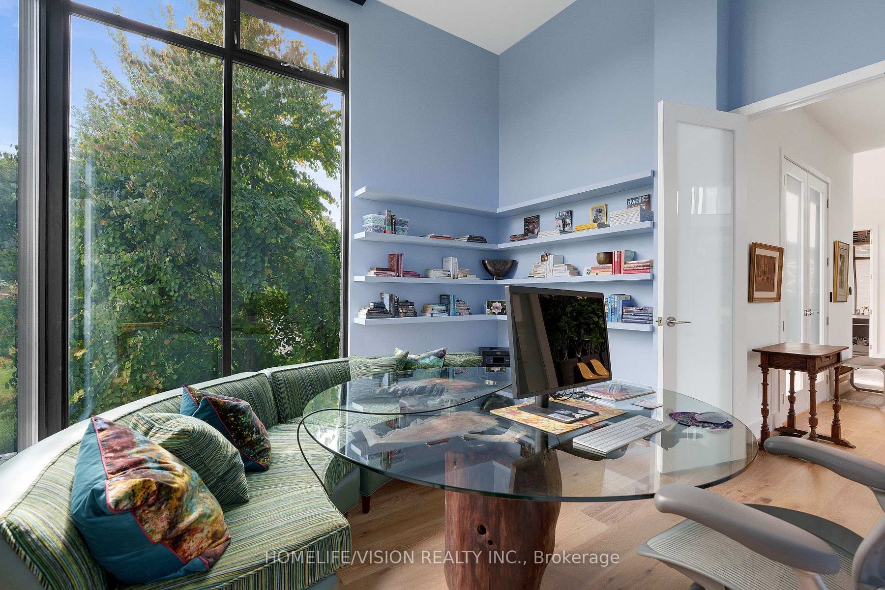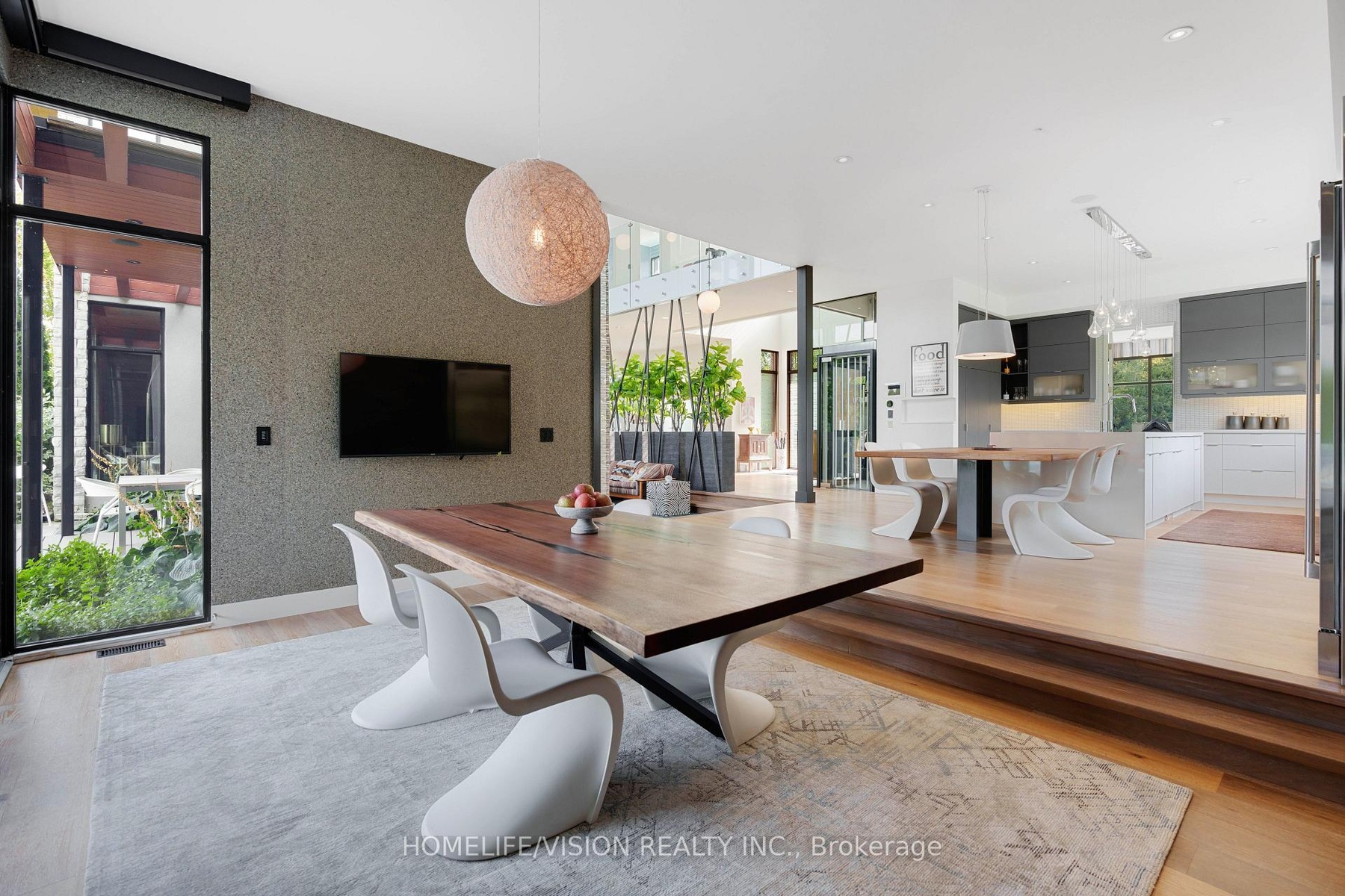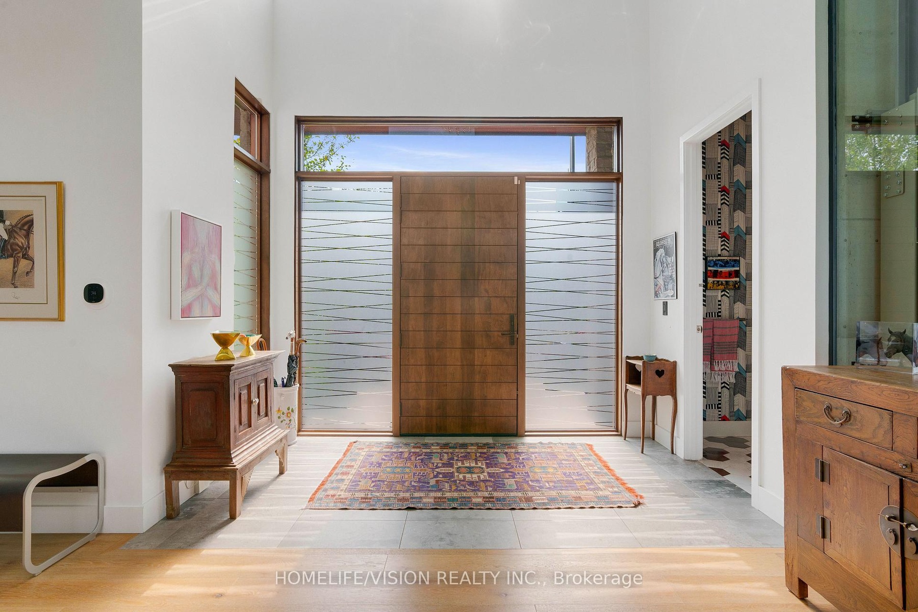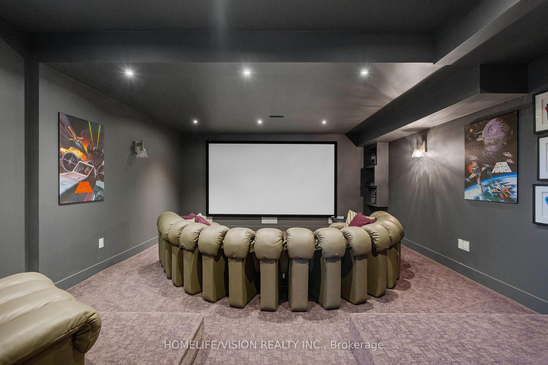 Experience luxury living at this breathtaking modern estate on 2 acres! Portions of interior masterfully designed by award winning interior designer Eric McClelland of Fleur-de-lis Interior Design Inc. The main floor boasts a contemporary kitchen with with custom cabinetry and eat in kitchen, sunken dining room with walkout to backyard, living room with floor to ceiling windows and walkout to patio, family room overlooking the garden with gas fireplace and a sun filled office with built in shelving. Master bedroom oasis with a balcony overlooking the backyard, custom built-in cabinetry and custom 6 piece ensuite with steam shower. All bedrooms have an ensuite and large windows. Meticulous maintained stone, stucco and cedar exterior with professionally landscaped gardens, outdoor saltwater pool, fire pit and cabana. Perfect for entertaining indoors and out. Spectacular basement with home theatre with full projection system, wine fridge, workout room, kitchenette and bar space. 5th bedroom in basement with custom cabinetry and ensuite as well. Elevator gives access to all floors. Dog wash station in mudroom with sink and built in cabinetry. Radiant floor heating through much of home. Automated shades in most rooms, custom lighting system with pot lights, Sonos sound system throughout! Exterior repainted and stained (2023), Outdoor decking (2023), Roof (2016), Windows (2016), A/C (2016), Furnace (2016), Sump pump (2017).