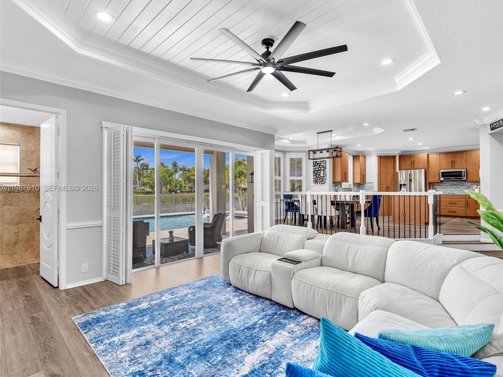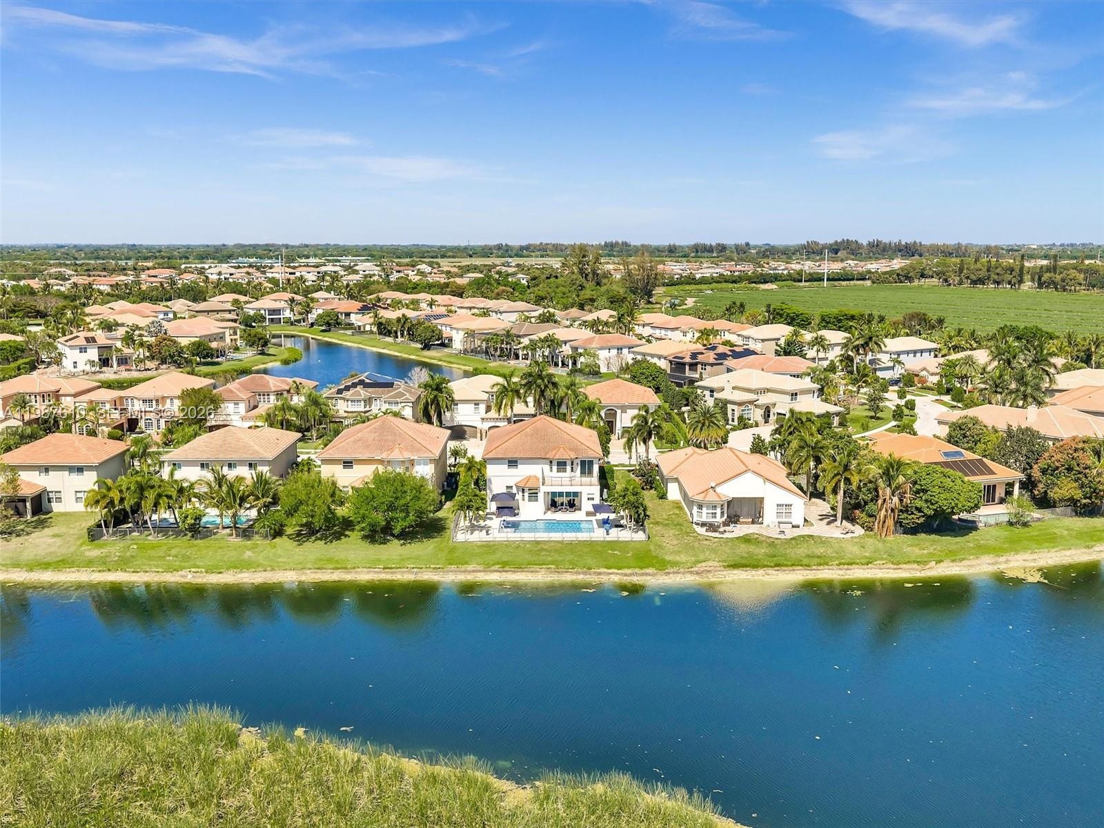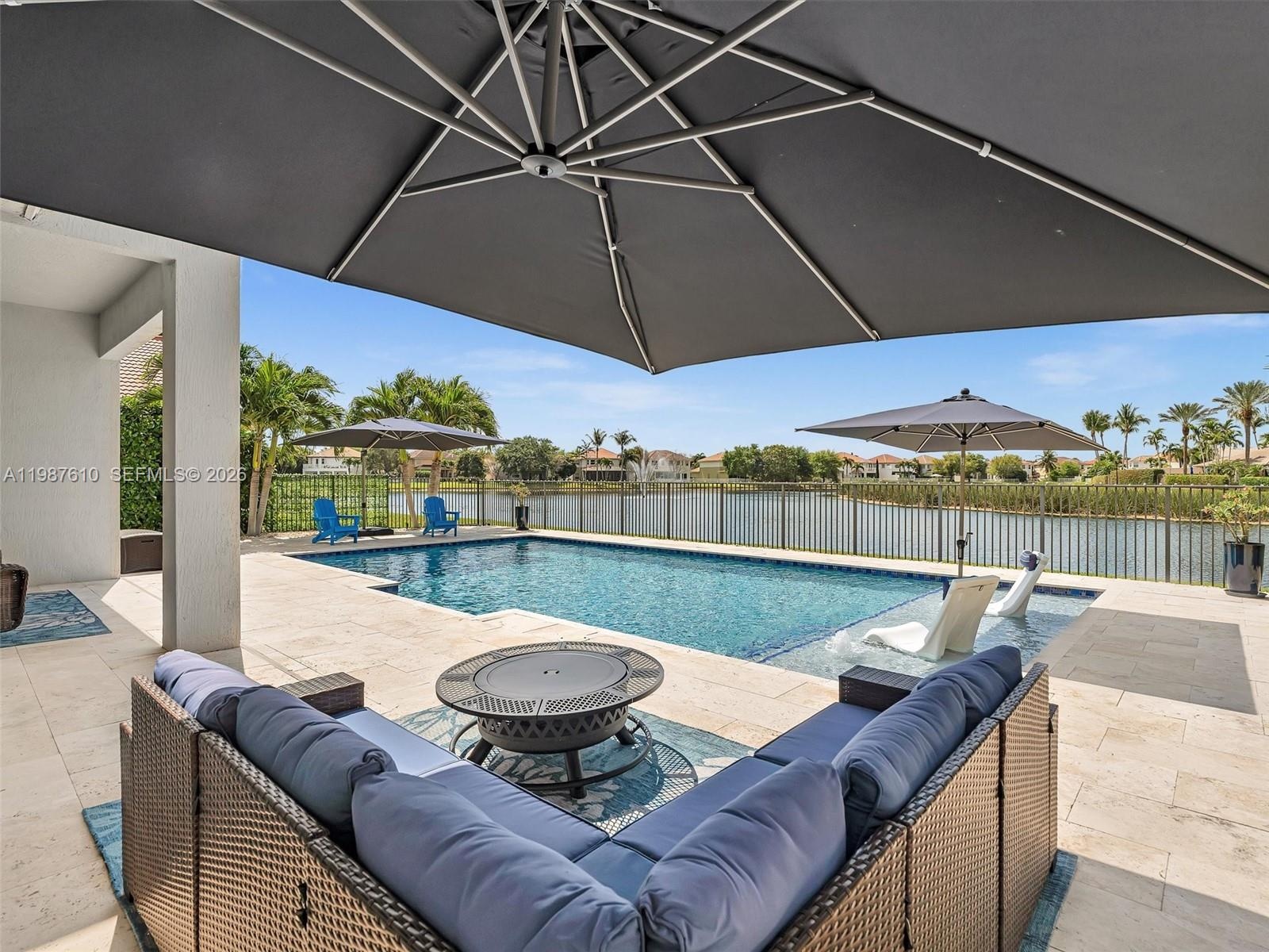 Create memories in this tastefully updated home, where design and attention to detail blend timeless style with a contemporary feel. Be captivated by this 5-bedroom residence, spacious loft and 4 bathrooms which is set on a serene WATERFRONT lot with breathtaking LAKE VIEWS. Step inside and feel the impact of the soaring 20-foot ceilings that welcome you in. The chef’s center-island kitchen, featuring quartz countertops, glass tile backsplash and stainless steel appliances, overlooks the large dining area, perfect for everyday living and entertaining. Just a few steps down, the family room offers a coffee bar and wine cooler and creates the ideal indoor space to gather with family and friends. An elegant iron-spindle staircase leads to the generous primary suite, complete w/sitting area, balcony w/wide and long water views, spa-inspired bath w/separate vanities, Kohler jetted tub, glass-enclosed shower plus his and hers 2 oversized walk-in closets. 3 bedrooms upstairs, each with built-in closets, along with a spacious 25x11.5 sq ft loft that offers a flexible use of living space. Outside relax around the stunning 36x18 POOL (2023) featuring a 6 ft sun shelf and long bench with blower jets, great for enjoying Florida’s sunshine. Additional highlights include IMPACT DOORS and WINDOWS, 3 car garage w/electric car charger, Plantation shutters, custom closets and much more! Gated community w/resort-style clubhouse, making this an amazing place to live the Florida lifestyle.