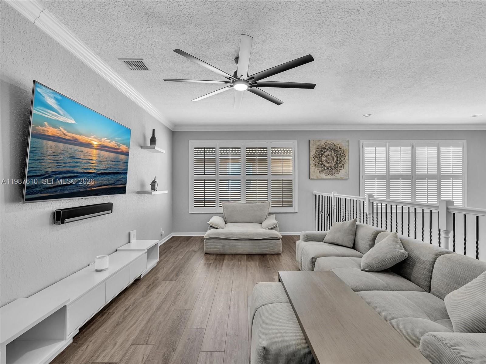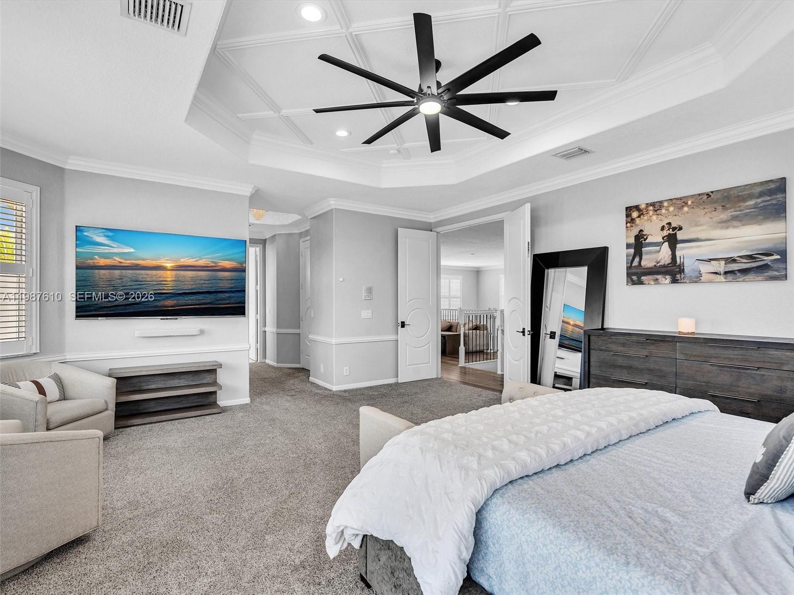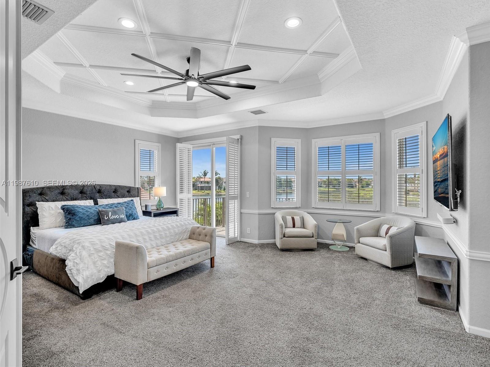 Create memories in this tastefully updated home, where design and attention to detail blend timeless style with a contemporary feel. Be captivated by this 5-bedroom residence, spacious loft and 4 bathrooms which is set on a serene WATERFRONT lot with breathtaking LAKE VIEWS. Step inside and feel the impact of the soaring 20-foot ceilings that welcome you in. The chef’s center-island kitchen, featuring quartz countertops, glass tile backsplash and stainless steel appliances, overlooks the large dining area, perfect for everyday living and entertaining. Just a few steps down, the family room offers a coffee bar and wine cooler and creates the ideal indoor space to gather with family and friends. An elegant iron-spindle staircase leads to the generous primary suite, complete w/sitting area, balcony w/wide and long water views, spa-inspired bath w/separate vanities, Kohler jetted tub, glass-enclosed shower plus his and hers 2 oversized walk-in closets. 3 bedrooms upstairs, each with built-in closets, along with a spacious 25x11.5 sq ft loft that offers a flexible use of living space. Outside relax around the stunning 36x18 POOL (2023) featuring a 6 ft sun shelf and long bench with blower jets, great for enjoying Florida’s sunshine. Additional highlights include IMPACT DOORS and WINDOWS, 3 car garage w/electric car charger, Plantation shutters, custom closets and much more! Gated community w/resort-style clubhouse, making this an amazing place to live the Florida lifestyle.