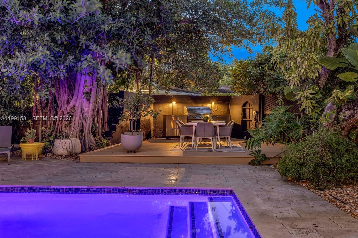 Designed for effortless South Florida living, the outdoor space functions as a true extension of the home, complete with a covered terrace, outdoor kitchen, cabana bath, and a private pool setting that feels like a retreat. Located in a low-traffic pocket with gated privacy and a garage, this property offers a rare combination of accessibility, seclusion, and lifestyle in Miami Shores.