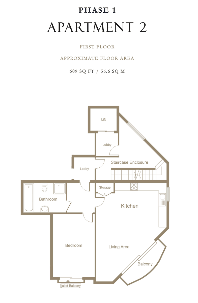 Sophisticated Living Space This one-bedroom apartment is designed for a contemporary lifestyle, featuring a spacious living area that opens onto a private balcony, plus a secondary Juliet balcony for maximum natural light. The interiors boast high ceilings and underfloor heating throughout.