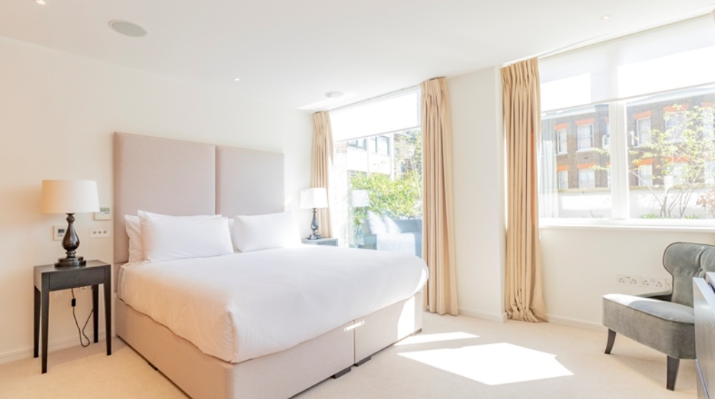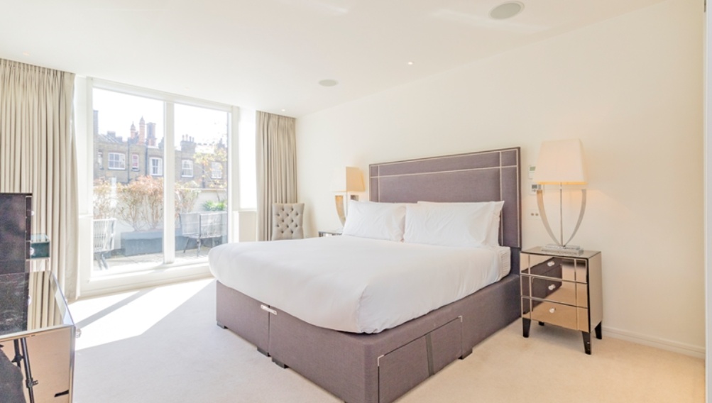 Both double bedrooms are well-proportioned and benefit from luxurious en-suite bathrooms. The principal bedroom further enjoys access to a large private terrace, providing an additional outdoor retreat. A patio garden accessed from the reception room enhances the indoor-outdoor living experience.