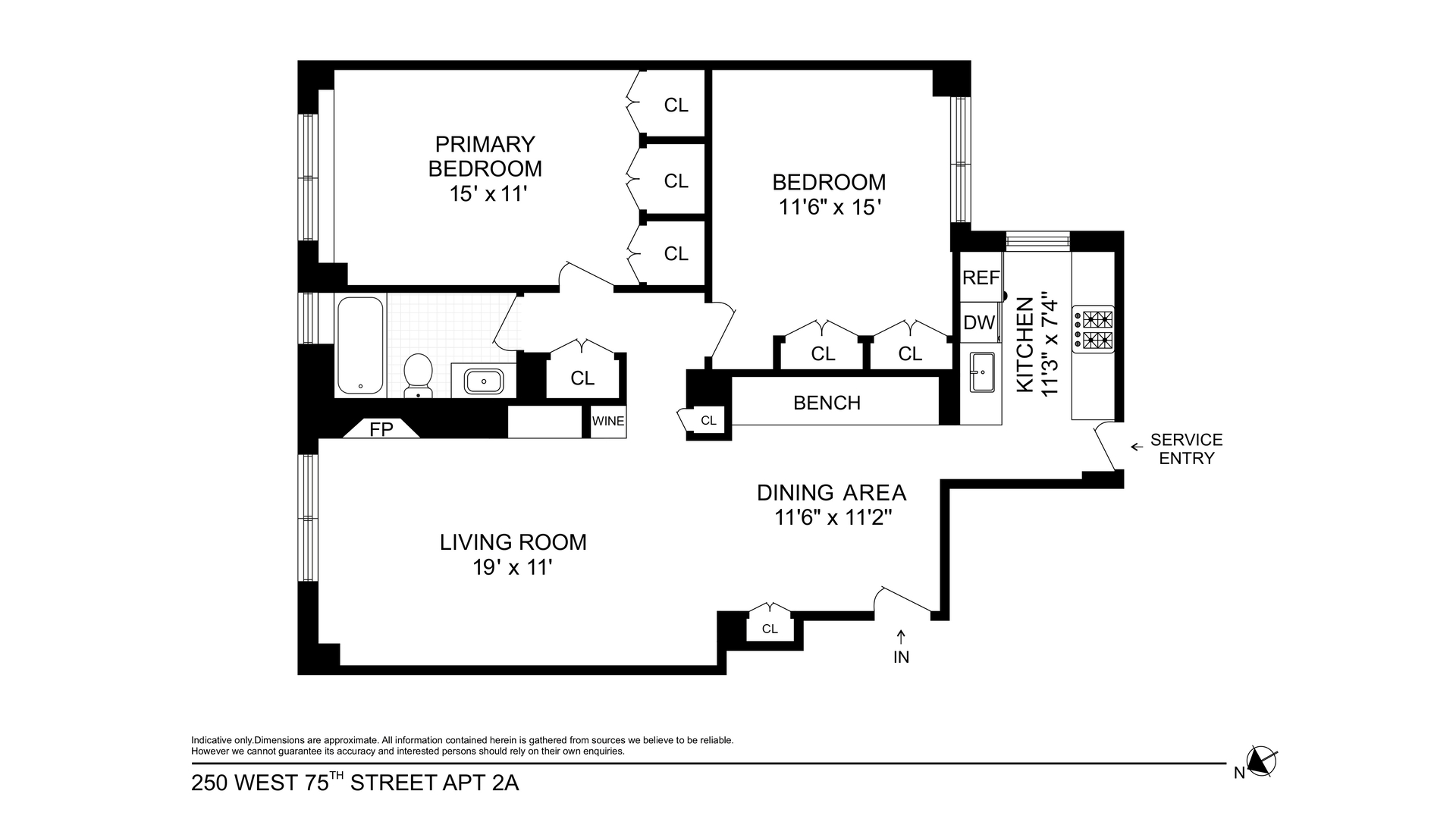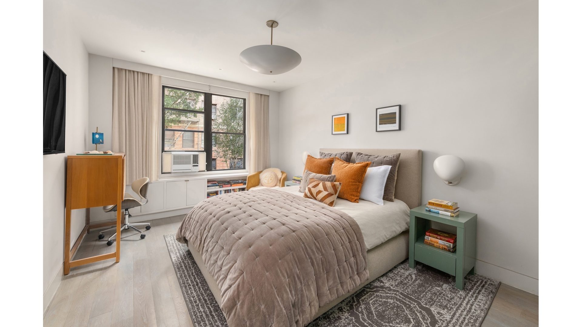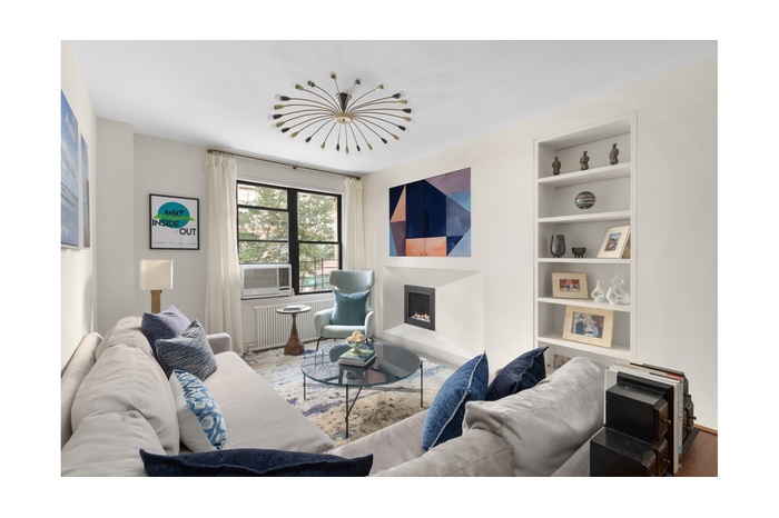 Located on a quiet tree-lined UWS block, this architect designed & custom crafted two bedroom / one bathroom home resides at 250 West 75th Street, an intimate prewar cooperative bld (36 units / built 1922) located in the heart of the sought after Upper West side neighborhood. With south and north exposures, this fully renovated residence offer a spacious living room with south, sunny and quiet open city views, a custom built-in wall unit with an artist designed TV enclosure, display lighting and a Hearth Cabinet ventless fireplace, an expansive separate dining area with a wine fridge, recessed lighting, and banquet seating w/storage (can seat up to 8 people), and a custom windowed kitchen with Viking and Liebher stainless & built-in appliances, marble counters and backsplash, recessed lighting & antiqued brushed brass fixtures. The private bedroom wing features two large bedroom: a primary bedroom large enough for a separate office area, recessed lighting, custom built-ins & a wall of custom built extra deep closets, a secondary bedroom w/custom built-ins, recessed lighting, and 2 double custom closets, and an adjacent windowed hall bathroom with a Restoration Hardware vanity, soaking tub w/glass enclosure, Toto & Kohler fixtures & floor-to-ceiling porcelain oversized tiles. Wide plank custom stained 5"oak flooring throughout, new electric and plumbing, Italian and French Mid-Century lighting, 9' ceilings, quiet and bright all day & a LOW $2.497MT completes this hard to find ready to move in prewar beauty! BLD: Resident superintendent, laundry room, bike and storage rooms, backyard garden w/dining tables and BBQ, and pets are welcome! Best UWS location, around the corner from Citarella and Fairway, Zabars/Trader Joes/Morton Williams and Whole Foods nearby, Riverside Park 1.5 blocks away, great shopping and entertainment (Beacon Theater, Lincon Center, Lincoln Sq movie theater), and multiple transportation options!