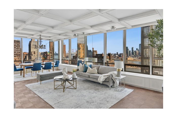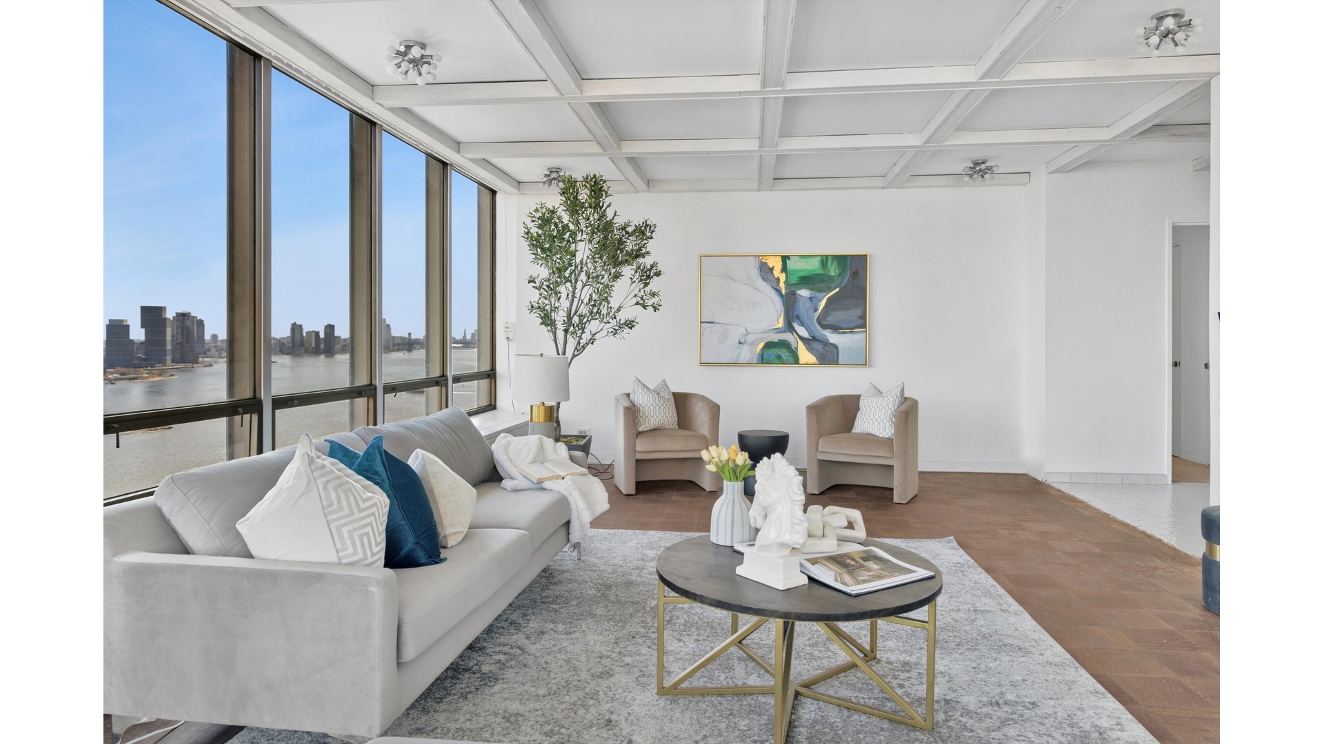 Welcome guests into your elegant private 17-foot long foyer, perfect for your art collection, leading into an expansive loft-like great room adorned with oversized windows that flood the room with natural light, and offer breathtaking open views of the East River from every angle. The dedicated dining room can easily be converted into a 3rd bedroom if desired, and currently connects to a huge retro eat-in-kitchen, also with amazing views.<p>
