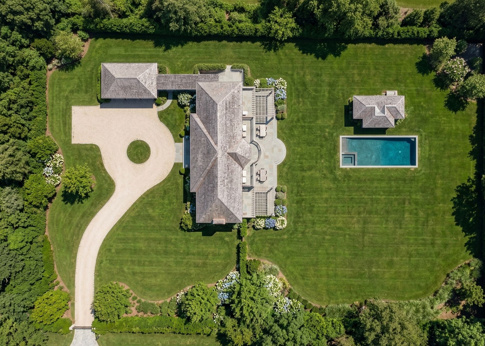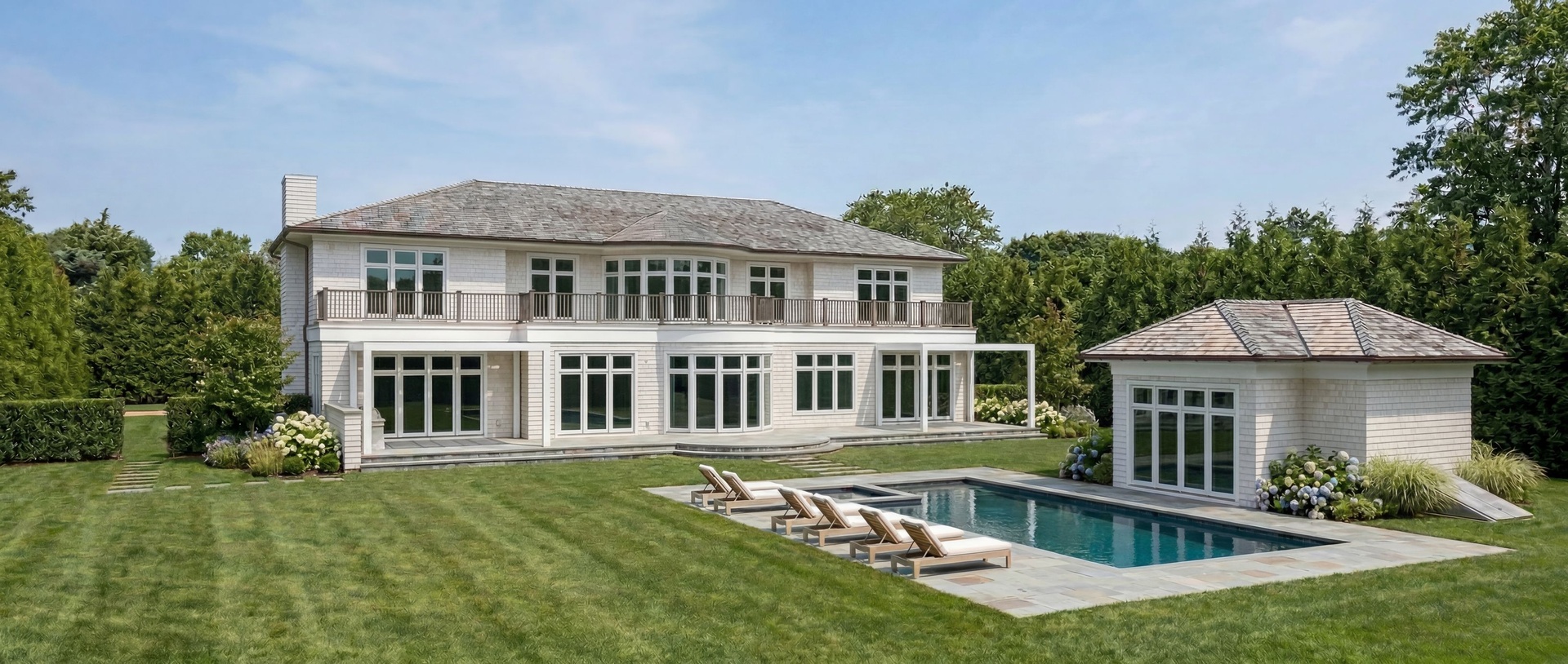 Introducing a rare opportunity to own a brand-new, custom-built estate at 15 Fieldview Lane in East Hampton, where timeless Hamptons architecture meets modern luxury across nearly one acre of beautifully planned grounds. This 8,200 square foot residence offers a seamless blend of elegance, scale, and functionality, thoughtfully crafted for both everyday living and elevated entertaining Set on a private 0.97-acre parcel, the home unfolds across three expansive levels, featuring 7 bedrooms and 7 full plus 2 half bathrooms. The main level is anchored by a gracious open-concept layout, including a junior primary suite, sun-filled living spaces, and effortless indoor-outdoor flow to the rear entertaining terrace. Upstairs, the primary suite is complemented by three additional ensuite bedrooms, along with a second-floor laundry for convenience. The fully finished lower level is designed as a lifestyle destination of its own—complete with a media room, gym, spa/sauna, and two additional guest bedrooms, as well as a second laundry area, offering ultimate flexibility for extended stays or entertaining. Outside, the grounds are curated for a quintessential Hamptons summer. A heated 20x50 gunite pool with integrated spa is the centerpiece, accompanied by a separate pool house and expansive lawn space. A detached three-car garage, connected by a breezeway, enhances both privacy and functionality while maintaining a clean architectural aesthetic. Every detail of this home has been carefully considered—from its scale and proportions to its modern coastal finishes—delivering a turnkey new construction offering in one of East Hampton’s most desirable locations.