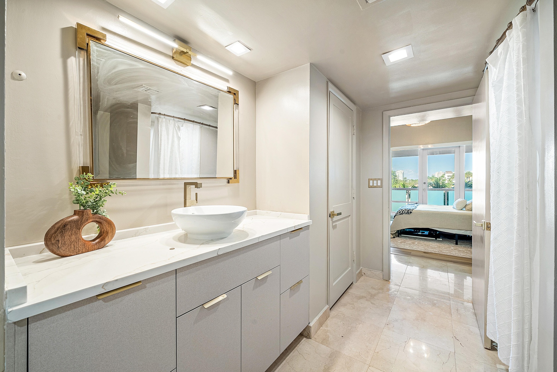 Freshly remodeled and completely move-in ready, the residence showcases impressive scale throughout, with expansive, light-filled living areas enhanced by floor-to-ceiling windows that capture natural light from every angle. A wraparound balcony encircles the entire home, providing multiple outdoor spaces ideal for relaxing, entertaining, and enjoying the coastal breeze.