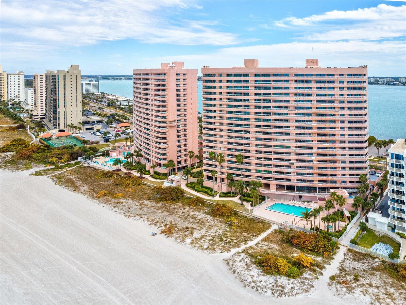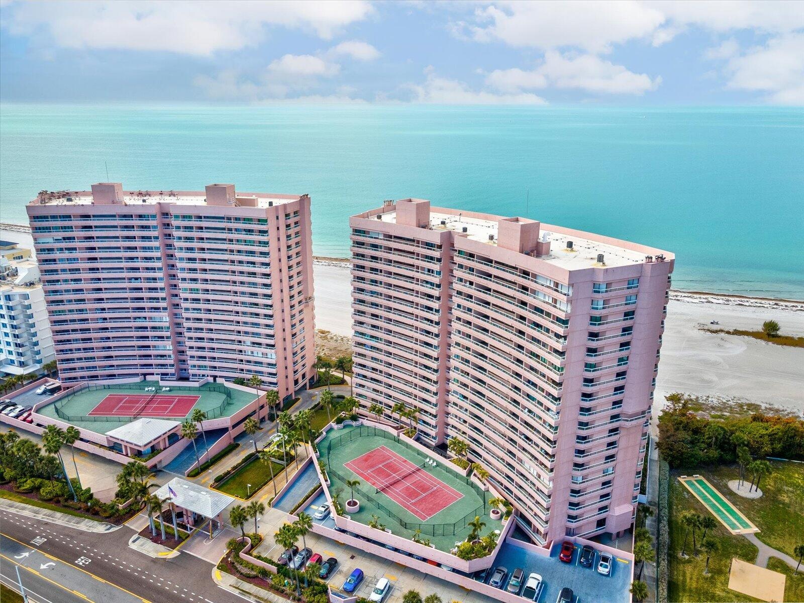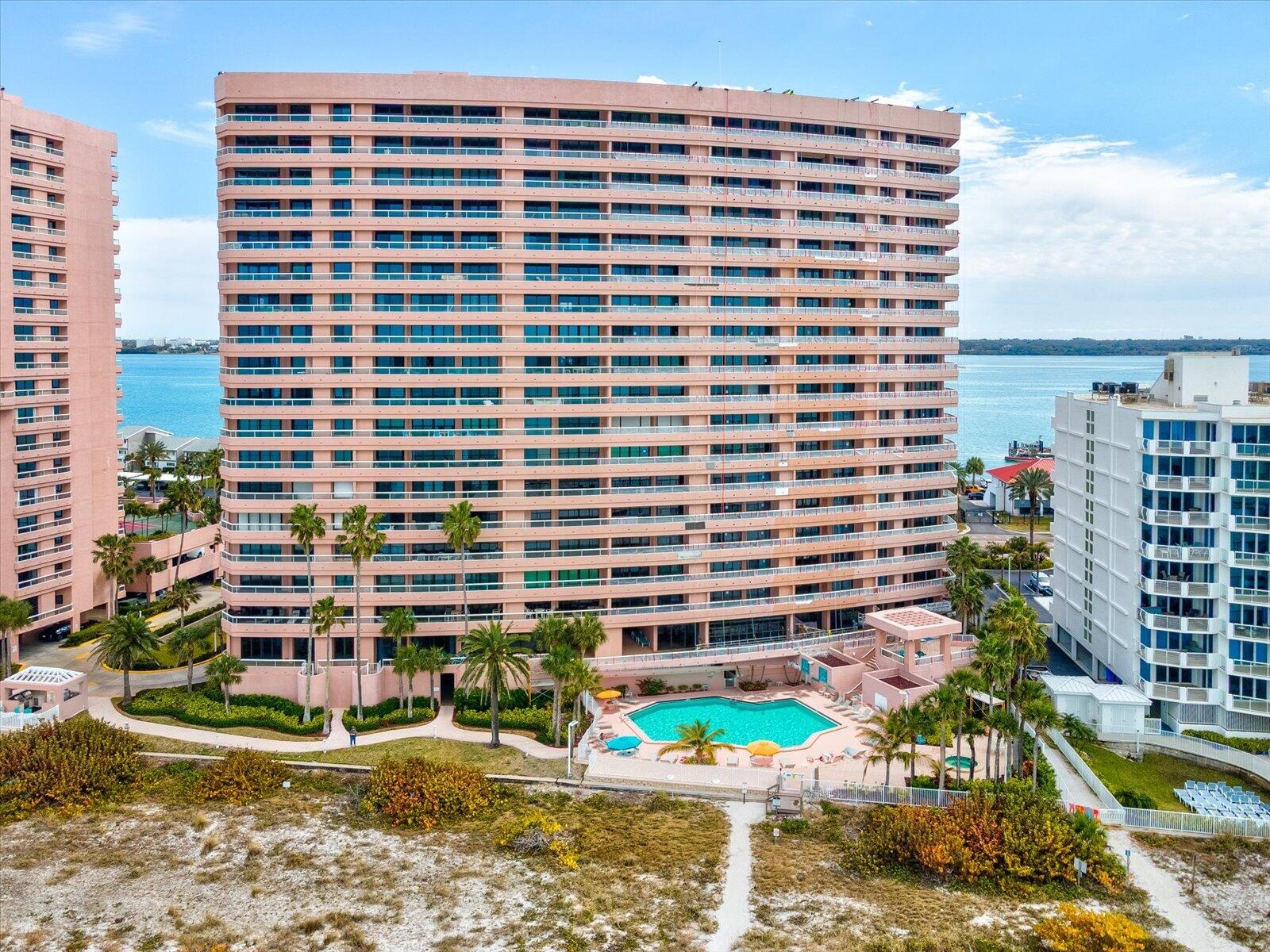 THE VIEWS SAY IT ALL! Experience 5-star coastal luxury in this rare 15th-floor, 3BR/2.5BA end-unit. Offered fully TURNKEY, this modern retreat features a massive balcony spanning the entire length of the residence. Enjoy unparalleled dual-water vistas: watch the sunrise over the Intracoastal from your guest suites and spectacular Gulf of Mexico sunsets from the kitchen, living area, and primary suite. RESORT AMENITIES: Gated 24-hour security, private beach access, oceanfront heated pool & spa, indoor beach-view hot tub, fitness center, tennis, pickleball, and billiards. INVESTOR & LIFESTYLE OPPORTUNITY: Take advantage of the rare 14-day min. rental policy—perfect for high-yield income or a flexible vacation retreat. Perfectly situated within walking distance to the Shoppes on Sand Key There is an assessment of $2,663 per month for 18 months, starting in August 2025 and ending in February 2027. Based on the details, this is negotiable. Work should be completed by early 2027.
