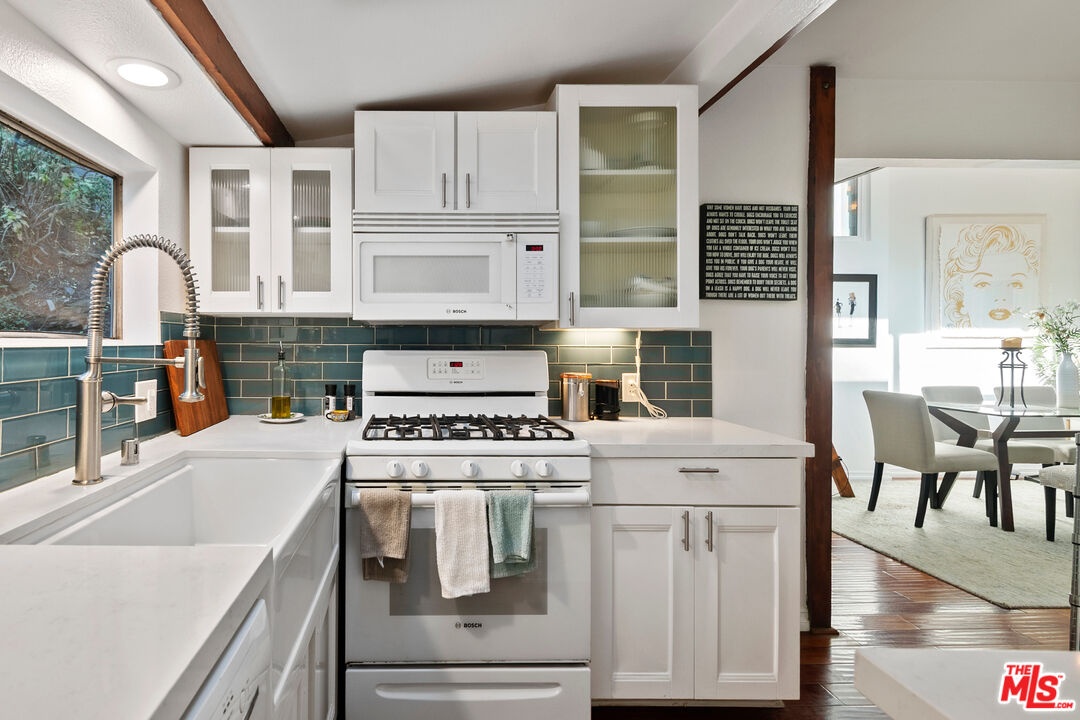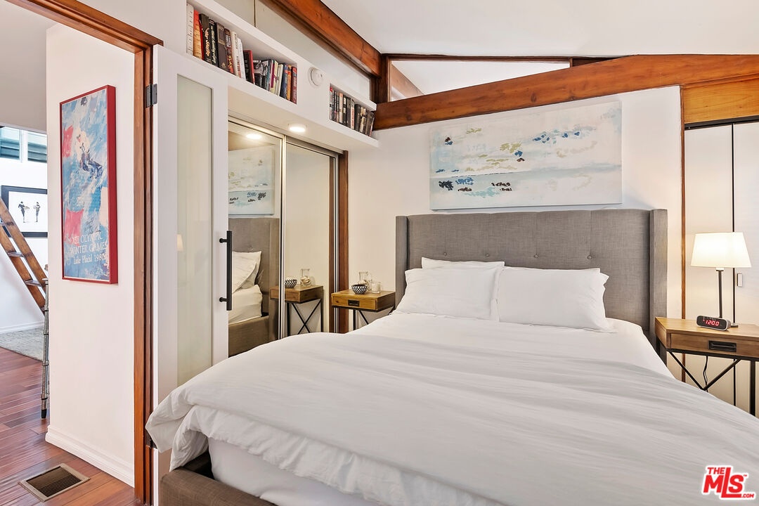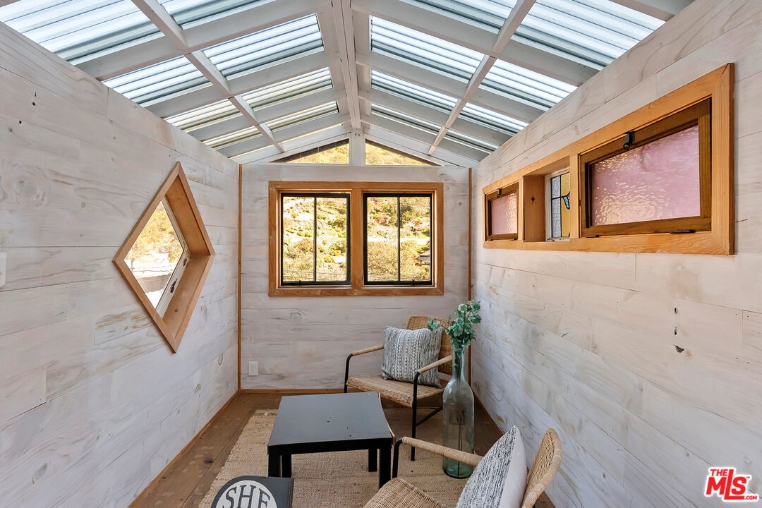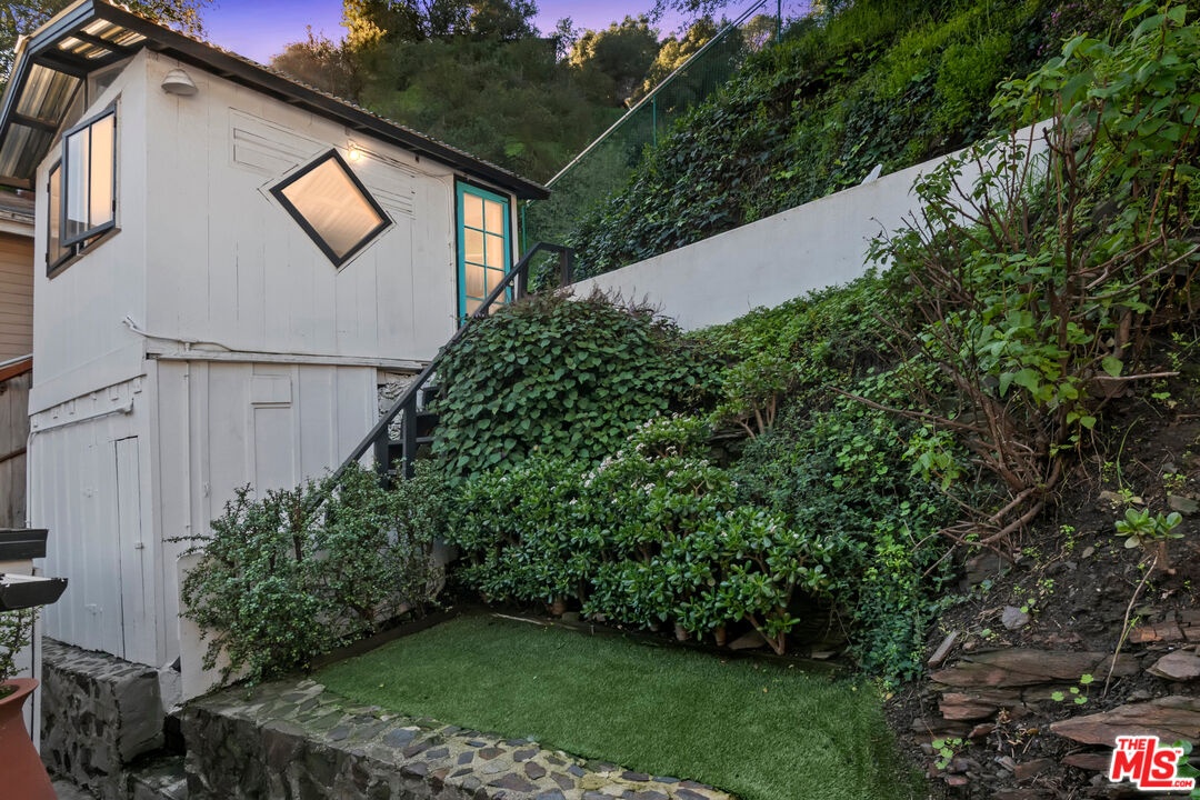 One-of-a-kind Beverly Glen boho-chic canyon retreat extensively redone by current owner and completed in 2023. Incredibly light and bright, 1 bed, 1.5 bath with an additional sleeping loft. High ceilings with skylights, new French doors open to wraparound decks for alfresco dining and cross canyon views. Brazilian Cherry natural engineered hardwood flooring throughout. Redesigned kitchen with new subway tile backsplash, skylight, storage and Bosch appliances. Redone baths with new tankless water heater, vanity, skylight, storage and mosaic tile flooring. Relocated washer-dryer from kitchen to guest bath. All new roof, new exterior siding in a distressed wood finish, new Trex stairway and decking with lights, new front gate and railings with motion sensor lighting. Separate designer "She-shed" with electrical, natural light and reclaimed stained glass windows at backyard with new retaining wall. One-car garage newly reinforced and cemented with storage plus one additional off-street space. Perfect investment property or owner's canyon mini-compound. The assessor lists this as a 2-bedroom, 1-bathroom property. This sale includes additional parcel APN# 4371-007-017 (Lots 56 and 57) to the rear for an additional 5,807 sq ft of land. New turf, security gates and fencing on hillside with steps for easy access. Minutes to UCLA, Westside, Beverly Glen Centre and the Valley. Warner Elementary.
