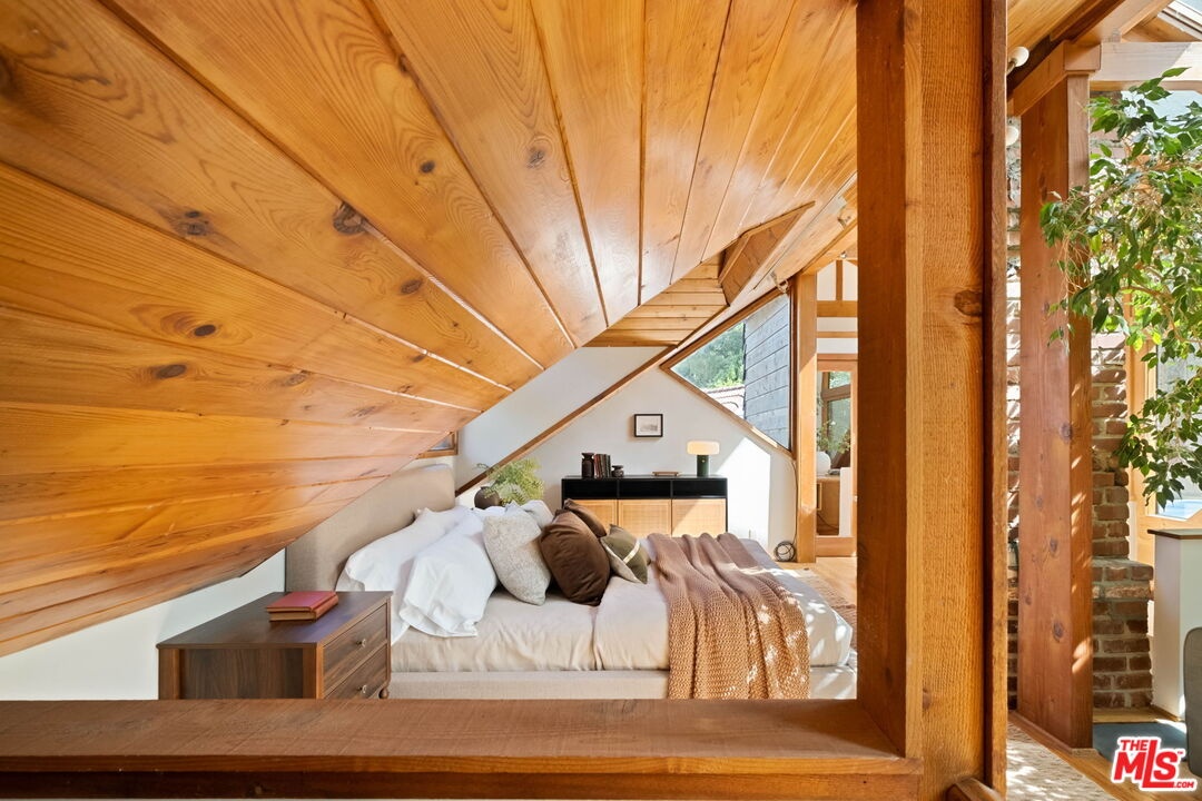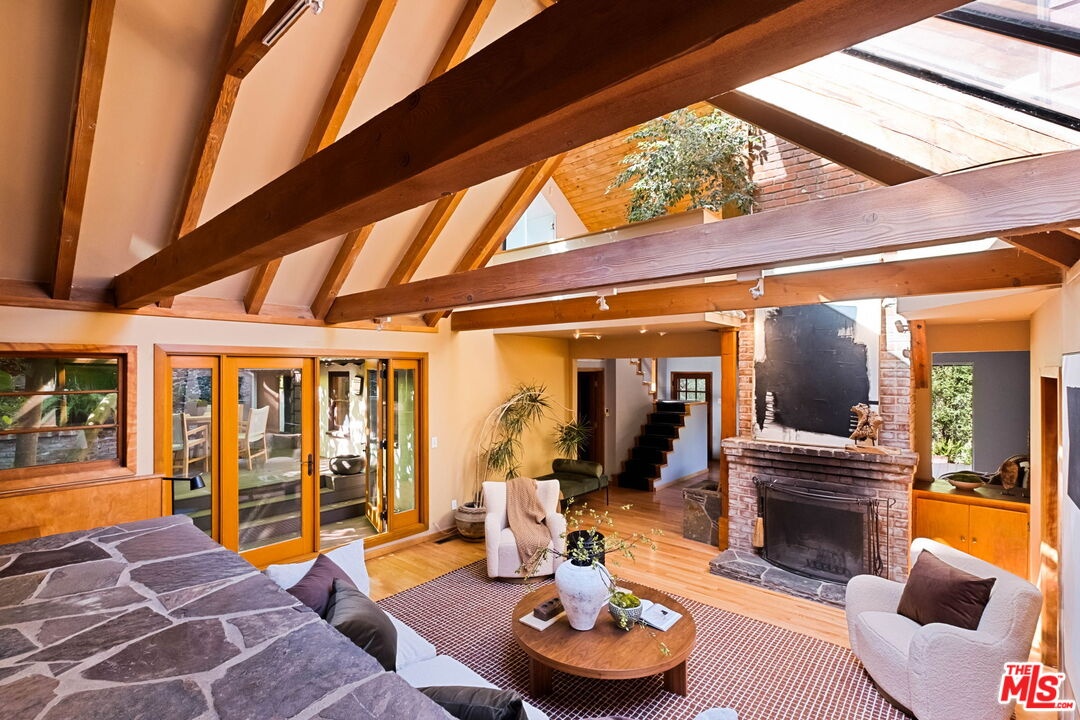Tucked away in the serene hills of Beverly Hills, 2030 Benedict Canyon is a rare cottage-style retreat that feels worlds away from the city, yet minutes from everything. This one-of-a-kind residence blends timeless charm with thoughtful design, featuring soaring vaulted ceilings, custom built-ins, and an abundance of natural light pouring in through beautifully placed skylights. Every space in the home is warm, inviting, and rich with character creating a true sanctuary atmosphere. The architectural details and craftsmanship set this property apart, offering a unique alternative to traditional modern estates in the area. Surrounded by nature, the property offers three private outdoor deck areas perfect for entertaining or quiet relaxation, all set against a backdrop of lush greenery. A tranquil stream and pond further elevate the experience, creating a peaceful, storybook setting rarely found in Los Angeles. A hidden gem in one of the city's most iconic canyons, 2030 Benedict Canyon is ideal for those seeking charm, privacy, and a lifestyle that feels like a retreat without ever leaving the city.