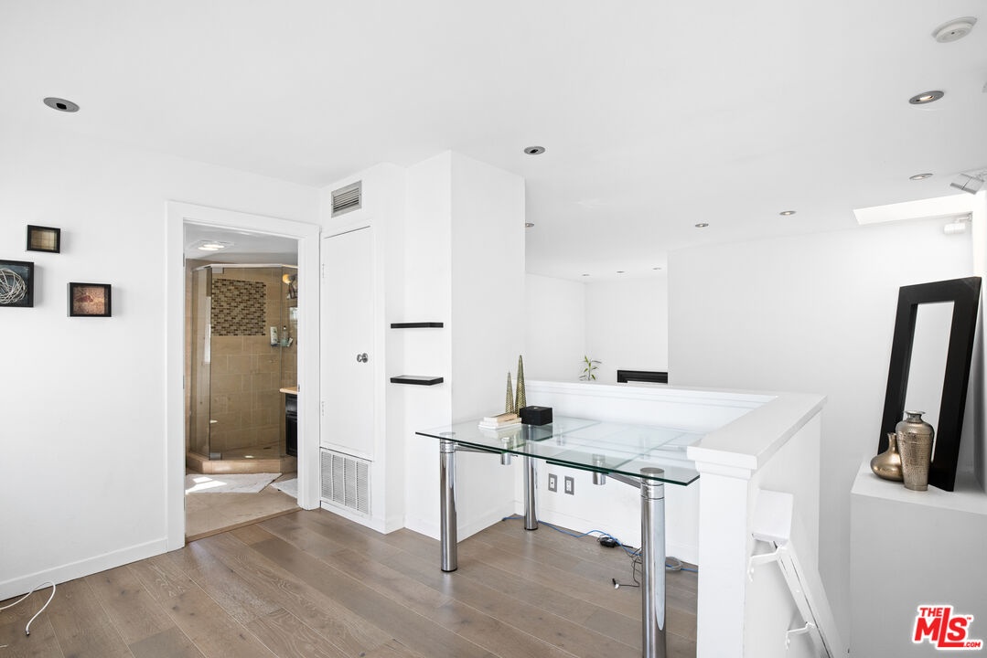 Bathed in natural light and thoughtfully designed across two levels, this stunning one-bedroom plus loft, two-bathroom penthouse offers the perfect blend of comfort and sophistication. The airy main floor welcomes you with generous windows that fill the space with warmth, highlighting an open-concept layout ideal for both relaxing and entertaining. The lofted second story provides a flexible bonus area - perfect for a home office, creative space, or guest nook - overlooking the bright living area below. The serene primary suite features ample closet space and its own private bath, creating a peaceful retreat. A rare bonus of this home is the private rooftop outdoor area, ideal for lounging, unwinding, and taking in beautiful sunset views. Situated in a charming neighborhood just moments from Cedars-Sinai and the best of Beverly Grove, this top-floor residence offers the convenience of city living in a peaceful, welcoming setting. With two stories of modern comfort in a prime location, this penthouse is a rare find that captures the very best of Los Angeles living.