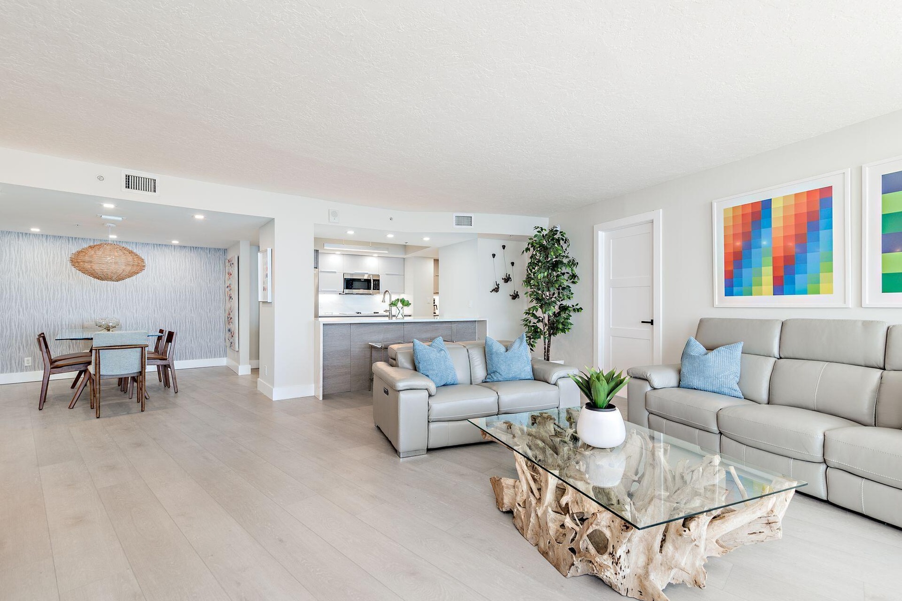 Beautifully fully renovated in 2021, this 2-bedroom 2 bath condo has glorious unobstructed views from every room. Architect/owner. Brand new fully equipped kitchen with office alcove and baths. Tasteful and neutral new furniture. Just bring your toothbrush! W/D in unit. Hi speed internet included. Full access to all Tiara amenities including pool, spa, exercise, tennis, private beach access and full restaurant with optional service to your unit. One parking spot. Prefer full seasonal rental