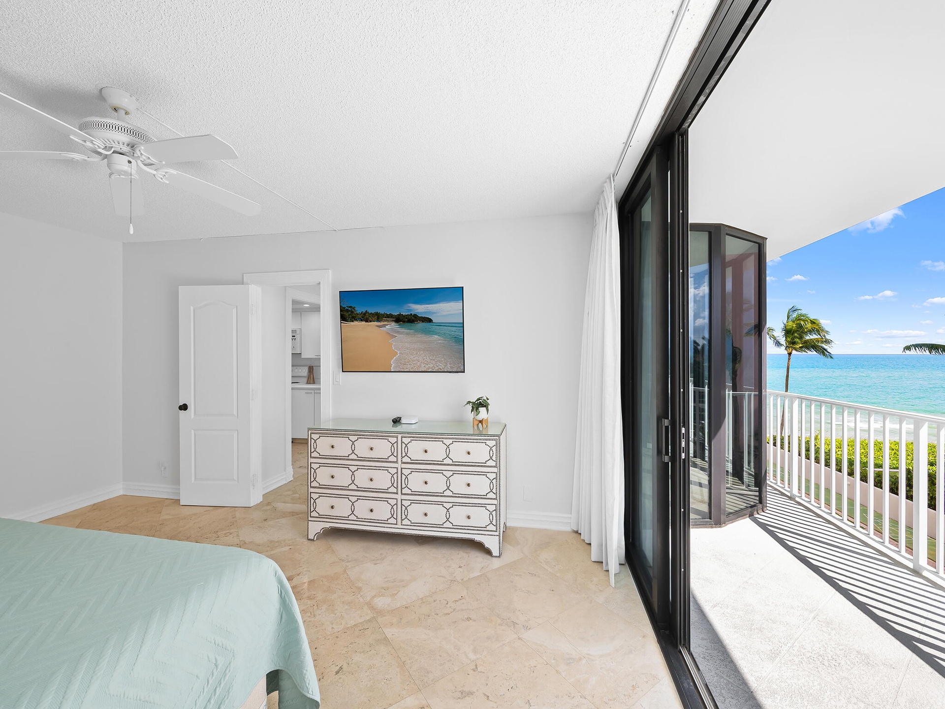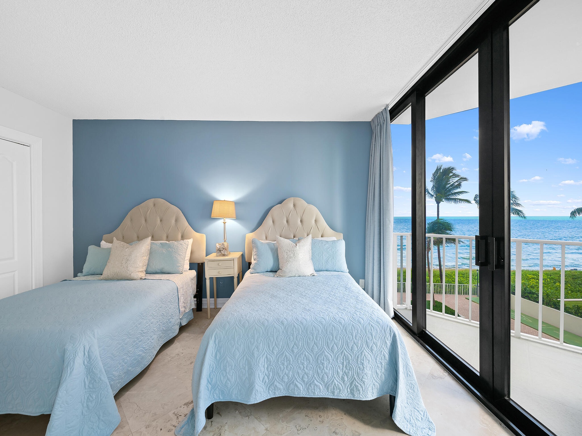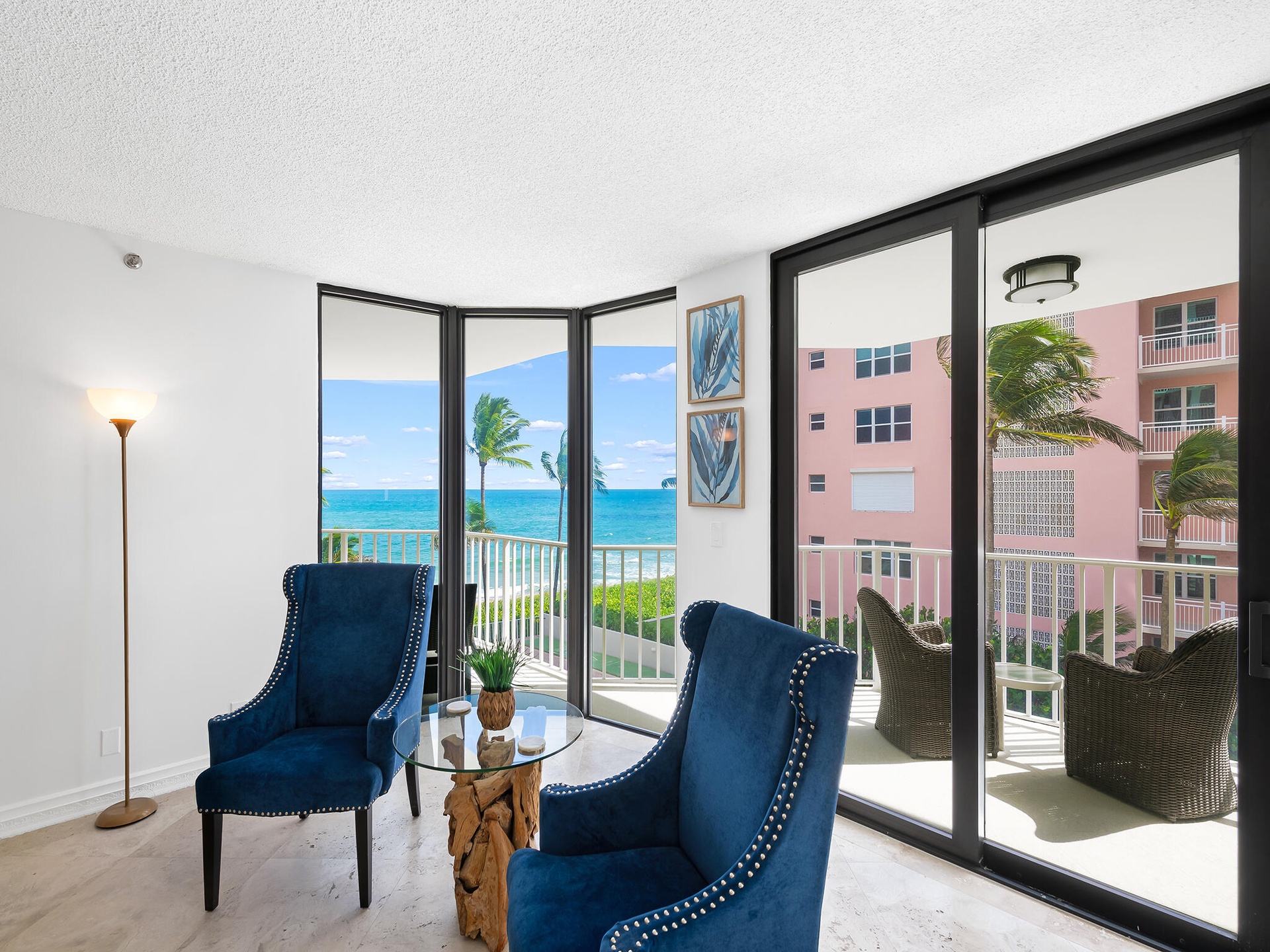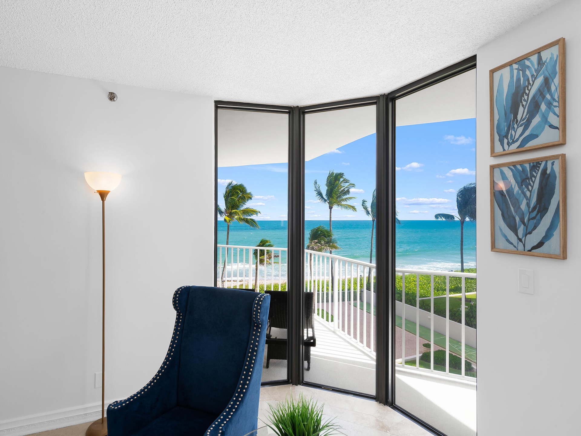 On the Beach!! Nestled in a charming boutique building, this 3rd-floor oceanfront condo offers a large split floor plan, multiple balconies and strong views of the Atlantic, & is only a short walk to Latitudes at the Delray Sands Resort. With only a handful of residences in the building, you'll enjoy a quiet beach atmosphere. Floor-to-ceiling sliding glass doors flood the space with natural light. Step onto your private balcony and take in the sights and sounds of the waves, perfect for morning coffee or evening sunsets.
