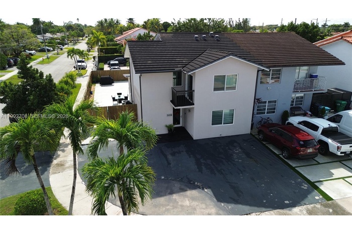 Beautifully maintained 4-bedroom, 3-bathroom corner-lot home offering modern comfort and functional design. This property features impact windows throughout and a stunning saltwater pool, perfect for outdoor entertaining and South Florida living. 1 bedroom and 1 full bathroom downstairs, ideal for guests, in-laws, or a home office. Upstairs you'll find 3 spacious bedrooms, including the primary suite. Enjoy a large, fully fenced yard with expansive patio space, ideal for gatherings and relaxation. Located on a desirable corner lot with ample parking and excellent curb appeal. A must-see home offering space, style, and convenience. Centrally located and within minutes of two major highways, offering easy access to shopping, dining, schools, and all that South Florida has to offer.
