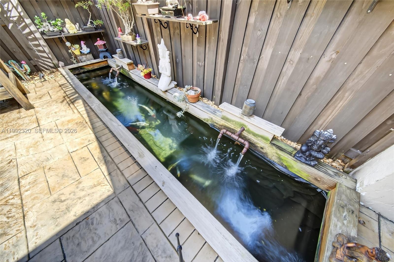 Step outside to your own private oasis complete with a tranquil koi pond, a charming pergola, and two storage sheds—perfect for added functionality and organization. Inside, both bathrooms have been tastefully updated, and the home is enhanced with a water filtration system for added convenience.