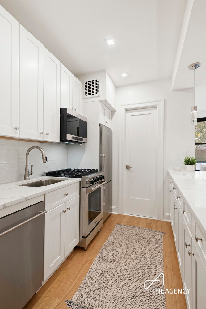 South facing windows offer abundant natural light overlooking the building's tranquil courtyard, creating a feel that is both bright and serene. The recent gut renovation was executed with care and attention to detail, featuring updated finishes, brand new appliances, and smart use of space that maximizes both comfort and functionality. Prewar charm is complemented by contemporary upgrades, resulting in a home that feels timeless yet move-in ready.