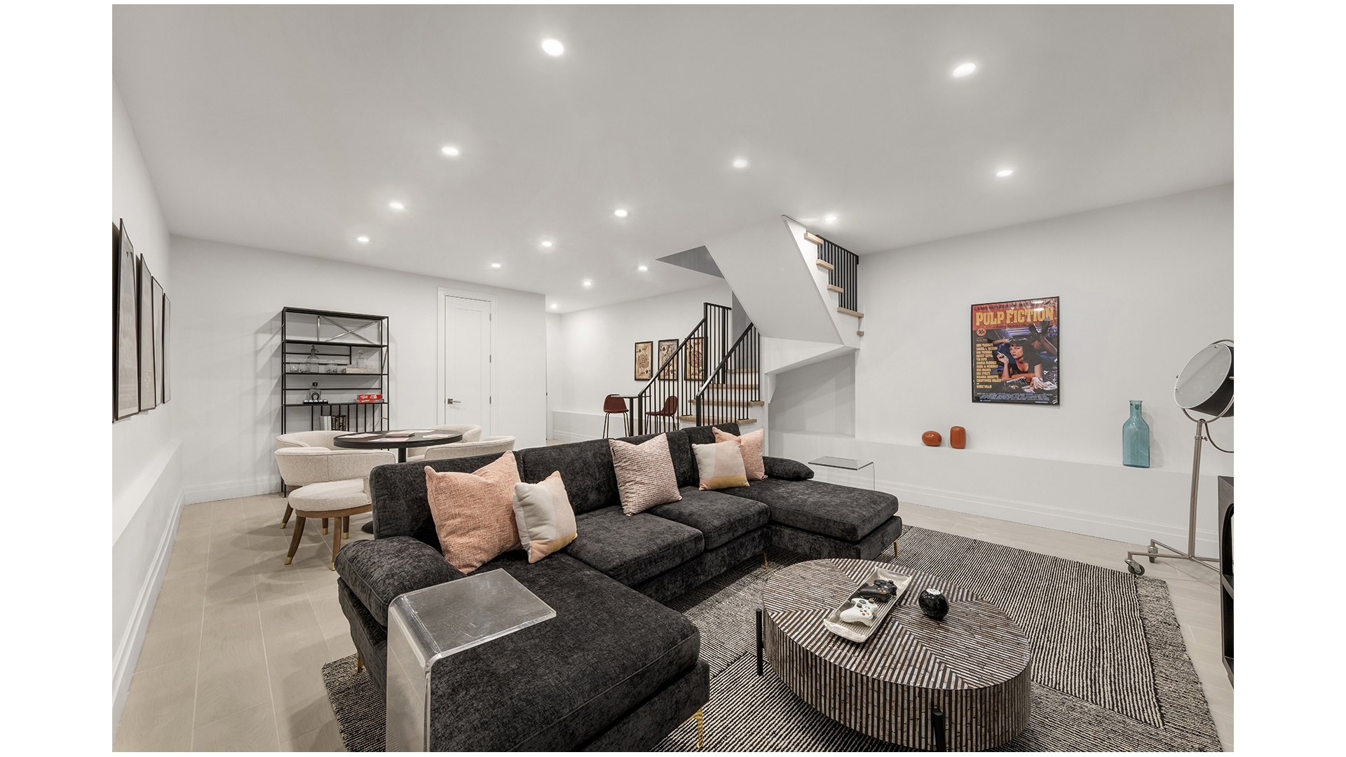 Heading one flight down from the main living space, the rec room has been fully finished to offer incredible flexibility. Whether you use this space as an additional family room, the kids' play area, or workspace, the possibilities are endless. This floor has an additional powder room for convenience and a full laundry room. Passing through the laundry room, a large storage room offers space for all the things you never know where to store.