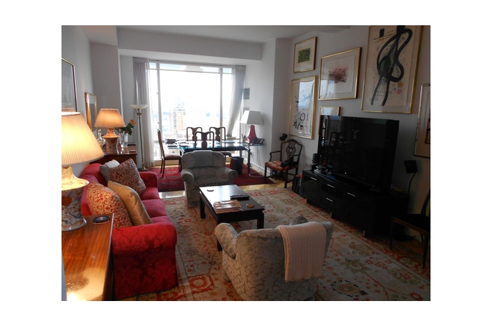 Two-bedroom, two-and-a-half-bath residence offering approximately 1,444 square feet of refined living space. This bright and spacious home features floor-to-ceiling windows with western exposure. The split-bedroom layout ensures privacy, with each bedroom featuring en-suite marble bathrooms and ample closet space. A well-appointed powder room enhances convenience for guests. Residents enjoy access to a full complement of white-glove services and five-star amenities, including 24-hour doorman and concierge, a state-of-the art fitness center, swimming pool, and hotel level services--offering a lifestyle of unparalleled comfort and prestige directly across from Central Park