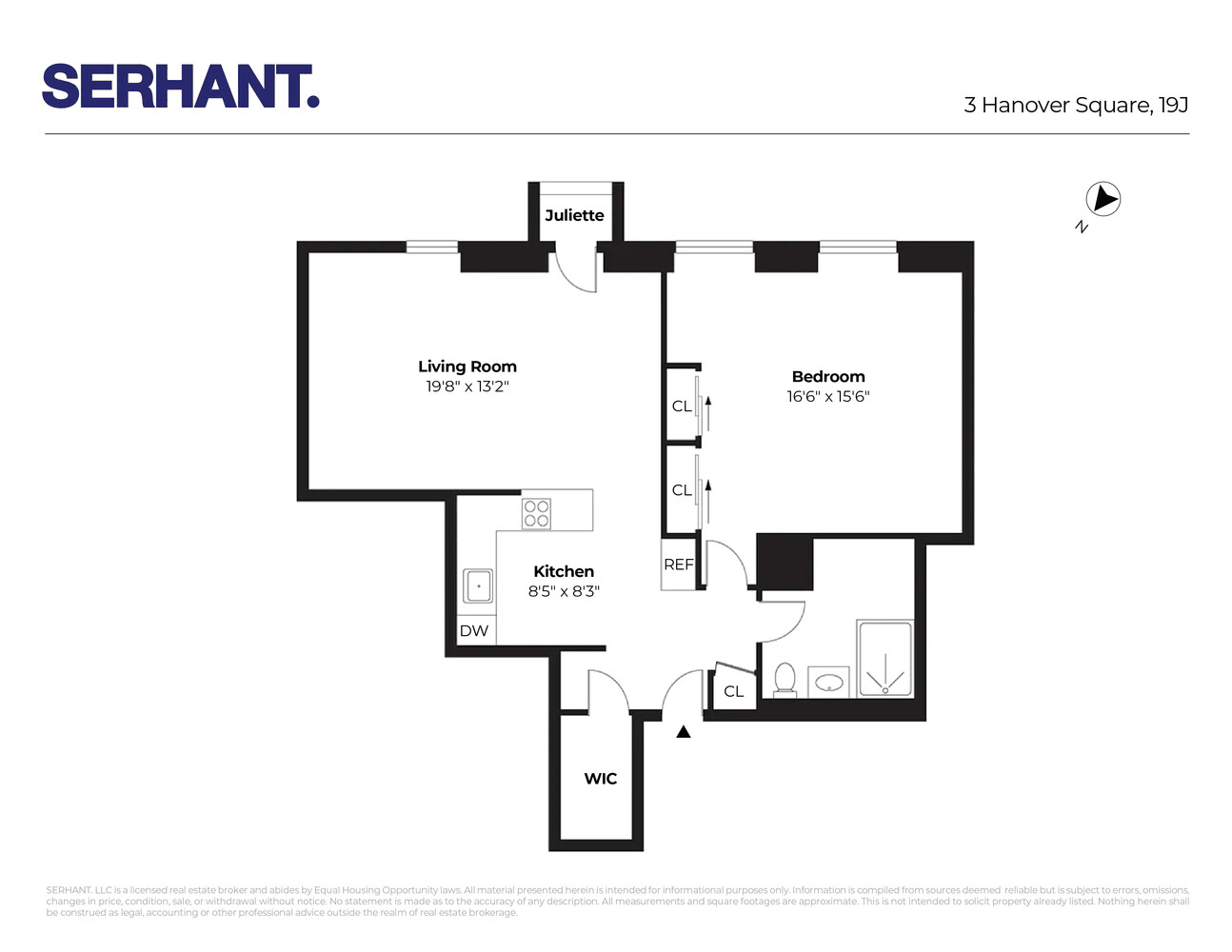 Residence 19J at 3 Hanover Square is a bright, well designed one bedroom offering a clean, modern aesthetic and an efficient layout.