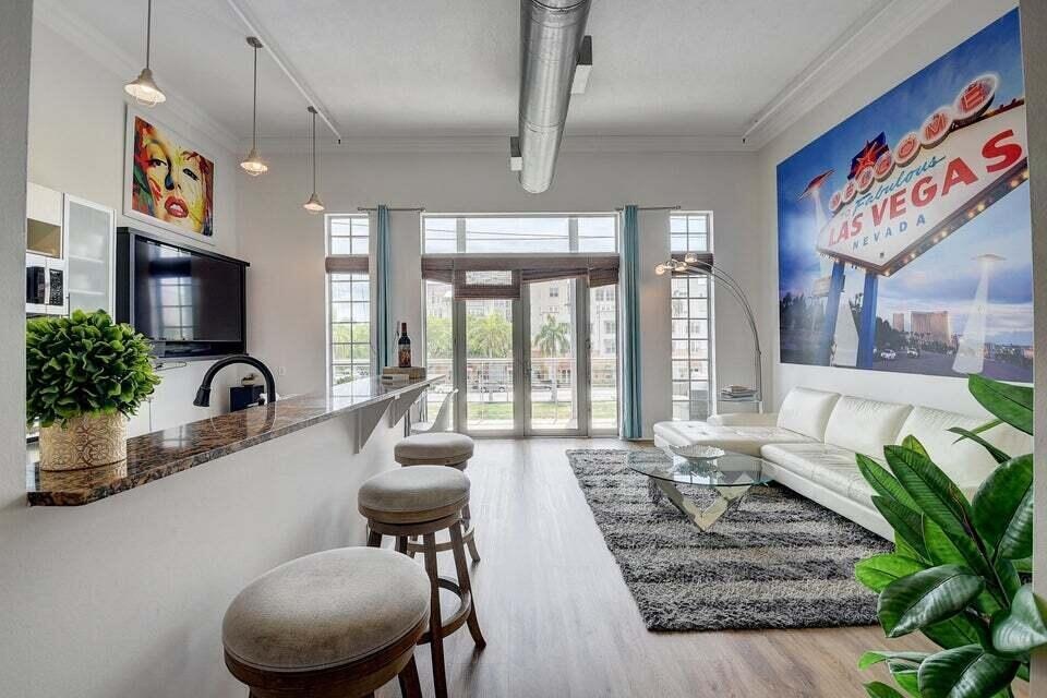 NOT AVAILABLE FROM DECEMBER 16TH 2026 UNTIL MARCH 17TH 2027 ! Stylish Downtown Delray Beach Loft - Steps from Atlantic Ave & Beach! Escape to this chic 2-bedroom, 2-bathroom loft condo, just one block from vibrant Atlantic Avenue and a short stroll to Delray's pristine beaches. Soaring exposed ceilings and a spacious balcony create a perfect blend of modern elegance and coastal tranquility. The upstairs loft area is ideal for kids or extra guests to unwind. Perfect for a quick getaway, this trendy retreat puts you in the heart of Delray's dining, shopping, and nightlife. Book now for an unforgettable short-term stay!