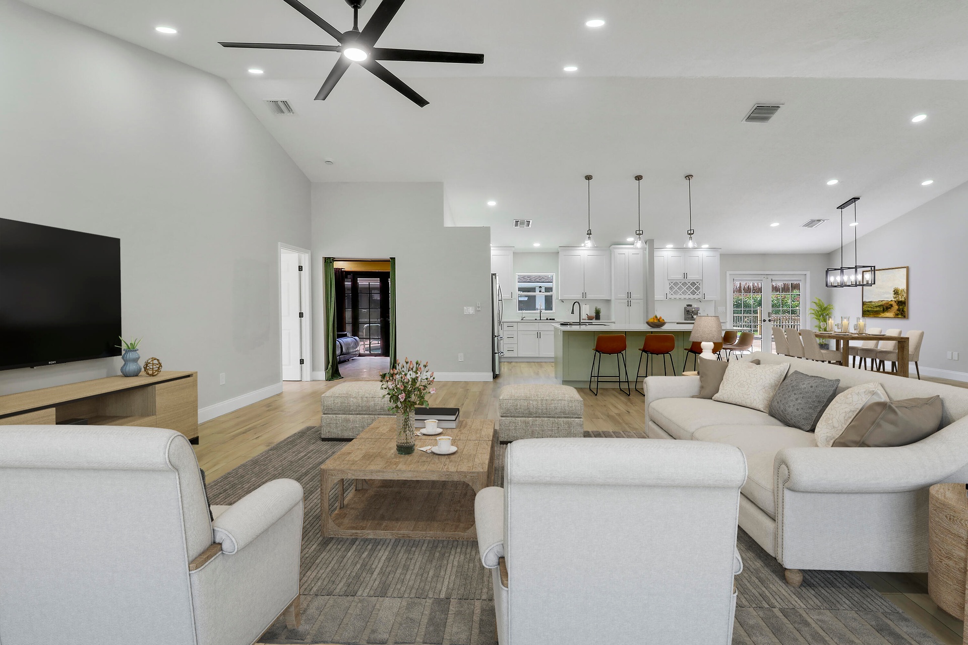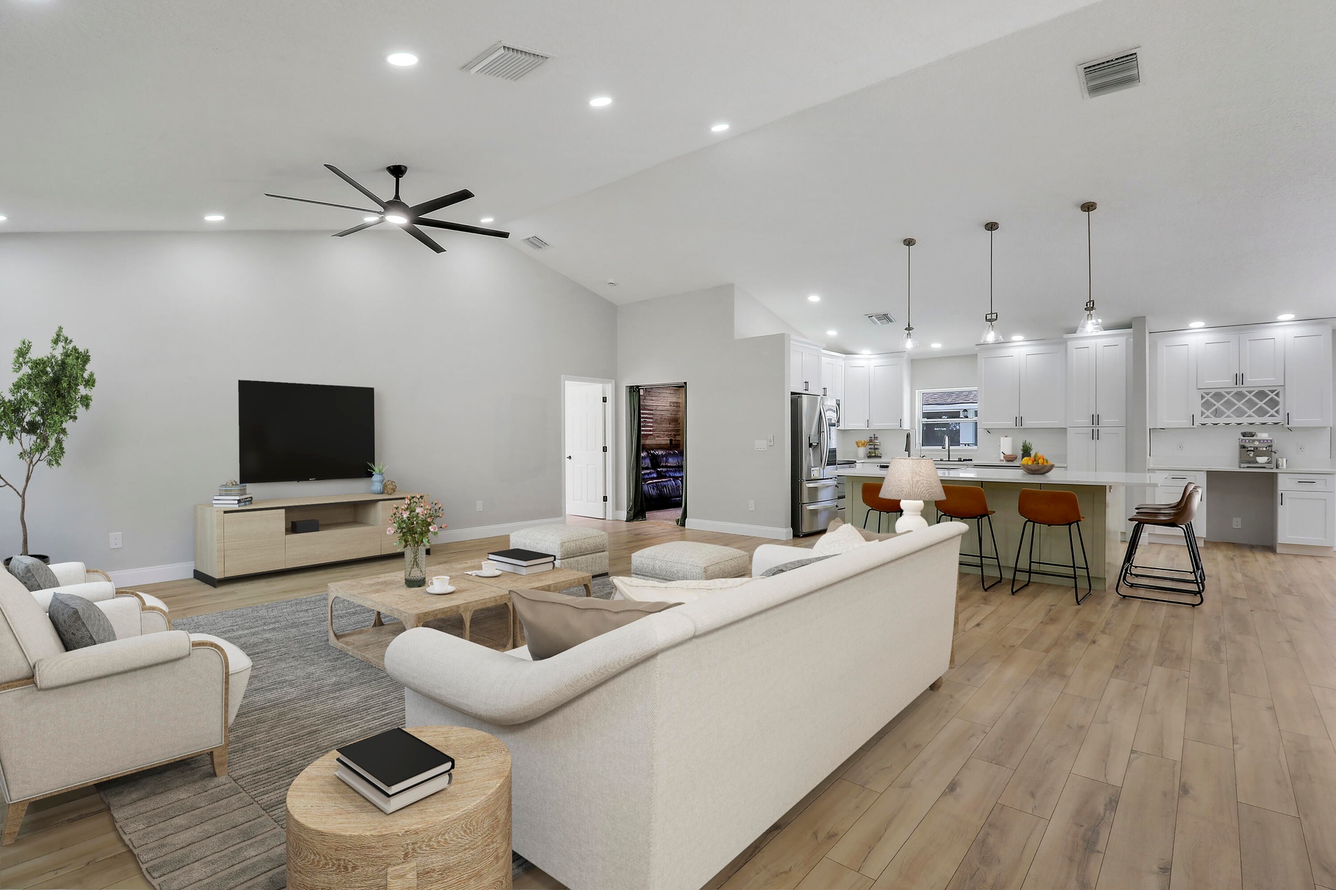 Welcome to 12692 169th Court North, a beautifully updated CBS home located in the highly sought-after community of Jupiter Farms—offering privacy, space, and the freedom of no HOA, all on a paved road. This 3-bedroom, 2.5-bath residence features a desirable split floor plan, providing both functionality and privacy. The light-filled interior offers spacious living areas and a seamless flow perfect for everyday living and entertaining. The home is enhanced with luxury vinyl flooring throughout and a Lutron lighting system, delivering both style and modern convenience. At the center of the home is the fully updated kitchen, designed to impress with a large island topped with white quartz countertops, stainless steel appliances, and soft-close cabinetry—combining elegance and functionality. The bathrooms have been tastefully updated, offering a fresh, modern feel. The 2-car garage features durable epoxy flooring, adding both visual appeal and practicality. The spacious primary suite is a true retreat, featuring a large walk-in closet with custom built-ins for optimal organization and storage. A dedicated home theater with projector creates the perfect setting for movie nights, game days, and entertaining from the comfort of your own home. This home is also equipped with 52 solar panels, significantly reducing electric costs and providing exceptional energy efficiency—an increasingly valuable feature for today's buyers. Step outside to your own private backyard retreat. The pool area is surrounded by lush clusia hedges, creating a private, tranquil setting. Enjoy the Florida lifestyle with a sparkling pool, a charming tiki hut, and an expansive 46 x 14 screened-in cabana—ideal for entertaining, relaxing, and year-round outdoor living. The property is designed for both fun and functionality, featuring a dedicated playground area with low-maintenance synthetic turf—perfect for kids and outdoor enjoyment. The generous lot also offers ample space for boats and RVs, complete with a 50 AMP RV hookup, giving you the flexibility to store all your toys with ease. All new impact glass windows and doors have been ordered and are scheduled for installation soon, offering added peace of mind and future value. Located within highly rated Jupiter schools and just minutes from pristine beaches, dining, shopping, and world-class golf, this home delivers the perfect balance of peaceful living and everyday convenience in one of Palm Beach County's most desirable acreage communities. Don't miss this move-in-ready opportunity in Jupiter Farms.