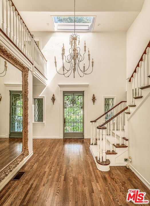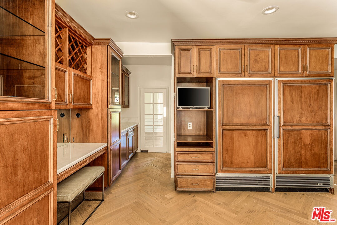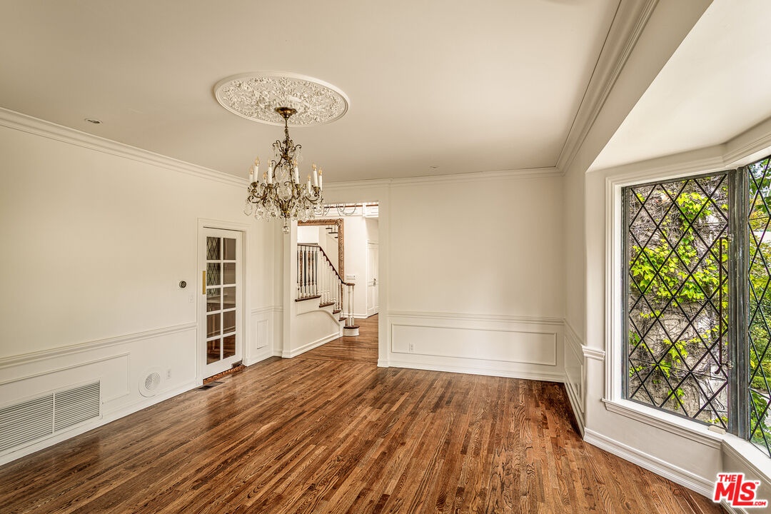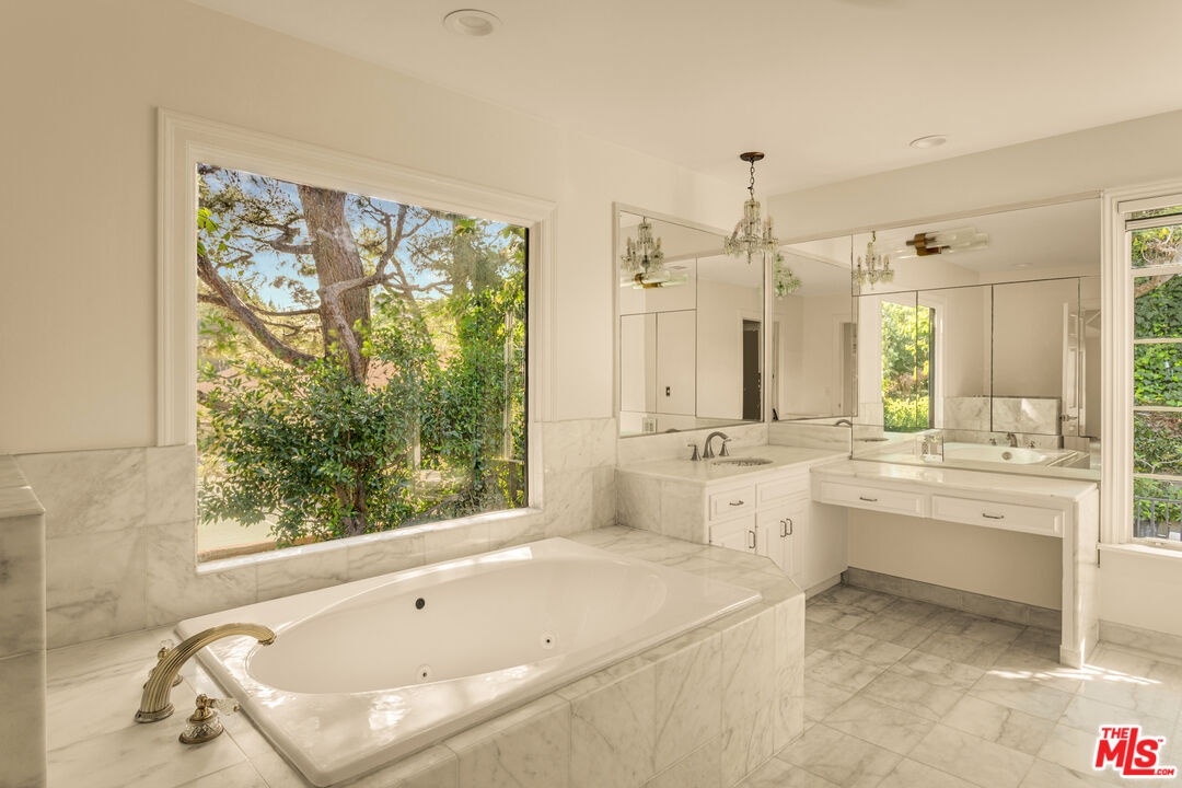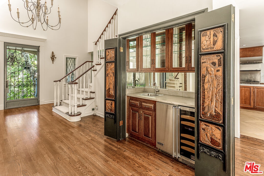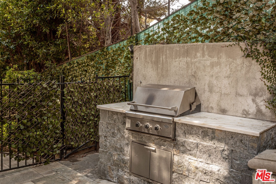 Welcome to 353 North Gunston Drive, ideally situated within the prestigious guard-gated community of Brentwood Circle, where a 24-hour gatehouse provides exceptional privacy and security. Tucked behind its own private gates, the home welcomes you with a spacious motor court accommodating 3+ vehicles, along with a three-car garage and direct access to the property. Upon entry, a gracious foyer with rich hardwood floors sets the tone, flanked by a formal dining room and an elegant living room with a fireplace. Expansive French windows flood the interiors with natural light and frame serene views of lush landscaping and the sparkling pool. The chef's kitchen is thoughtfully designed with premium appliances, including a dual-drawer refrigerator, four-burner stove with griddle, dishwasher, microwave, and a generous walk-in pantry. A breakfast bar and charming dining nook overlook the backyard, creating a warm and functional gathering space. Adjacent, an oak-paneled den offers a cozy retreat complete with fireplace, bar, and ample seating. The lower level features a private home theater, ideal for movie nights or game-day entertaining along with an additional guest or staff bedroom. Upstairs, the home offers three bedrooms and three bathrooms, including a luxurious primary suite and a refined office/library. The primary suite boasts soaring ceilings, expansive windows with pool views, and a spacious layout designed for relaxation. The spa-inspired bathroom includes dual vanities, a soaking tub, a large walk-in shower with dual shower heads, and an oversized walk-in closet.Two additional en-suite bedrooms provide comfort and privacy for family or guests, each with charming views of the estate. Step outside to your own private oasis, complete with a sparkling pool, fire pit, grill, and multiple areas for outdoor dining and entertaining. A lush lawn and space for a vegetable garden add versatility and charm. Located just moments from Brentwood Village's shops and restaurants, the property offers effortless access to iconic landmarks like the Getty Center and some of Los Angeles' most highly acclaimed schools.