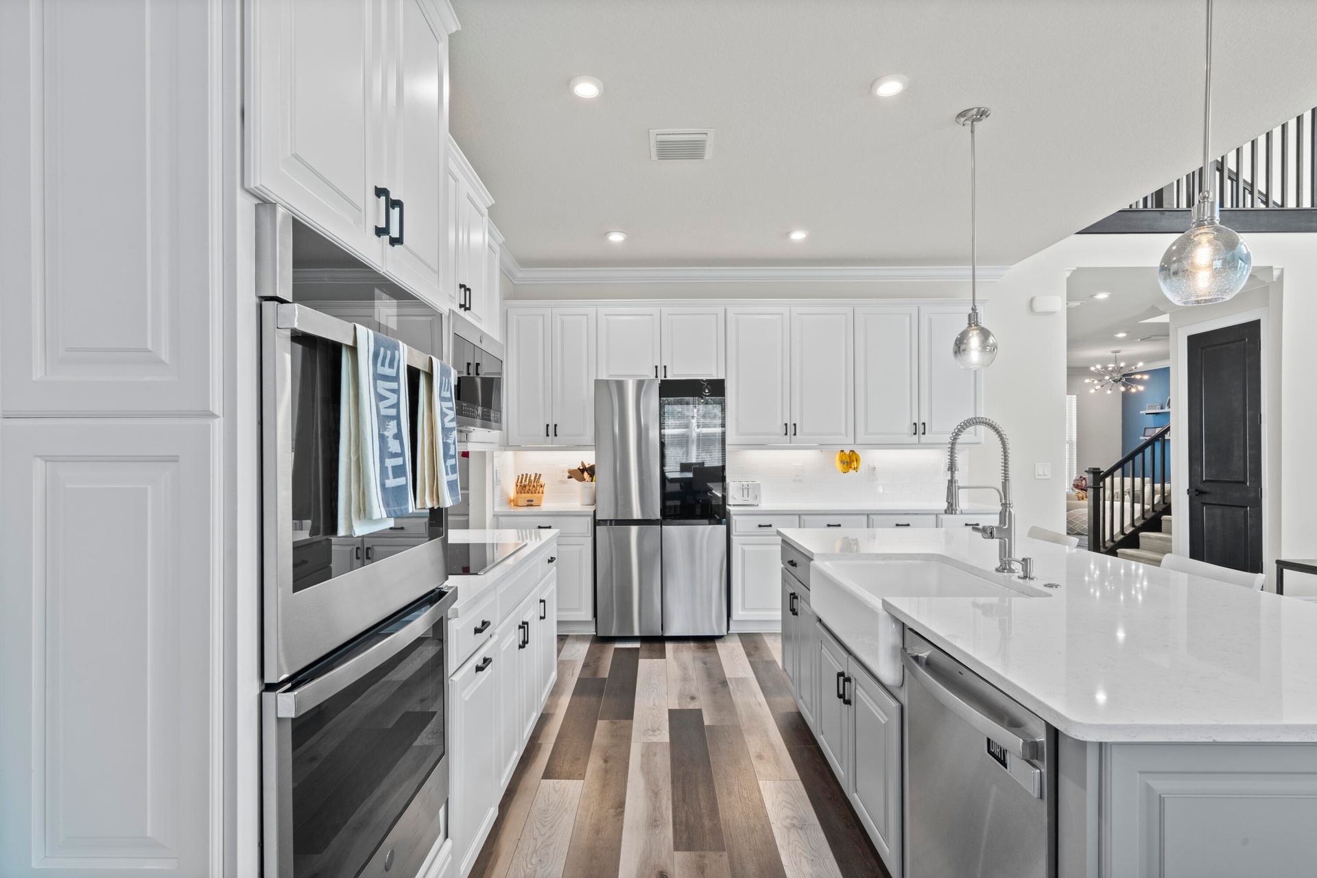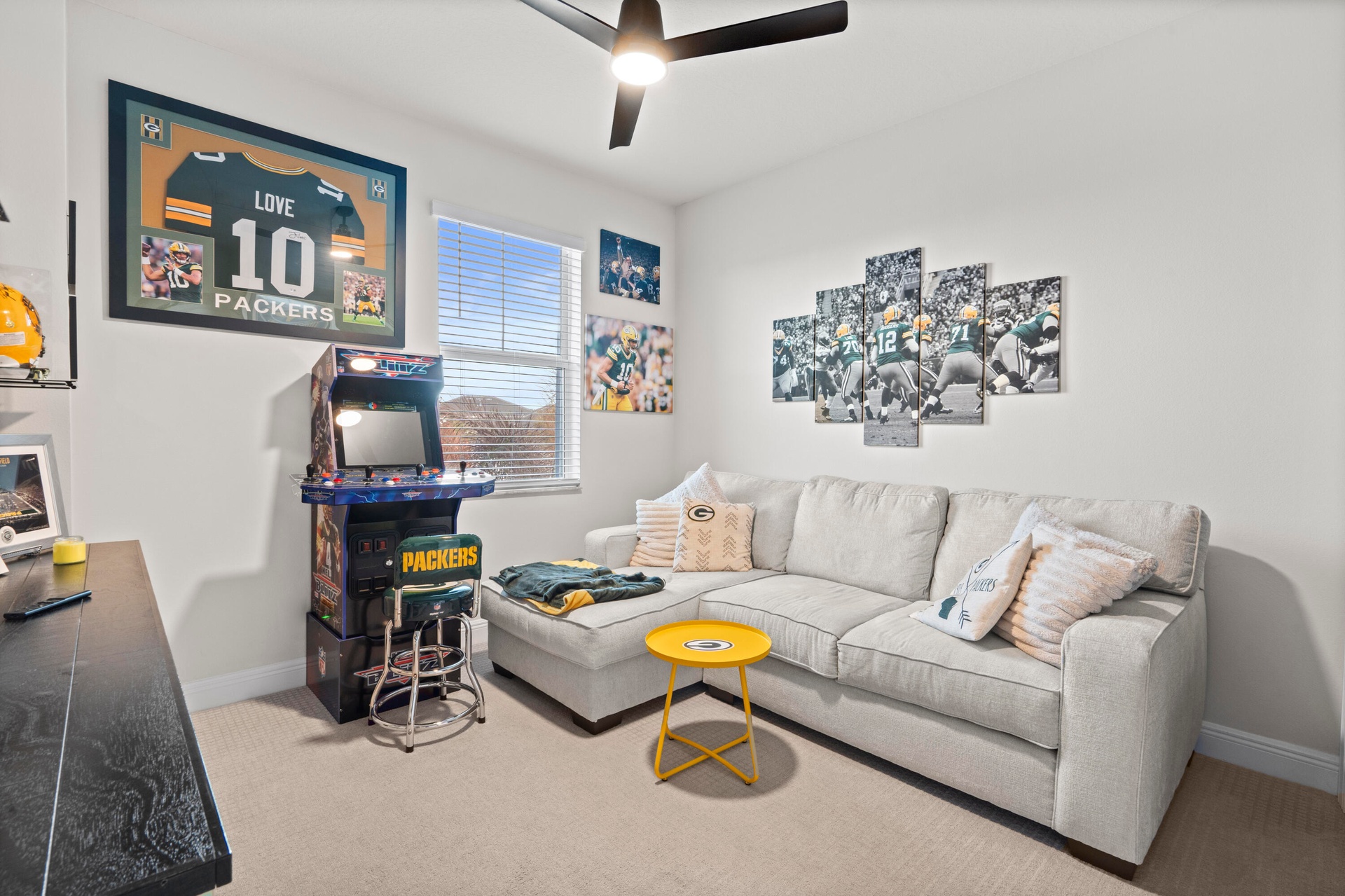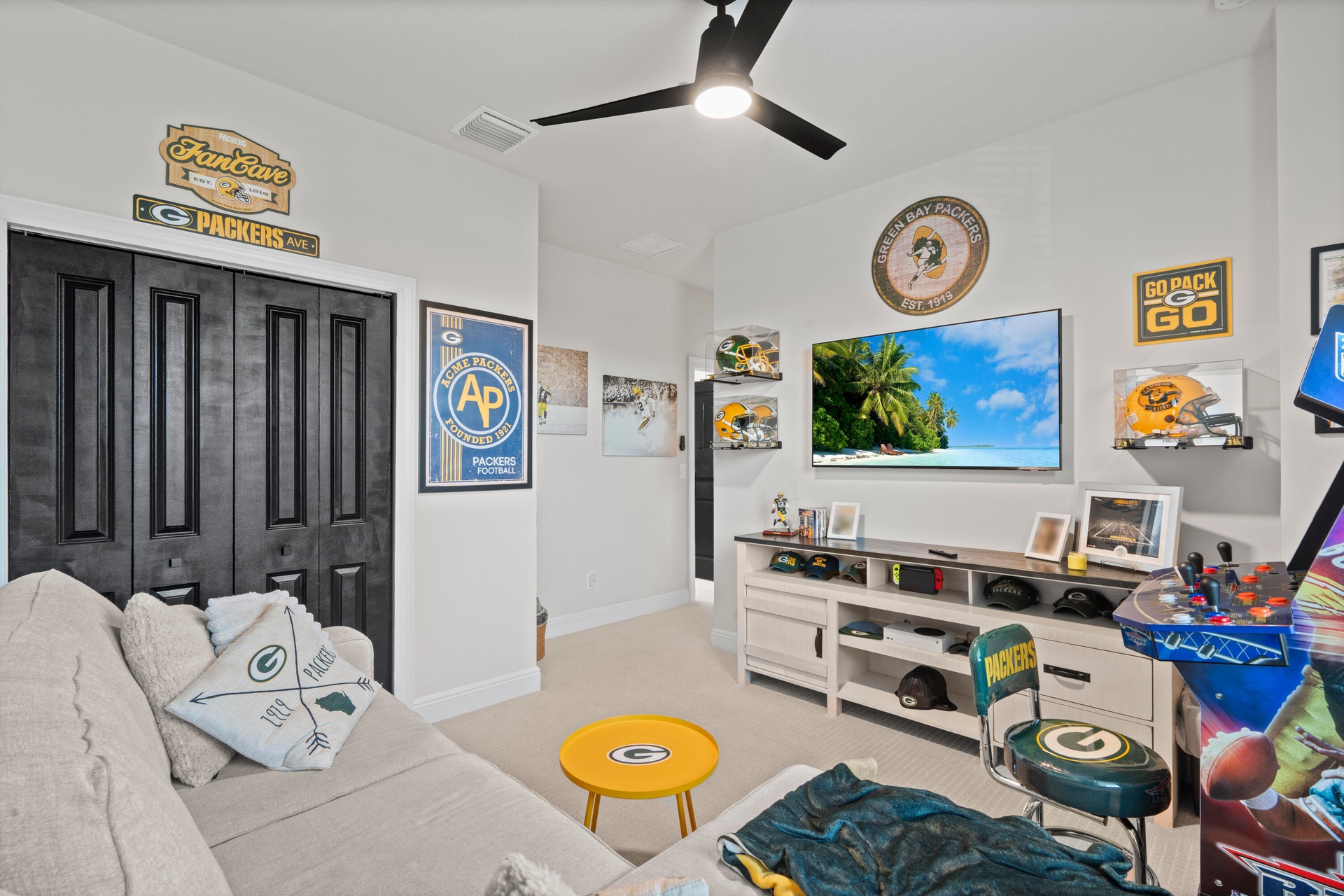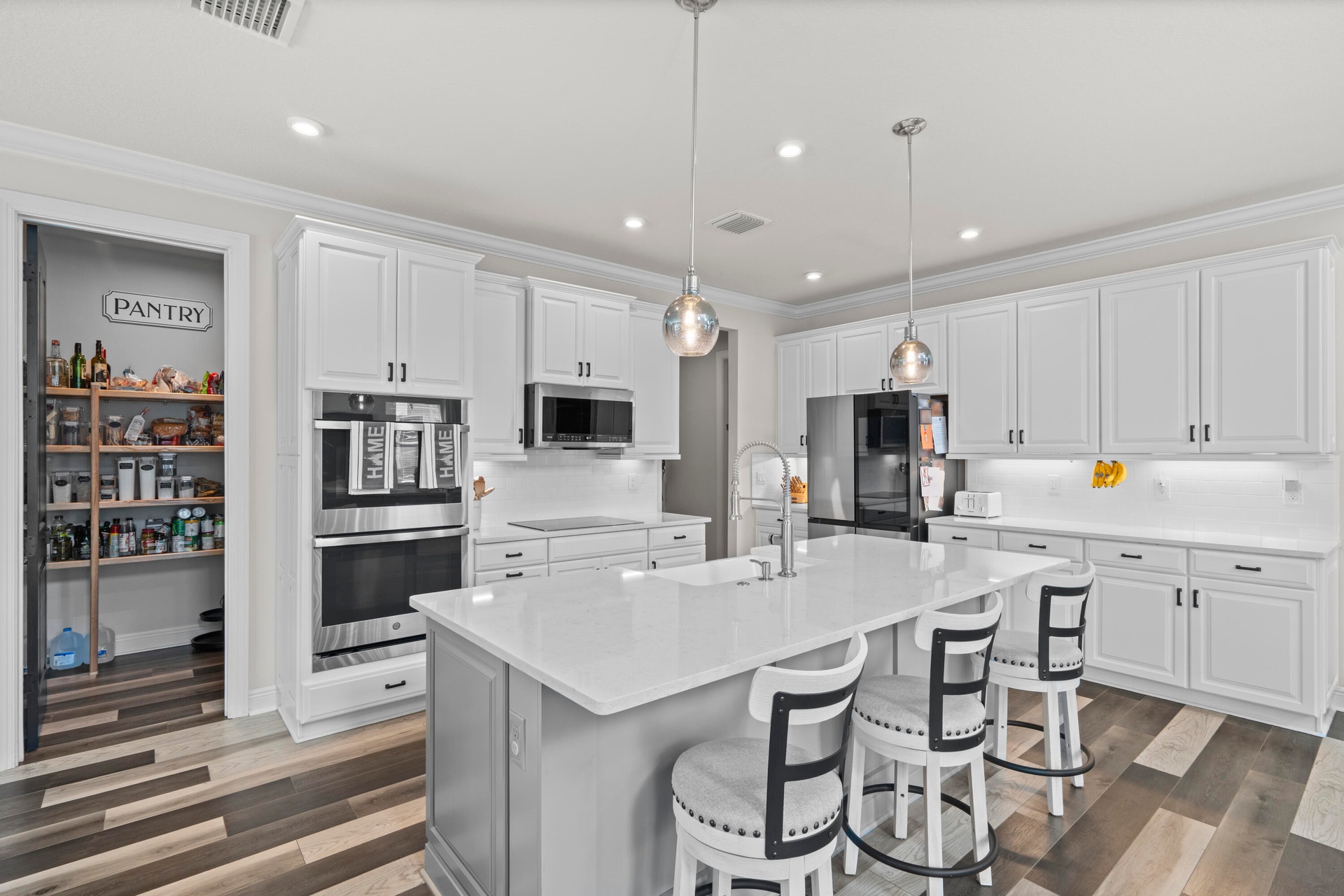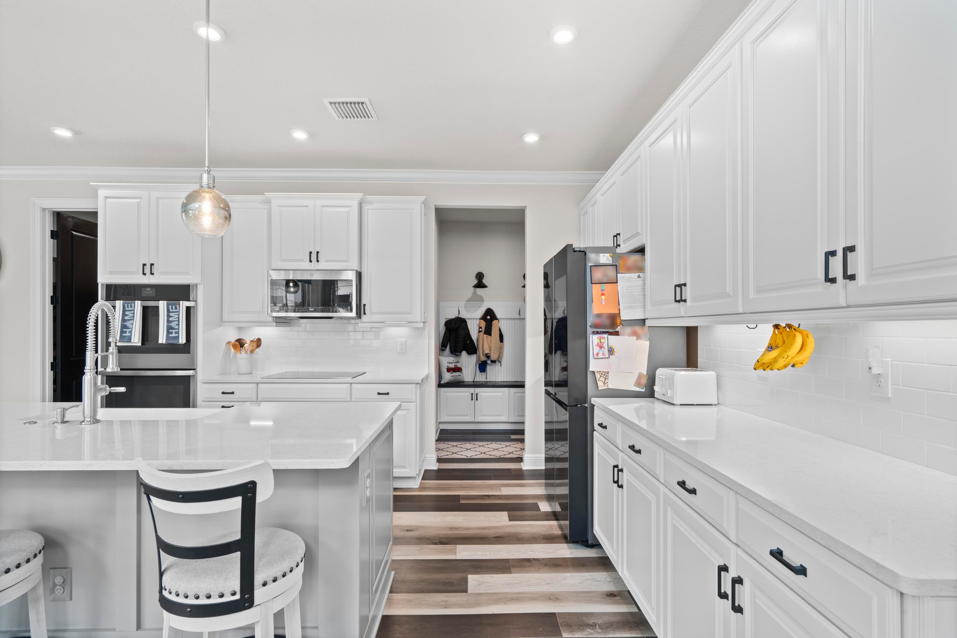 Impeccably built in 2021, this stunning 4 bedroom, 3.5 bathroom residence with 3 car garage home is the home you've been waiting for! From the moment you enter, you'll be captivated by the two-story great room and the abundance of natural light creating a bright, airy atmosphere within the open-concept layout. The expansive great room flows seamlessly into the gourmet kitchen, featuring quartz countertops, double wall ovens, a sleek cooktop, modern cabinetry, and an oversized walk-in pantry. This space was designed for both the home chef and the entertainer. The owner's suite is a true retreat with a coffered ceiling, a customized spa-inspired bathroom featuring a luxurious walk-in shower, beautifully crafted cabinetry, and two oversized walk-in closets overlooking the preserve. Additionally featuring built in pocket office, mudroom, custom trim work, full garage gym with epoxy floor, den, and so much more. Nestled on the tranquil preserve for the complete indoor outdoor lifestyle with oversized deck for entertaining, salt water pool with sun shelf, heater and expansive fenced in yard. Located in the gated community of Banyan Bay, residents enjoy a low maintenance lifestyle with lawn care, irrigation, quarterly pest control, and fertilization. Community amenities include St. Lucie River access with a fishing dock, kayak and paddle board launch, and gazebo. The clubhouse features a fitness center, heated pool, activity room, and catering kitchen perfect for gatherings or simply enjoying the Florida lifestyle.