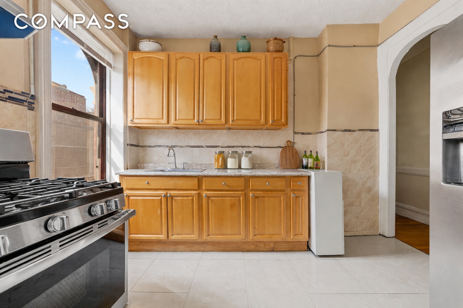 Featuring approximately 10-foot ceilings, hardwood floors, and charming original details, the apartment offers wonderful bones and a highly flexible layout. Multiple bedrooms, generous closets, or a separate dining area are all possible depending on your vision. Oversized windows provide excellent natural light throughout the day, and the higher floor offers added privacy and openness.
