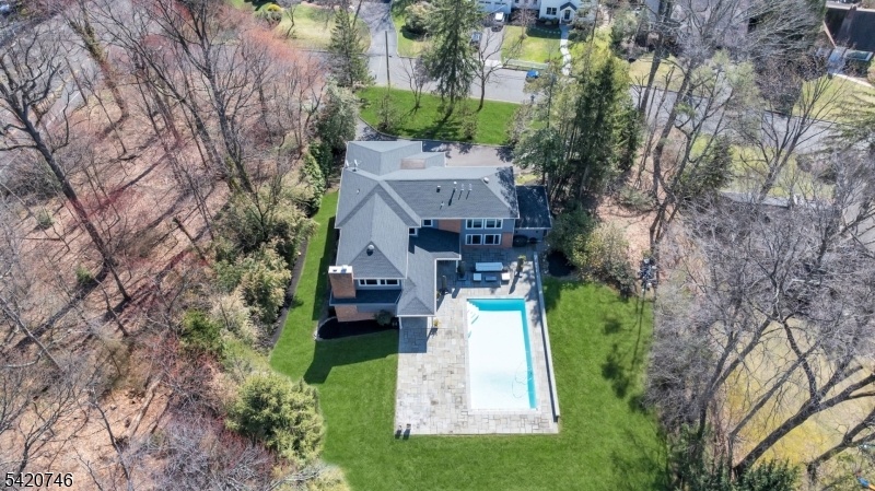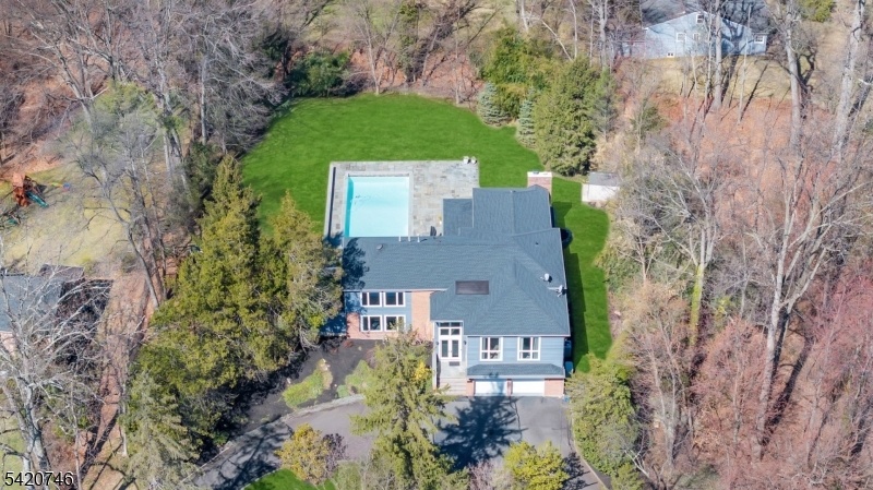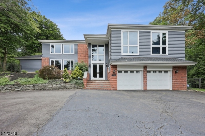 Commanding atop a lush, elevated lot bordering 1.