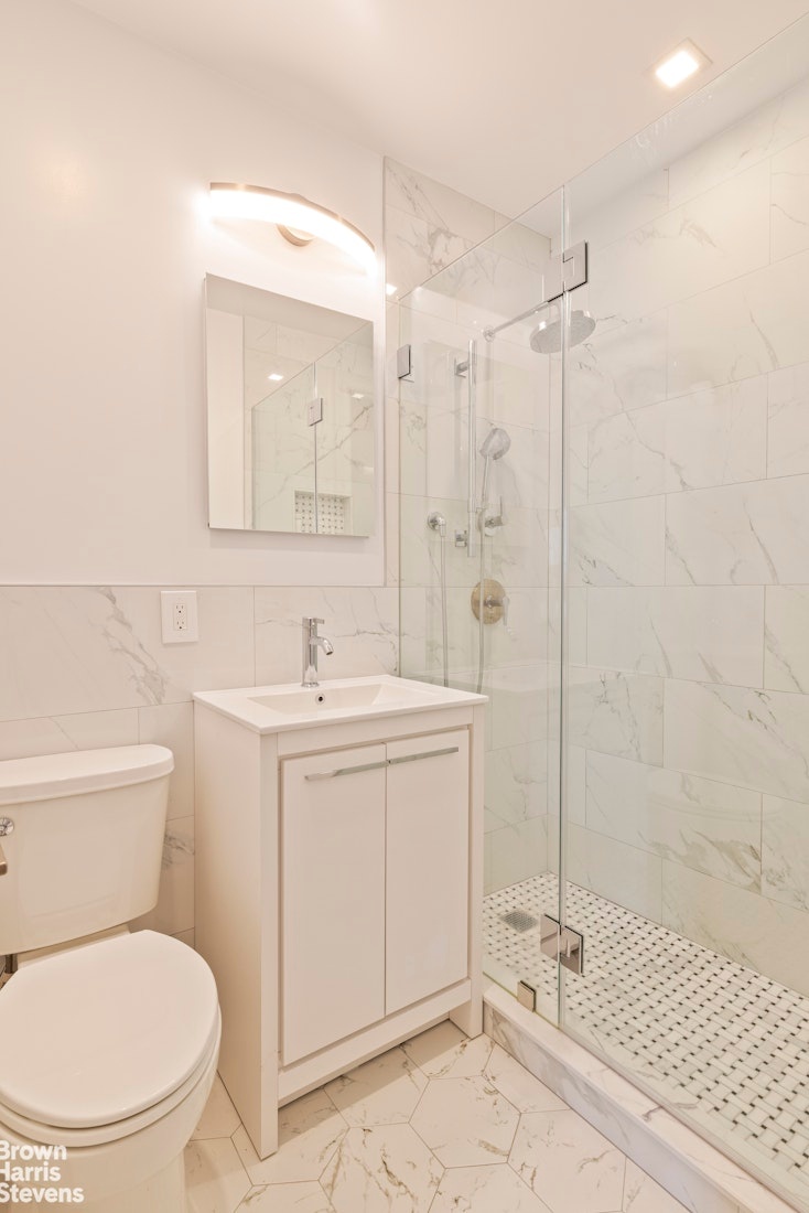 Welcome to apartment 807 located in a full-service pre-war co-op building with a prime Upper West Side location. This turn-key studio was recently gut renovated and is ready to move into. There is a spacious entry foyer with two large closets, hardwood floors, 9ft.1" ceilings with recessed lighting throughout and bright natural light from 3 windows facing North and West. The open, windowed kitchen has brand new stainless appliances including a full size refrigerator, dishwasher, gas stove, microwave, under mount sink and porcelain countertops. The modern bathroom features a nice vanity, recessed medicine cabinet and a generous stall shower. The thoughtful layout of the apartment allows plenty of room for a queen size bed, sofa, and desk or entertainment unit.