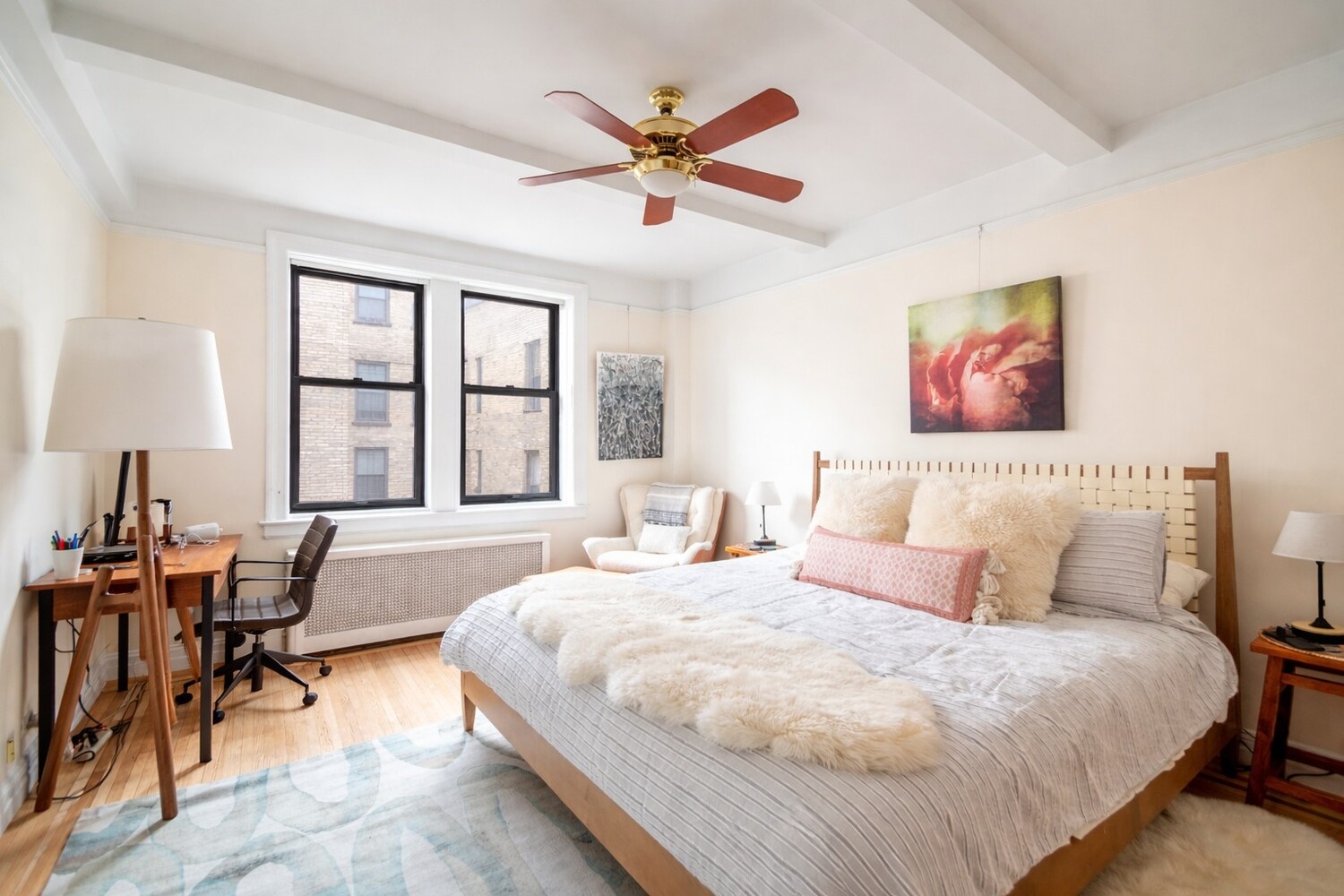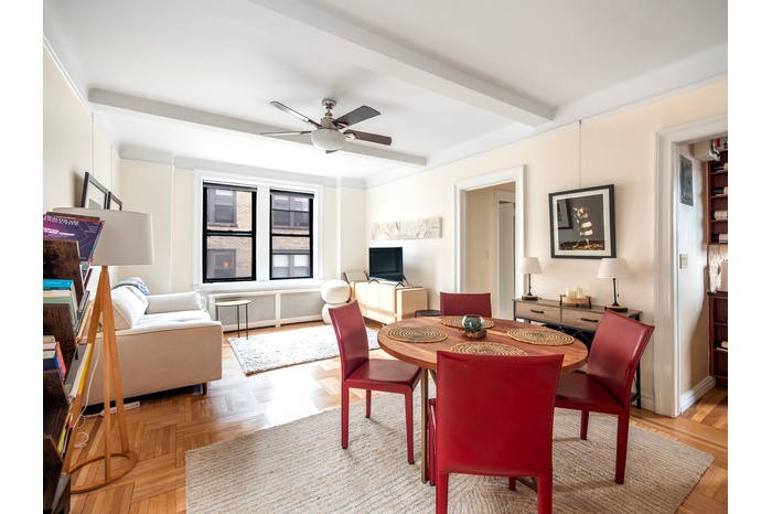 A rare opportunity in the heart of Lincoln Square, this inviting and well-proportioned one-bedroom offers classic Upper West Side charm just moments from Central Park. With a bright southern exposure, the home is filled with natural light and showcases beautifully preserved prewar details, including beamed ceilings nearing nine feet and multiple oversized windows that enhance the sense of space.