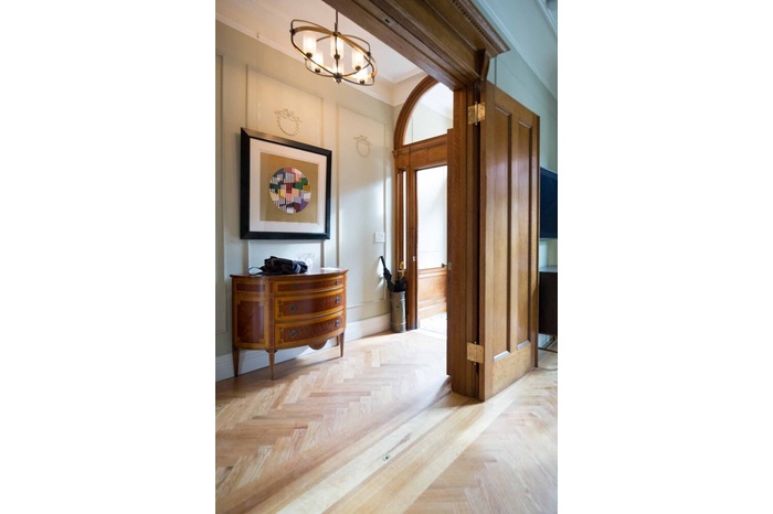 The house has four zone heating and air-conditioning with a temperature control in every room. In total there are four wood burning fireplaces, completely restored and relined, in perfect working order. Appliances are all Viking with the exception of the washers and dryers which are GE in the triplex and Electrolux in the apartment. The counters in both kitchens are Quartz. Each of the six bathrooms boasts heated floors, quite the luxury in the winter, and the house has a Control 4 sound system for music and TV with speakers in every room.