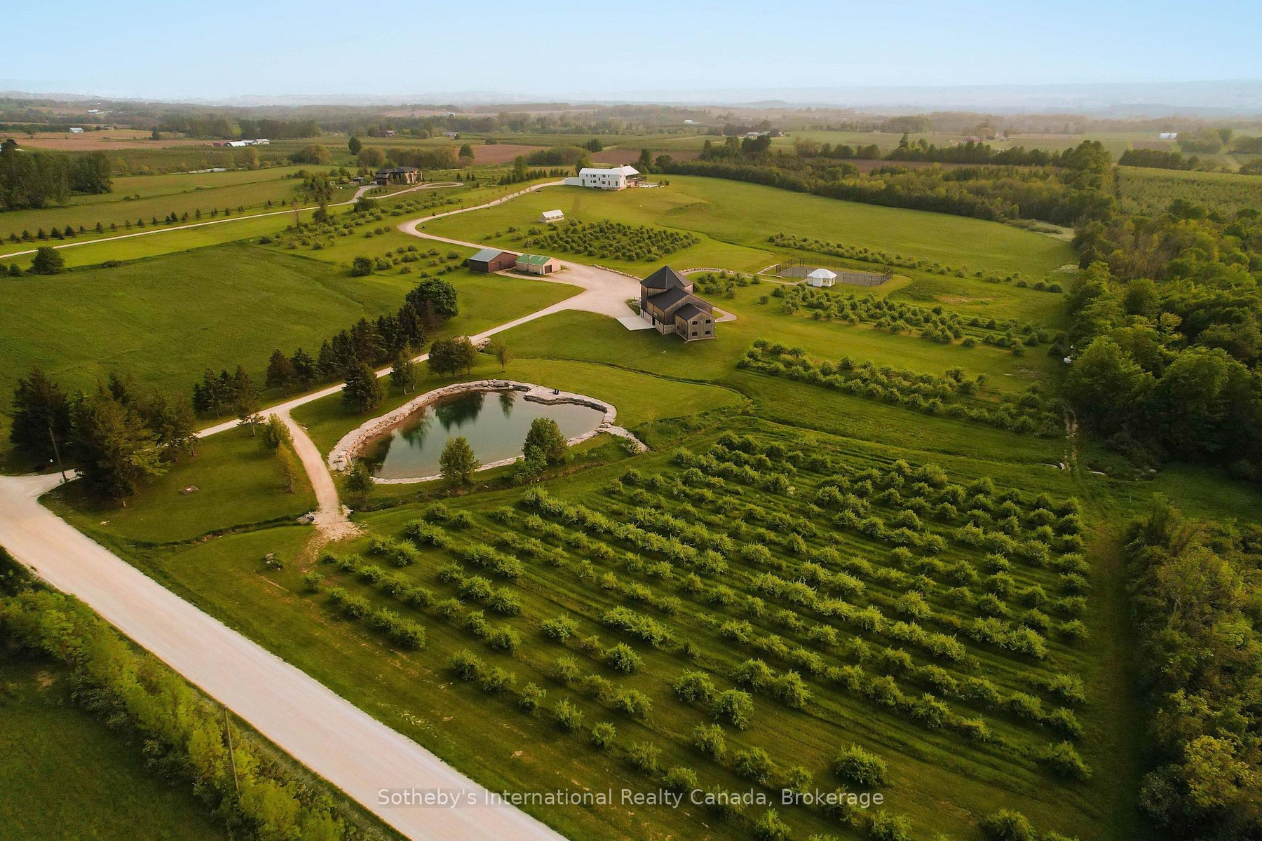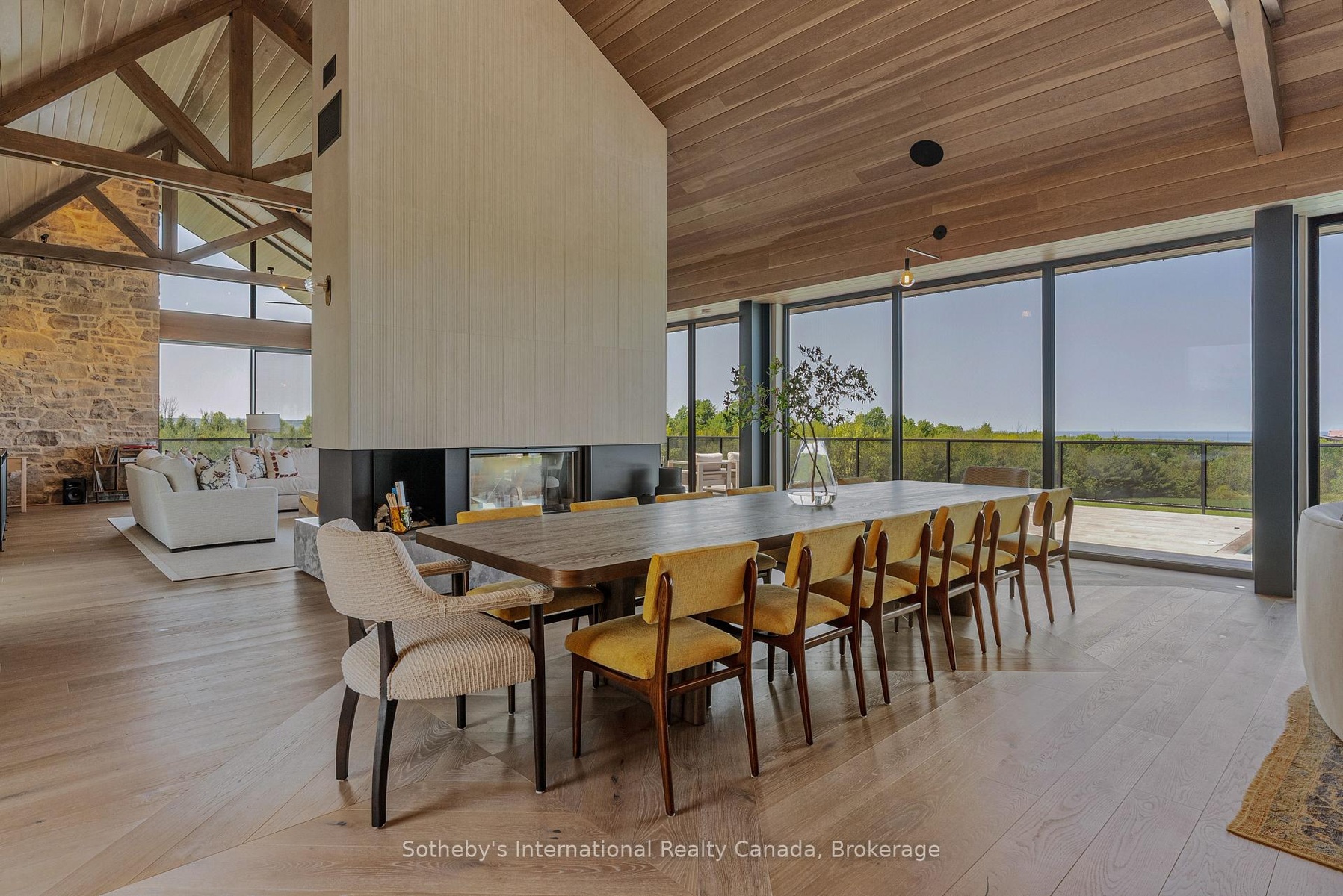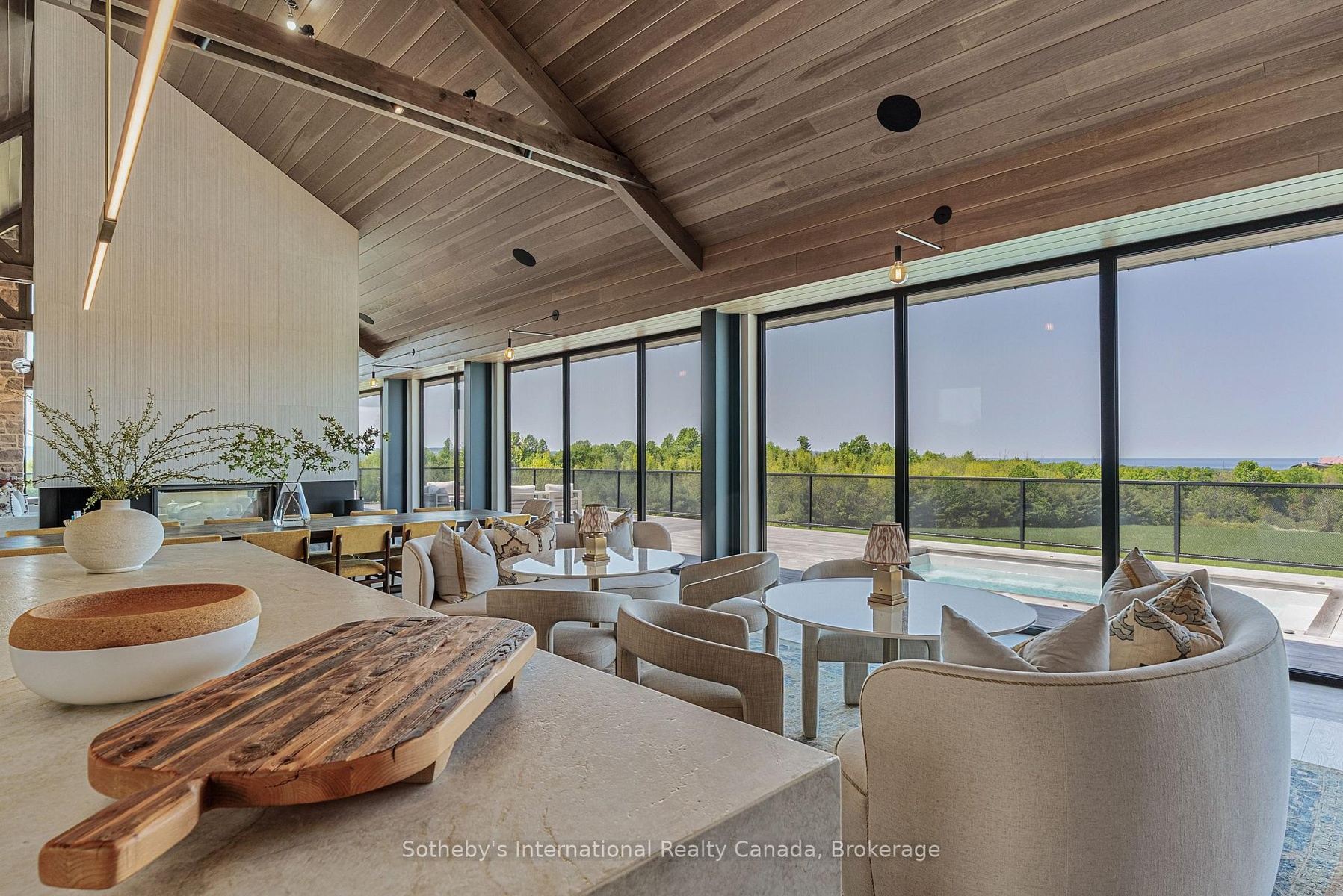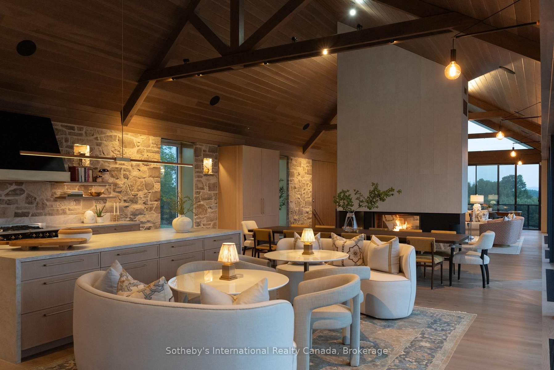 Never has there been an offering quite like this in the Blue Mountains. Welcome to Georgian Valley Farm, where world-class design meets the unspoiled beauty of nature and breathtaking sunsets. Set on 37 spectacular acres, this one-of-a-kind estate is anchored by an extraordinary 11,000 sq ft custom residence - a design landmark by Post Architecture Inc. and built by renowned builder David Eaton, Baylyn Construction. This property defines luxury recreational living, w/saltwater pool, Har Tru clay tennis court, orchard, pond, a Hartley Botanic Greenhouse - 'Grand Manor' imported from the UK and an incredible restored barn, ideal for entertaining. Perched high on 7th Line, the home presents commanding, panoramic views of the Niagara Escarpment and Georgian Bay from nearly every room. Scandinavian-inspired minimalism blends with refined country elegance, w/ Moncer European oak floors, soaring wood-clad ceilings, and a wall of floor to ceiling windows by Atek that frame the landscape. Chef's kitchen features a 12-ft marble island, appliances by Miele, Sub-Zero, and Lacanche, custom Barlow millwork, exquisite stonework and full butler's pantry. The dining room for 14 includes a concealed Barlow bar and a striking 2-way woodburning STUV fireplace shared with the living room. Thoughtful details are found throughout w/ designer lighting, imported tiles and hand-painted De Gournay wallpaper in the adult lounge, library, and powder room. A main floor primary sits behind double Egyptian doors and features a gas fireplace, luxurious ensuite, WIC, and sitting area. 4 upper bedrooms, all uniquely designed, feature beautifully curated ensuites with extensive tile/marble finishes, custom millwork and WIC. The lower level offers a golf simulator, gym, sauna, rec room, refreshment area, 200+ bottle Rosehill Wine Cellar, and w/o to the covered terrace and pool. Exceptional outdoor living offers a 2,520 sq ft deck, with a full Crown Verity kitchen, dining & lounge areas, and a hot tub.