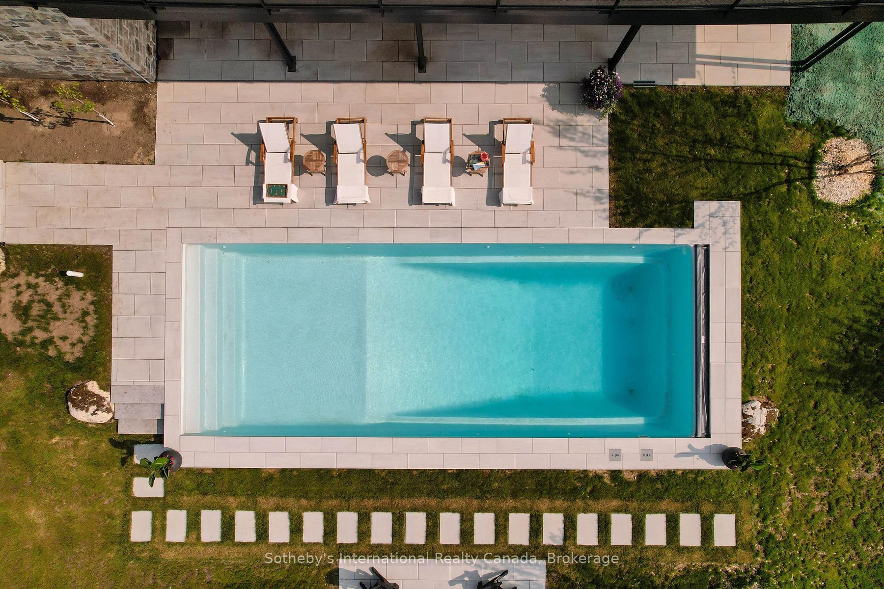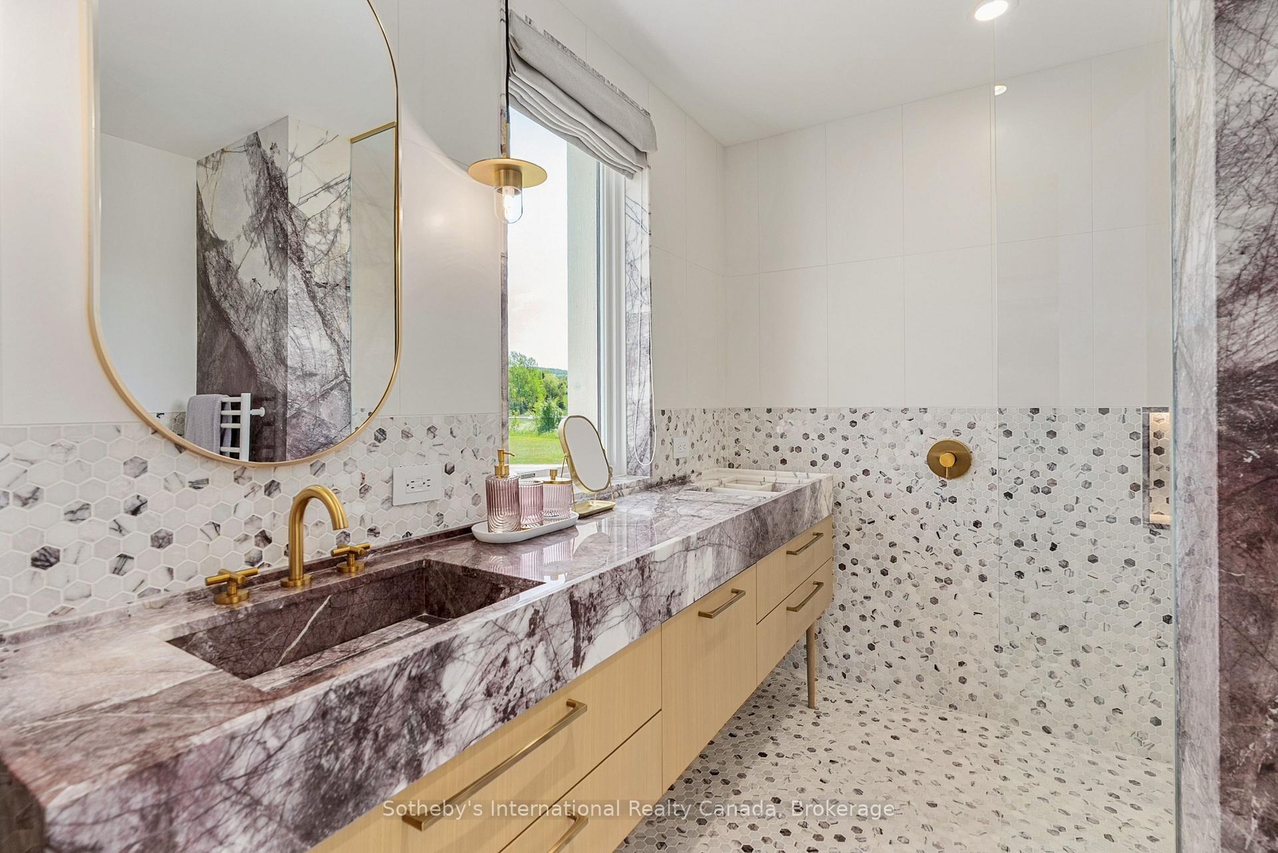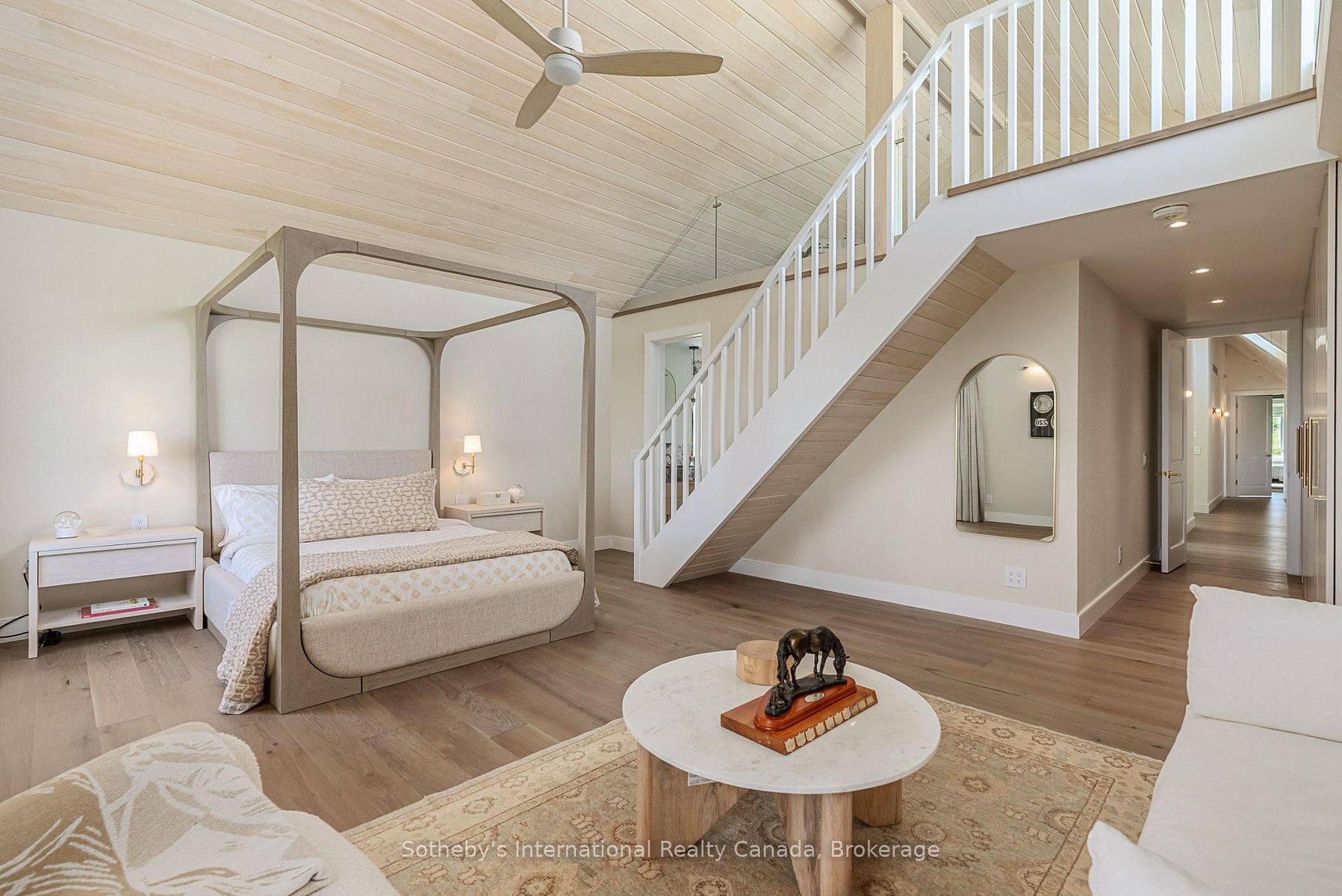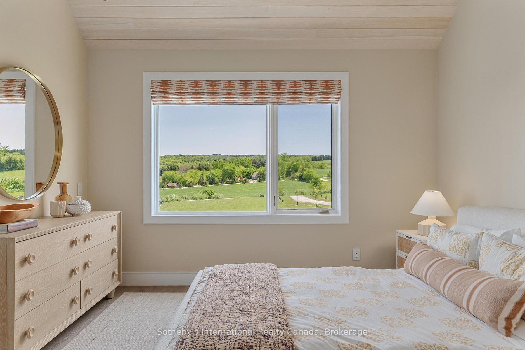 Never has there been an offering quite like this in the Blue Mountains. Welcome to Georgian Valley Farm, where world-class design meets the unspoiled beauty of nature and breathtaking sunsets. Set on 37 spectacular acres, this one-of-a-kind estate is anchored by an extraordinary 11,000 sq ft custom residence - a design landmark by Post Architecture Inc. and built by renowned builder David Eaton, Baylyn Construction. This property defines luxury recreational living, w/saltwater pool, Har Tru clay tennis court, orchard, pond, a Hartley Botanic Greenhouse - 'Grand Manor' imported from the UK and an incredible restored barn, ideal for entertaining. Perched high on 7th Line, the home presents commanding, panoramic views of the Niagara Escarpment and Georgian Bay from nearly every room. Scandinavian-inspired minimalism blends with refined country elegance, w/ Moncer European oak floors, soaring wood-clad ceilings, and a wall of floor to ceiling windows by Atek that frame the landscape. Chef's kitchen features a 12-ft marble island, appliances by Miele, Sub-Zero, and Lacanche, custom Barlow millwork, exquisite stonework and full butler's pantry. The dining room for 14 includes a concealed Barlow bar and a striking 2-way woodburning STUV fireplace shared with the living room. Thoughtful details are found throughout w/ designer lighting, imported tiles and hand-painted De Gournay wallpaper in the adult lounge, library, and powder room. A main floor primary sits behind double Egyptian doors and features a gas fireplace, luxurious ensuite, WIC, and sitting area. 4 upper bedrooms, all uniquely designed, feature beautifully curated ensuites with extensive tile/marble finishes, custom millwork and WIC. The lower level offers a golf simulator, gym, sauna, rec room, refreshment area, 200+ bottle Rosehill Wine Cellar, and w/o to the covered terrace and pool. Exceptional outdoor living offers a 2,520 sq ft deck, with a full Crown Verity kitchen, dining & lounge areas, and a hot tub.