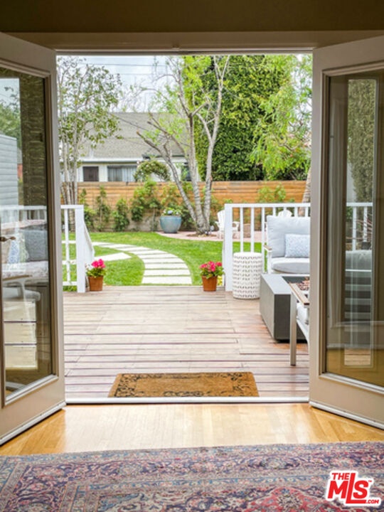 Fully Furnished & Centrally Located: This charming two-story Miracle Mile gem is the perfect summer retreat, featuring original wood flooring throughout and a custom chef's kitchen equipped with a Wolf Range, Sub-Zero fridge, and quartz countertops. The bright, open layout flows from the kitchen into the family room and a dining room recently updated with stunning Fornasetti wallpaper. Outside, the curb appeal is enhanced by a beautiful new white picket fence and flourishing flower gardens, while the expansive backyard offers a wood deck, firepit, and a fully loaded BBQ for hosting. The layout includes one bedroom downstairs and two upstairs, including a cozy primary suite with its own private sun deck for morning coffee. Please note that while the home has been updated, the current photos are older and don't yet reflect the new wallpaper and landscaping. Situated just minutes from The Grove, Larchmont, and Beverly Hills, and only a 25 minute drive to the beach - this home is available for a short-term lease.