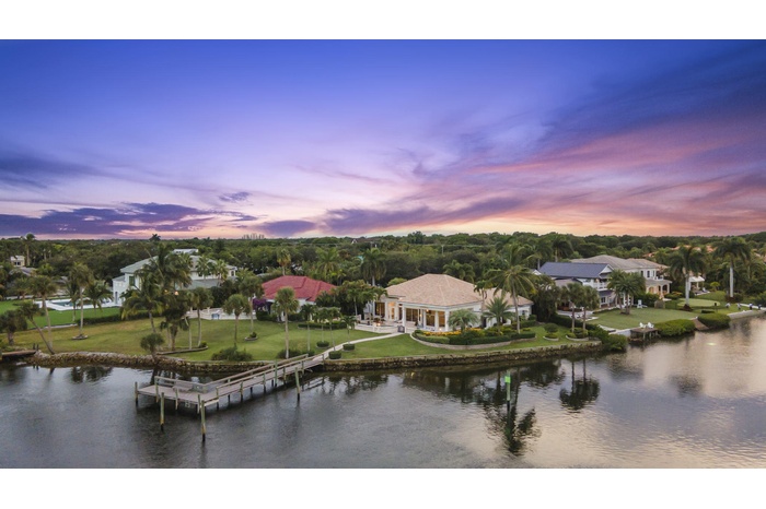 Exceptional waterfront property in a gated Palm Beach Gardens community with 230 feet of direct Intracoastal frontage and wide water views.