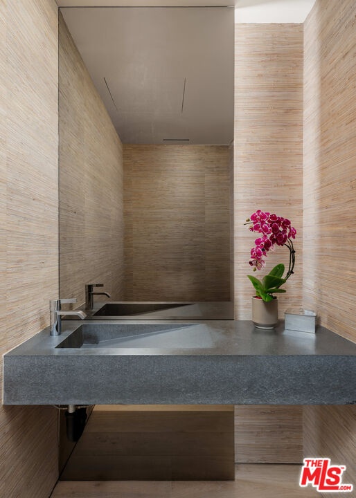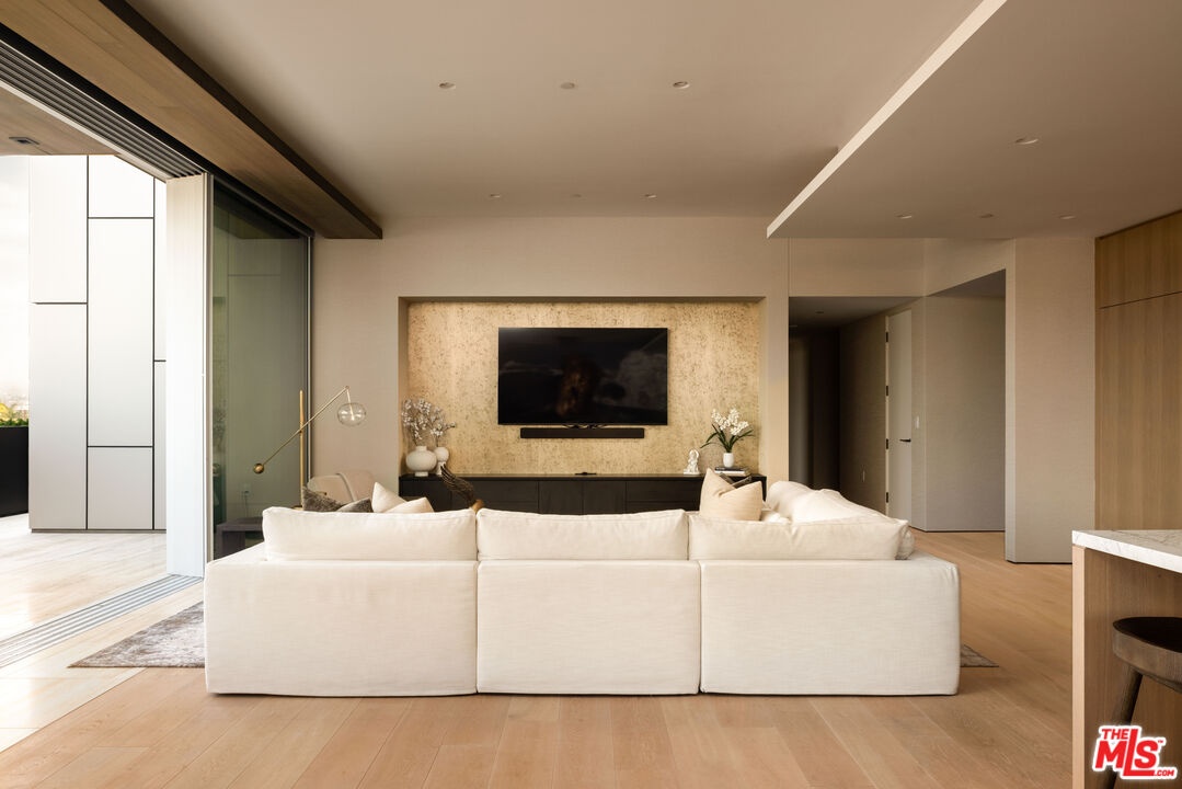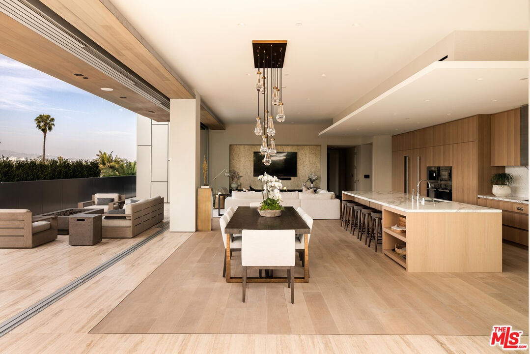 Introducing an extraordinary residence in the heart of the West Hollywood Design District a refined, full-service luxury offering within a striking architectural landmark by internationally acclaimed Olsen Kundig. Perfectly positioned on a premier corner, this expansive single-level home spans approximately 3,210 square feet and is complemented by an unparalleled 1,600+ square foot private terrace, creating a seamless blend of sophisticated interiors and elevated outdoor living. Floor-to-ceiling glass walls frame sweeping north-facing views of the iconic Hollywood Hills, glittering city lights, and the renowned Pacific Design Center, while western exposures deliver breathtaking sunset vistas. Natural light floods the residence from nearly every room, enhancing the home's clean architectural lines and elegant finishes. Thoughtfully designed for both everyday living and grand-scale entertaining, the open-concept layout features expansive living and dining areas that flow effortlessly to the terrace, ideal for al fresco dining, lounging, and hosting under the Los Angeles skyline. The sleek chef's kitchen is appointed with premium appliances from Sub-Zero, Miele, and Gaggenau, paired with custom cabinetry and refined detailing. The residence offers three spacious bedrooms, each with en-suite baths, along with a stylish powder room. The luxurious primary suite serves as a tranquil retreat, complete with a spa-inspired bath, generous closets, and electric window coverings. An additional flexible bonus room, currently utilized as a private office and theater, adds versatility for today's lifestyle. Residents enjoy an unmatched level of service and amenities, including 24-hour concierge and security, valet parking, a state-of-the-art fitness center, and beautifully curated resort-style outdoor spaces. Two dedicated parking spaces complete the offering. Ideally located along Beverly Boulevard, this residence offers immediate access to renowned destinations, premier fashion boutiques, acclaimed art galleries, gourmet markets, and some of the city's highest-rated dining, all within a highly walkable and vibrant neighborhood near the world-class medical facilities of Cedars-Sinai Medical Center. A rare opportunity to own a design-forward residence that embodies privacy, prestige, and effortless luxury living in one of Los Angeles' most coveted enclaves.