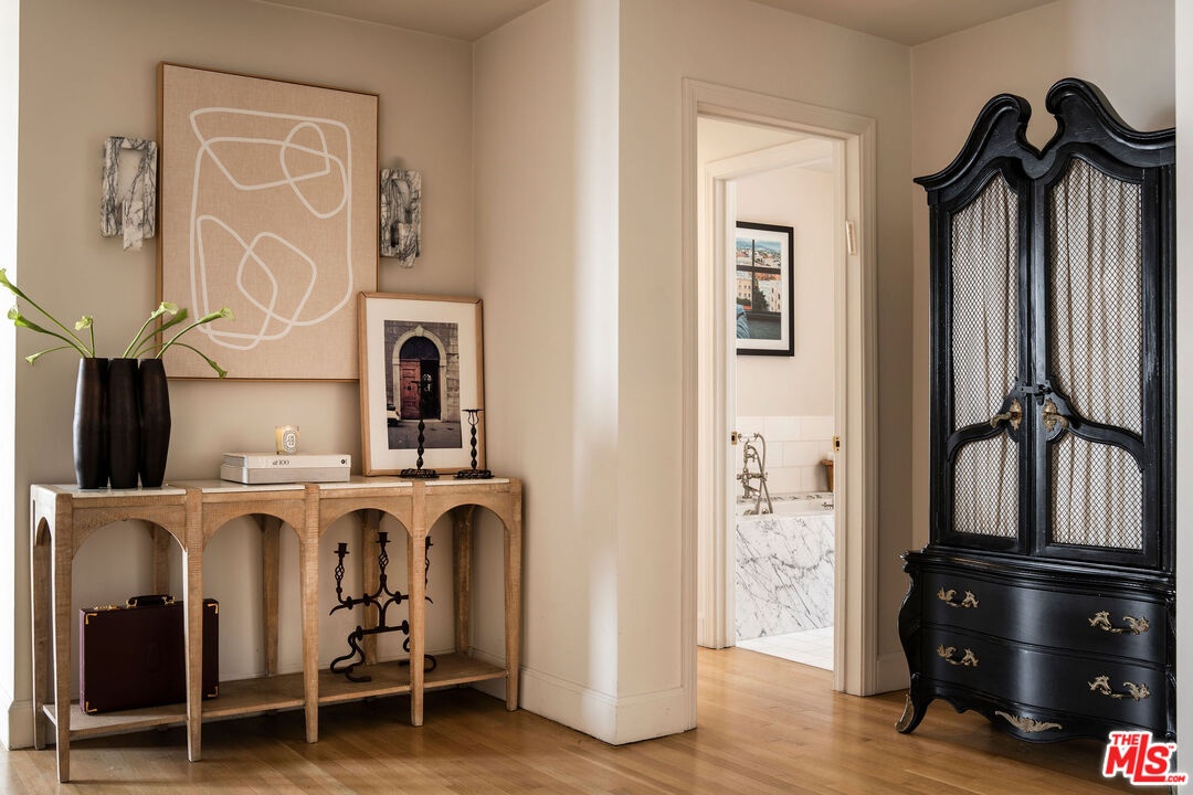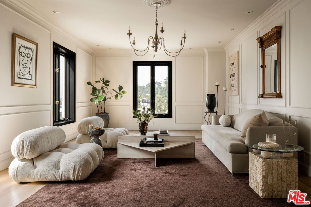 Located within one of Los Angeles's most storied and architecturally significant buildings, The Granville Towers this very residence once home to legendary artist David Bowie is an updated 2-bedroom, 2-bath condo that offers a seamless blend of timeless character and modern sophistication. A gracious foyer welcomes you into an expansive formal living room, perfectly suited for both grand entertaining and intimate gatherings. Sunlight pours into the public spaces, highlighting sweeping city and hillside vistas. The chef's kitchen is thoughtfully designed with a generous center island and flows effortlessly into a light-filled dining area, complete with a built-in bar and ample storage. The oversized primary suite is a serene retreat, capturing iconic views that include the famed Chateau Marmont. It features custom-built closets and a luxurious bath appointed with a soaking tub wrapped in Carrera marble. A separate guest suite offers exceptional privacy, complete with a walk-in closet, while maintaining the home's historic charm and versatility. Residents enjoy controlled access, security, central HVAC, and in-unit laundry, all within a prime West Hollywood location just moments from the city's finest dining, shopping, and cultural destinations. A rare opportunity to own a true pied-a-terre landmark setting steeped in cultural history. Furnished option available upon request.