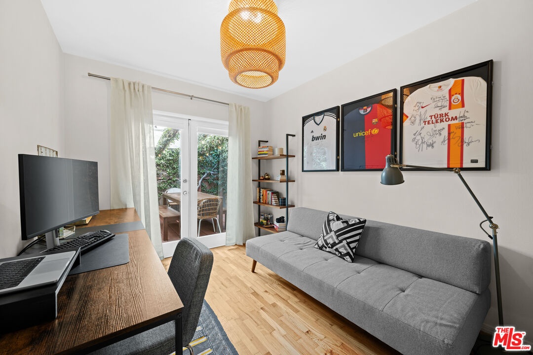 Gorgeous detached Venice Beach Bungalow tastefully updated with a modern flair. Offering a prime location to live, work, and play. This charming and private gated home is centrally located on Abbot Kinney and is a walker's paradise within a short walk to the world famous Venice Beach, fun coffee shops, amazing dining, shopping, and nightlife. The interior boasts 2 bedrooms / 1 bathroom, beautiful original hardwood floors, newer appliances, updated glass shower, cozy gas fireplace, washer/dryer, and bright and cozy rooms with tons of storage. The attached garage has been converted to a flex space with additional storage and can be used as another bedroom, office, gym, or garage. The highlight of the home is a lush private backyard oasis that is perfect for entertaining guests. There is plenty of overnight street parking also available in the area.