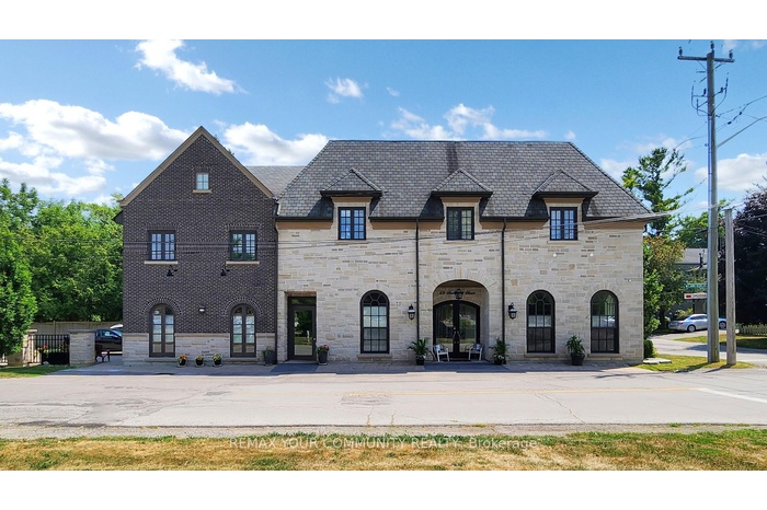 Unique investment opportunity in Downtown Stouffville. 10 year new totally re-built with highest quality and workmanship, French Chateau Style Luxury building with 5 self-contained residential suites and non-conforming Commercial units on the ground level with stunning 10 & 12 ft high ceilings. Suites range in sizes from 800 - 1,650 sq ft- each suite is equipped with self control heating /cooling and ensuite laundry (separate bills). 10 outside surface parking spaces. Over 6,000 sq ft of rentable space. Located next to Memorial Park, backing onto ravine and steps to Community centre, library, shops, restaurants and the GO Train Station. Building is constructed with quality upgrades with picturesque windows, hardwood floors, granite counter tops, pot lights, natural limestone, Belden brick and stucco exterior, fully fire rated and extreme sound proofing. Mixed uses. Live/work combo in one building plus collect rental income from the other suites ~Generates approx. $160,000 net income!