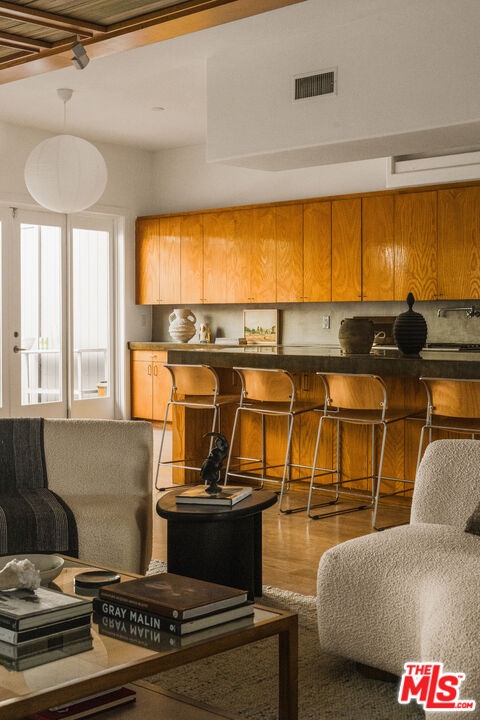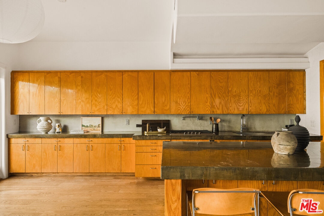 An exceptional townhome with all of the comfort and feel of a single-family home, just moments from the sand, ocean, and the vibrant lifestyle that Venice is known for. Designed with a refined yet relaxed coastal aesthetic, the 3-bedroom, 2.5-bath home features beautiful wide-plank hardwood floors, high ceilings, wood beams and an open-concept main level that feels both spacious and inviting. The elegant living room flows into a chef's kitchen outfitted with premium appliances, all opening to a lovely indoor-outdoor deck perfect for entertaining or unwinding. A private guest suite off the spacious 3-car garage provides a wonderful retreat for visitors or extended family. Upstairs, you'll find two guest bedrooms along with a generous primary suite featuring a spa-inspired Carrera marble bathroom. Just one block from the ocean, this inviting Venice retreat blends timeless style with a thoughtful layout designed for effortless, modern beach living.