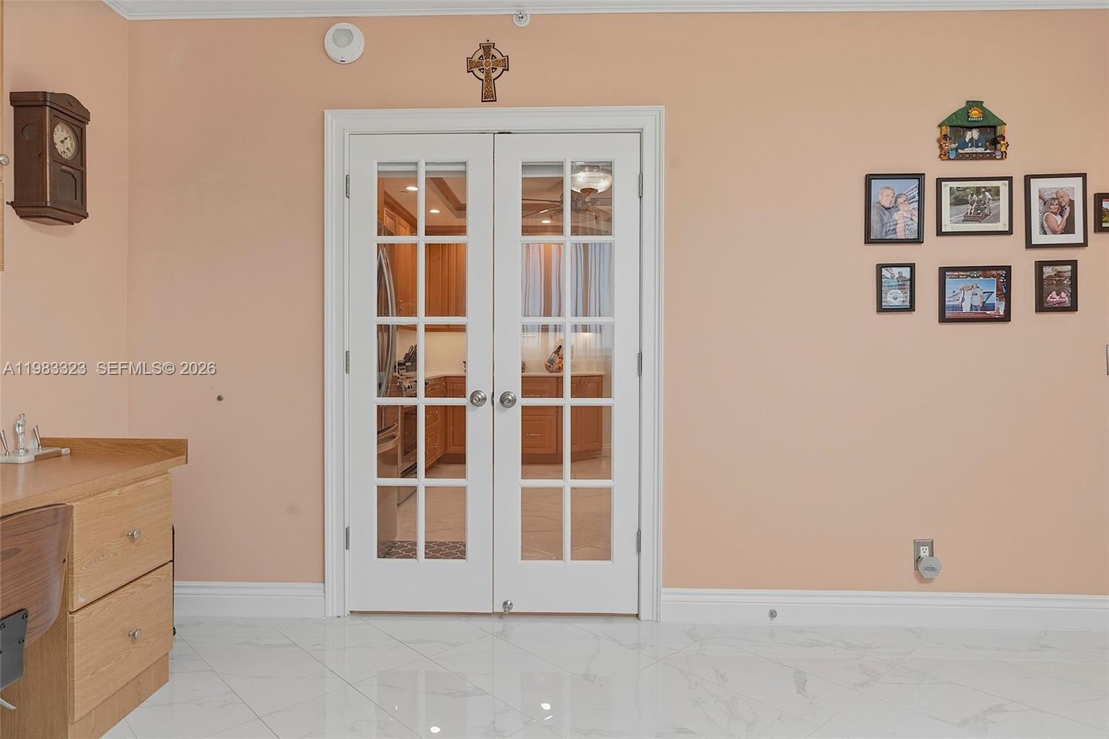 Elegant finishes include crown molding, sculpted baseboards, solid core doors, and recessed LED lighting. Primary suite with custom closets and updated bath with dual sinks, Quartz counters, and glass shower. Guest bedrooms overlook the river; guest bath updated.