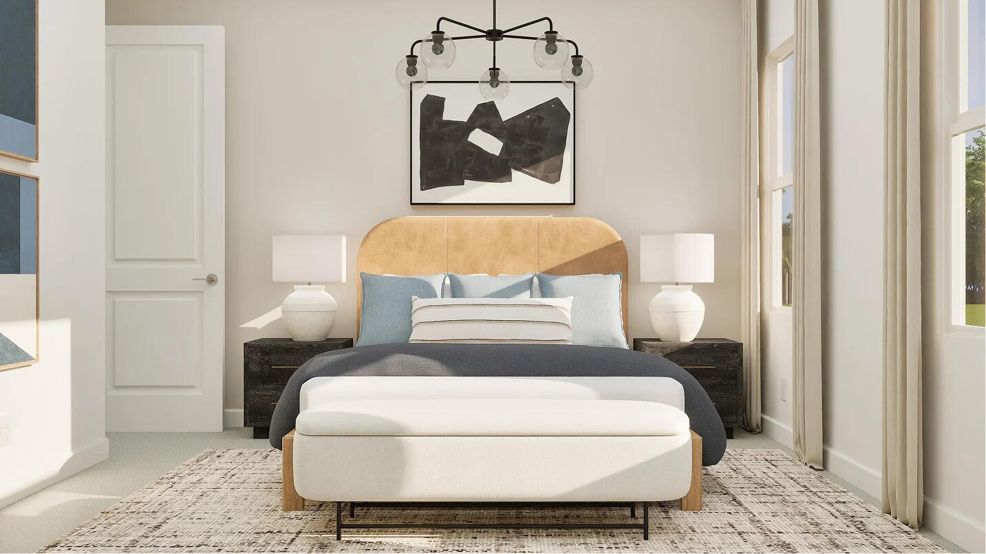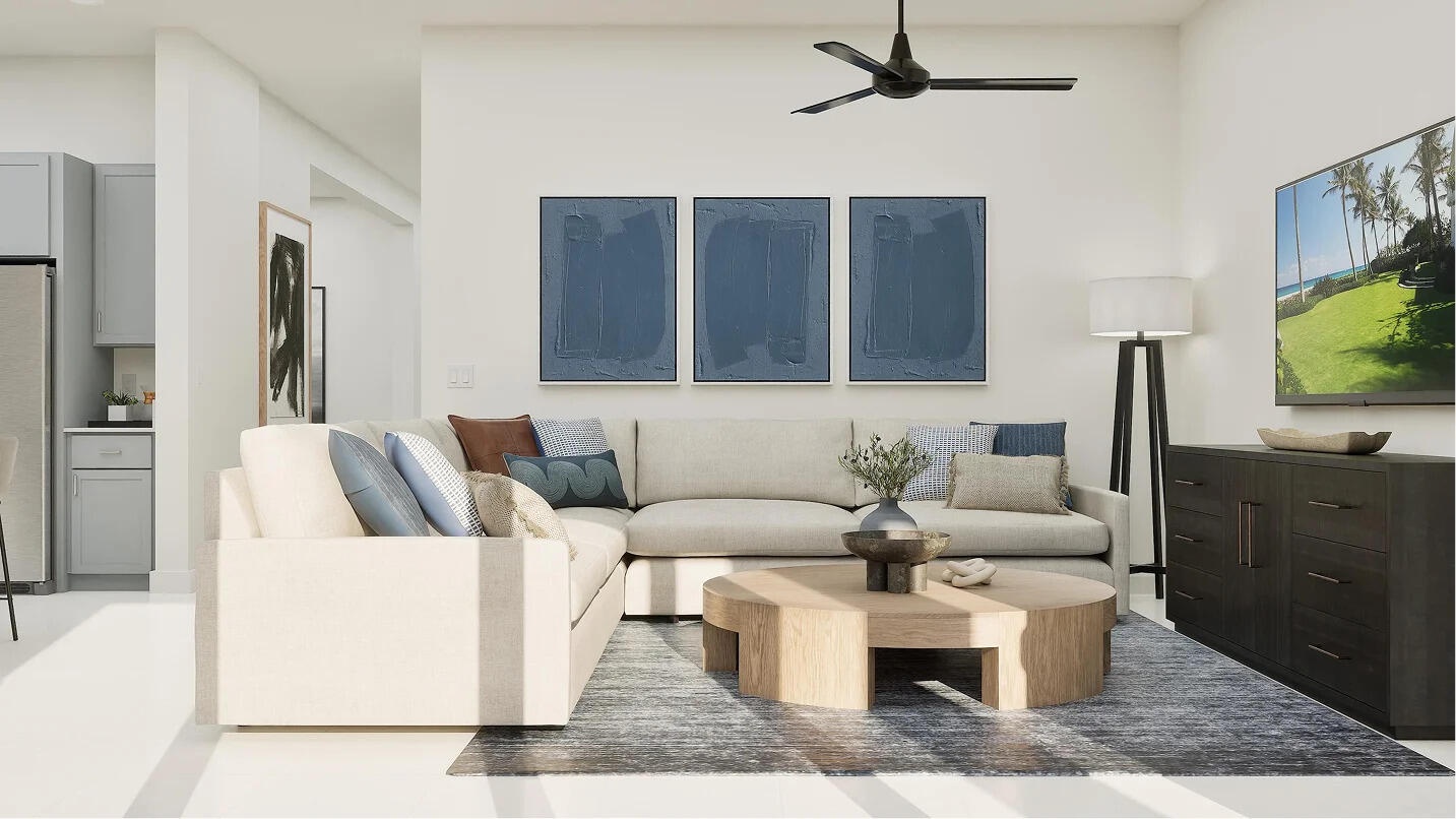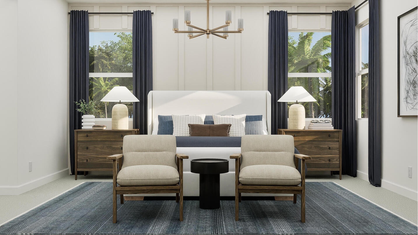 This new two-story home exudes elegance with a gracious floorplan. At the heart of the home is a spacious living room that melds with the modern kitchen and sunny lanai, complemented by formal and casual dining space. On the same level is a quiet study for at-home work, while upstairs is a sprawling multipurpose loft for shared entertainment. Four of the five bedrooms in the home showcase a private en-suite bathroom, including the lavish owner's suite with a spa-style soaking tub.