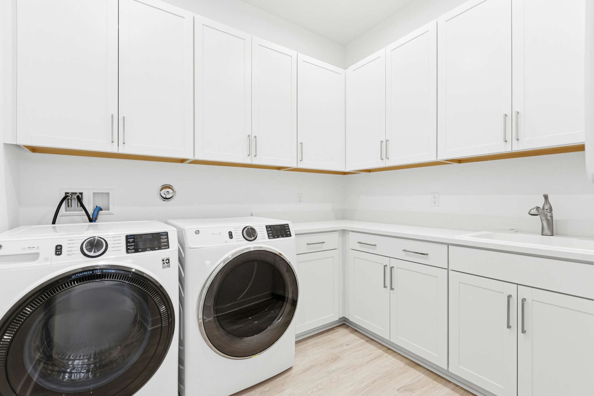 This exceptionally flexible and unique 4-Bedroom Sydney floorplan checks all the boxes. The split 2-Car and 1-Car Garages provide plenty of storage and hobby space. With expansive countertops and a large walk-in pantry, the Kitchen provides ample storage and prep space. Homeowners enjoy best-in-class features like 10'4" ceilings in main living areas, GE appliances, and KitchenCraft cabinetry. Additional features are Electric Linear Fireplace, second floor Bonus Room with Closet and Full Bath, Custom Pool, Privacy Wall with Pre-Plum for Summer Kitchen.