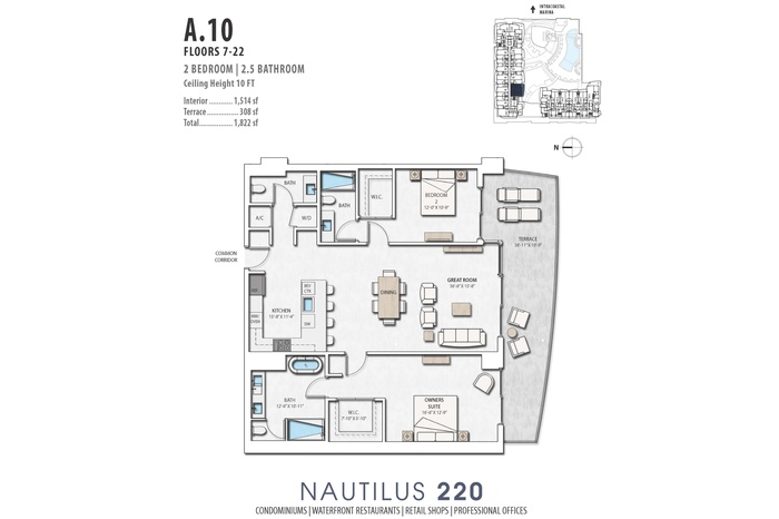 BRAND NEW Two Bedroom 2. 5 Bathroom s luxury condo on 14th floor at Nautilus 220 N220 with Southeast Southwest exposure and incredible water views.