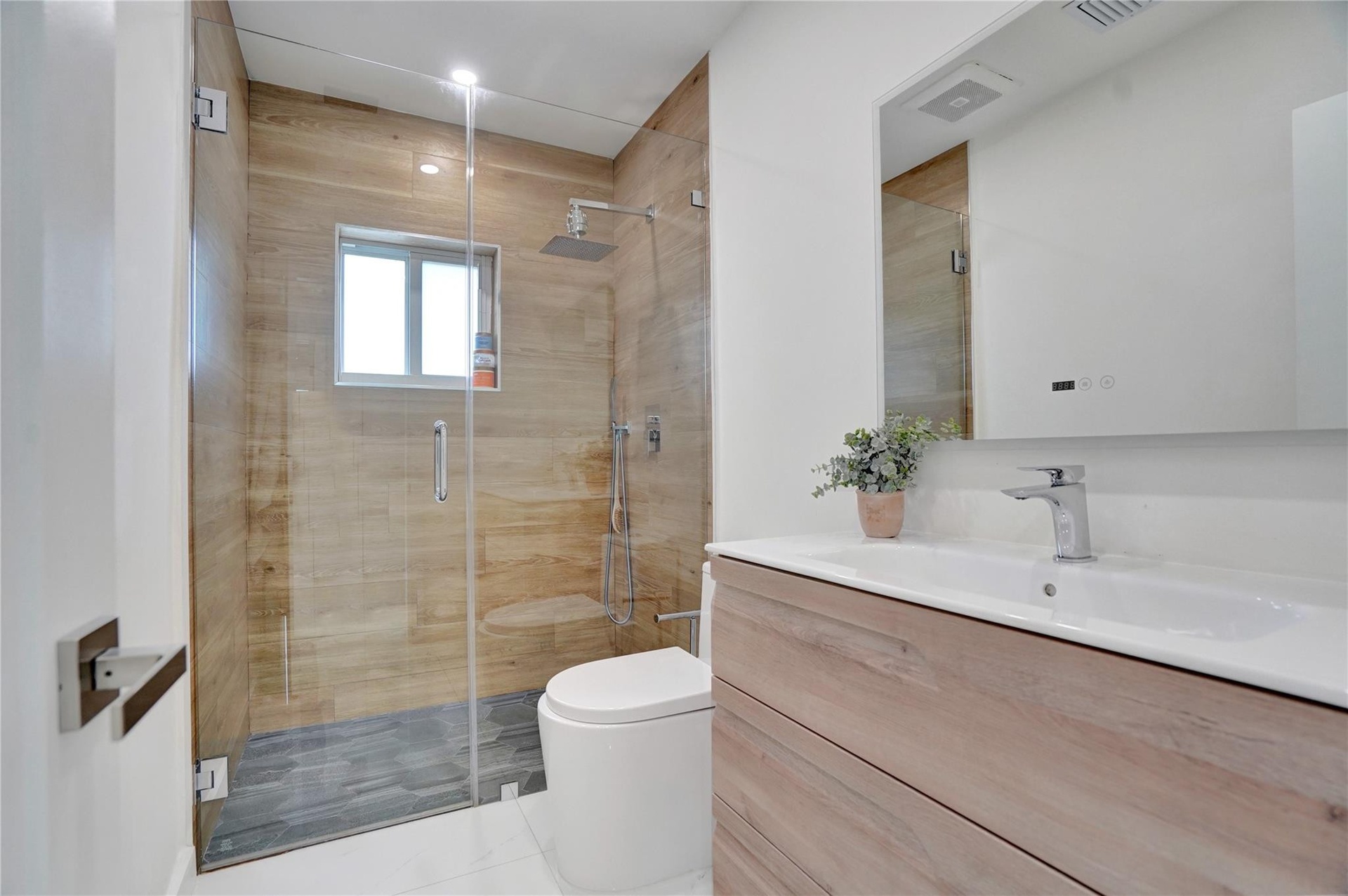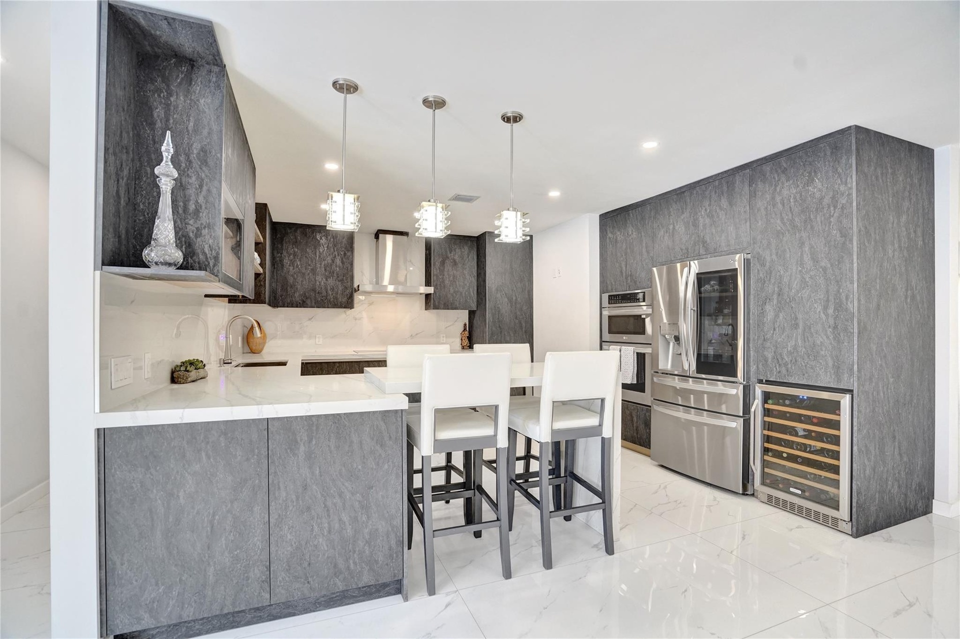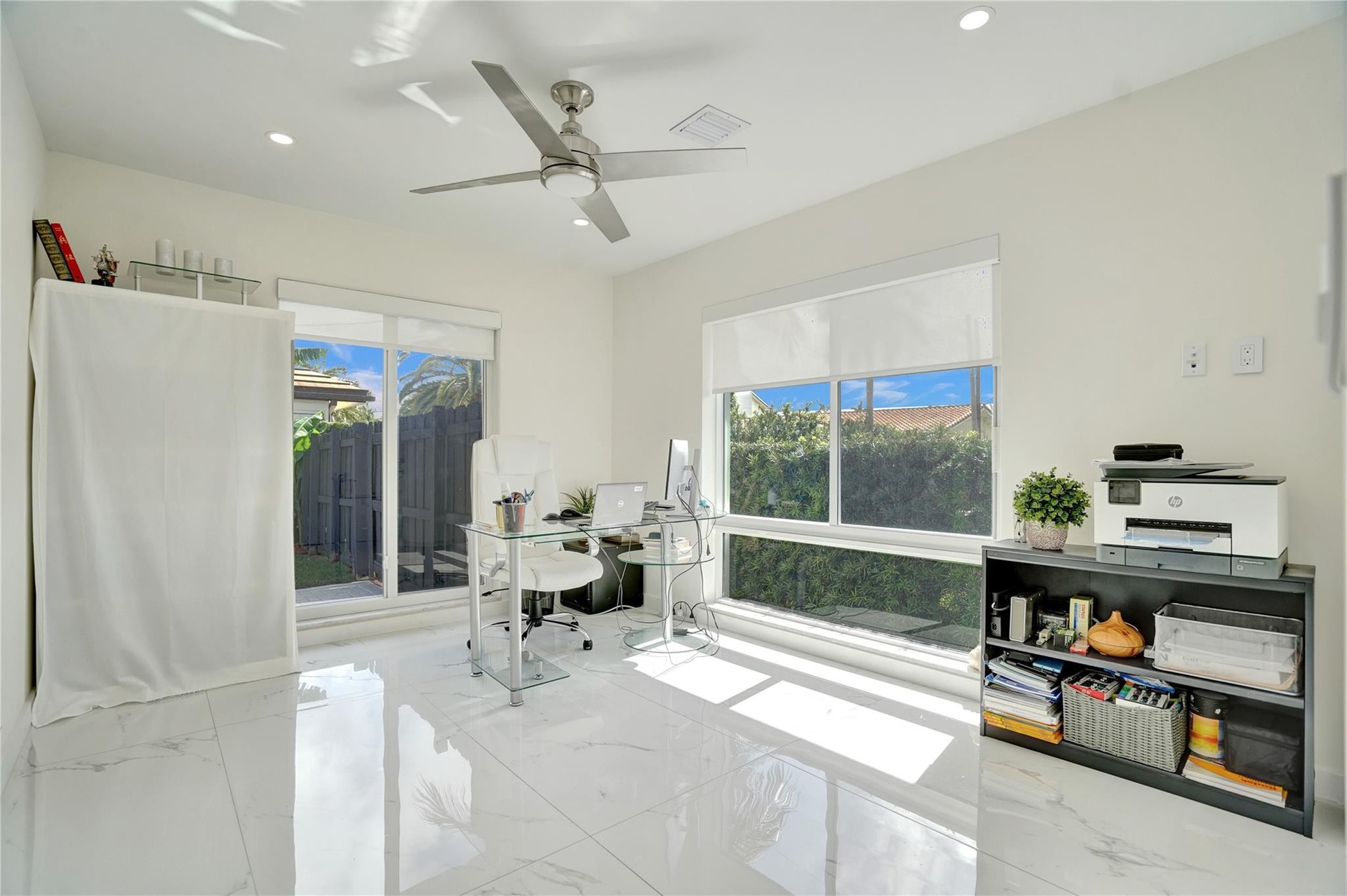 Beautifully renovated deep water residence situated on an oversized corner lot offering ultimate privacy with a "park-like" atmosphere. Bring your small boat, or jet skis & enjoy spectacular water views down the canal to the Intracoastal from the newly built dock. This Spacious home showcases a sleek modern design w/ a seamless open floor plan & luxurious, large-format, Porcelain tiles throughout. Impact glass windows & doors. The chef inspired kitchen is a showstopper with Quartz counters, breakfast bar & stylish European style cabinetry. This popular split bedroom layout offers a luxurious primary bedroom suite with views of the water & pool area complete with spa-like bath, 5th bedroom converted to a huge walk-in closet. Paver circular driveway is situated on NE 40th Ct for easy access. This property is enviably located in sought-after Coral Ridge Country Club neighborhood with very close proximity to Bayview Park and the Country Club.