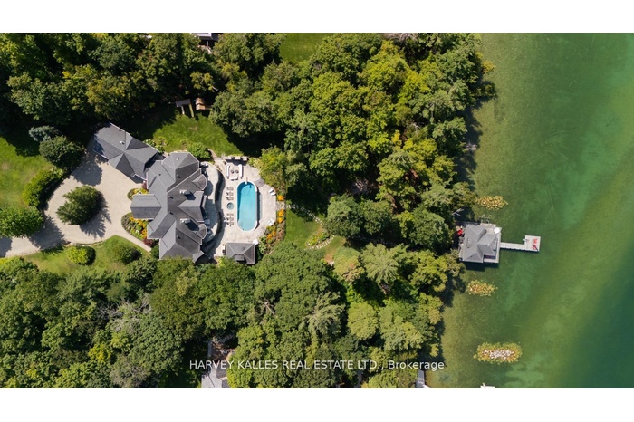 Stunning World-Class Waterfront Estate on Kempenfelt Bay / Lake Simcoe! Privately nestled along one of the most prestigious and coveted roads on Kempenfelt Bay, this extraordinary estate is offered for sale. Gated and masterfully designed, the property showcases the pinnacle of craftsmanship, elegance, and timeless luxury. Envisioned as a true family compound, the estate comprises multiple residences designed for entertaining and privacy: the grand main house, a private apartment, a boathouse, and a cabana. Together, they provide 10 bedrooms, a bunk room accommodating 8, 11 bathrooms, 2 full kitchens, and 3 kitchenettes offering exceptional flexibility for family, friends, and guests. The main residence features a one-bedroom loft with full kitchen and bath, while the rare water lot highlights an Incredible one of a kind boathouse with kitchenette, bedroom/bathroom, living/dining with folding glass doors for indoor/outdoor lakeside living, double slip wet boathouse, permanent dock, extensive decking, remote lifts. Poolside cabana with dramatic fold-away doors continue Outdoor living elevated with frameless glass railings, expansive stonework, covered and uncovered sitting, lounging and dining areas are perfectly positioned for breathtaking sunsets and lake views. Resort-style amenities define the exterior, including a Betz Gunite pool with waterfall, infinity edge, and hot tub, glass-walled terraces, a poolside BBQ pavilion, and a cozy wood-burning fireplace surrounded by intimate seating. Inside, refined details abound: Incredible Chefs Kitchen, reclaimed antique elm hardwood floors, a custom wrought-iron staircase, elegant crown mouldings, four gas fireplaces, and extensive soundproofing for total comfort and privacy. A true one-of-a-kind sanctuary, this world-class waterfront estate must be experienced to be fully appreciated. Presentation, Photo Gallery, Floor Plans In Link