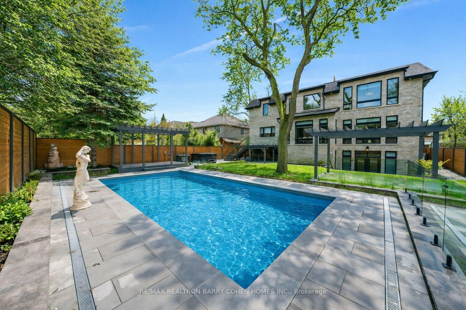 This exceptional newly built luxury residence offers nearly 10,000 sq ft of beautifully finished living space on a prestigious south-facing 68' x 150' lot, delivering remarkable scale, craftsmanship, and architectural elegance. Featuring 5+1 oversized bedrooms, each with its own private ensuite and walk-in closet, the home is designed for ultimate comfort, privacy, and modern family living. Grand ceiling heights create an extraordinary sense of space with 10-ft ceilings on the main level, 9-ft ceilings on the second floor, and a breathtaking 14-ft grand foyer, while the 11-ft lower level provides a bright and expansive walk-up basement ideal for entertaining. The striking natural limestone façade is framed by six custom columns inspired by the U.S. Capitol, with hand-crafted capitals that create a distinguished presence rarely seen in Toronto. The home's symmetrical design and incorporation of the Golden Ratio create a sense of balance, harmony, and timeless elegance throughout. Designed for exceptional indoor-outdoor living, the spectacular backyard retreat features a heated saltwater concrete pool, pergola, outdoor BBQ area, and professionally landscaped grounds. Additional exterior highlights include a heated driveway, extensive stone walkways, and a rare 3-car garage. Inside, the home is fully equipped with a Control4 smart lighting system, in-floor heating (where applicable), and a sophisticated whole-home audio system with surround sound in the family room, lower level entertainment space, and theatre, plus wiring for backyard audio. Additional luxury amenities include four fireplaces, a jacuzzi, dry and steam sauna, and a stunning primary suite retreat. Conveniently located just minutes from York Mills Subway Station, Highway 401, and within close proximity to Toronto's top private schools, shops, and amenities. A rare offering in one of the city's most prestigious communities.